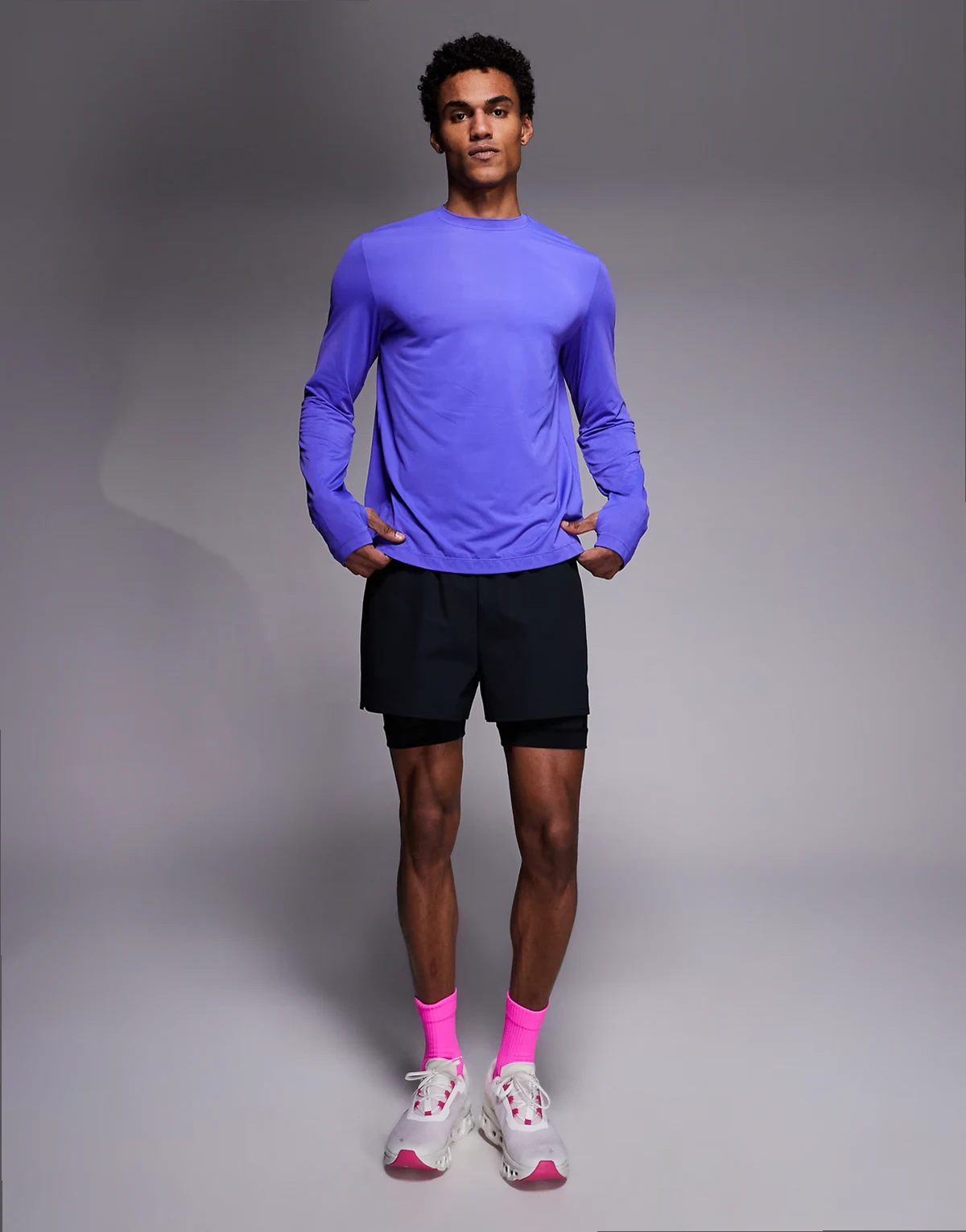 – Langärmliges, schnelltrocknendes Laufoberteil aus Nylon-Performance-Netzstoff in Ultraviolett
