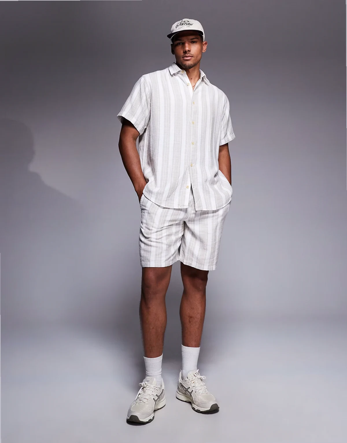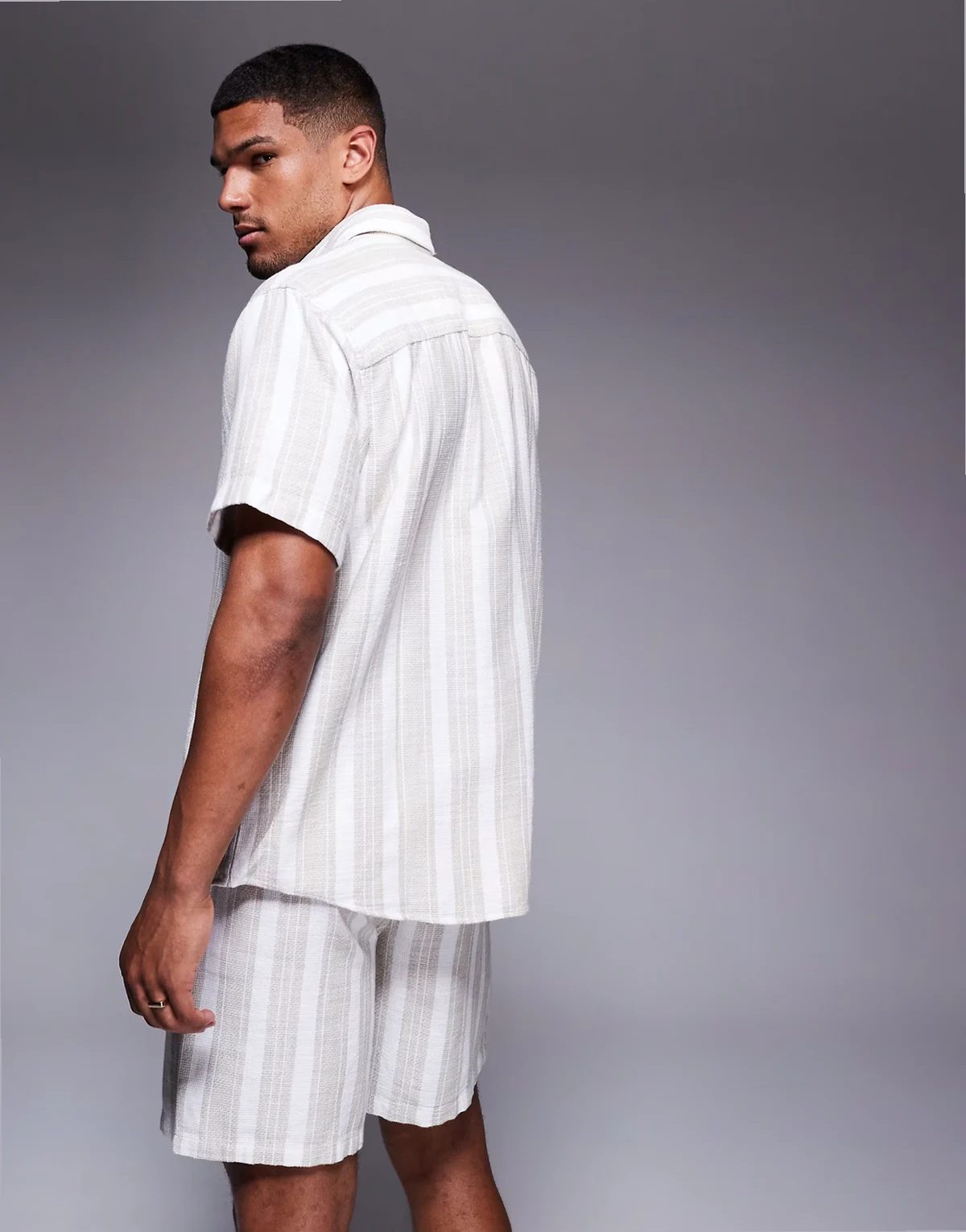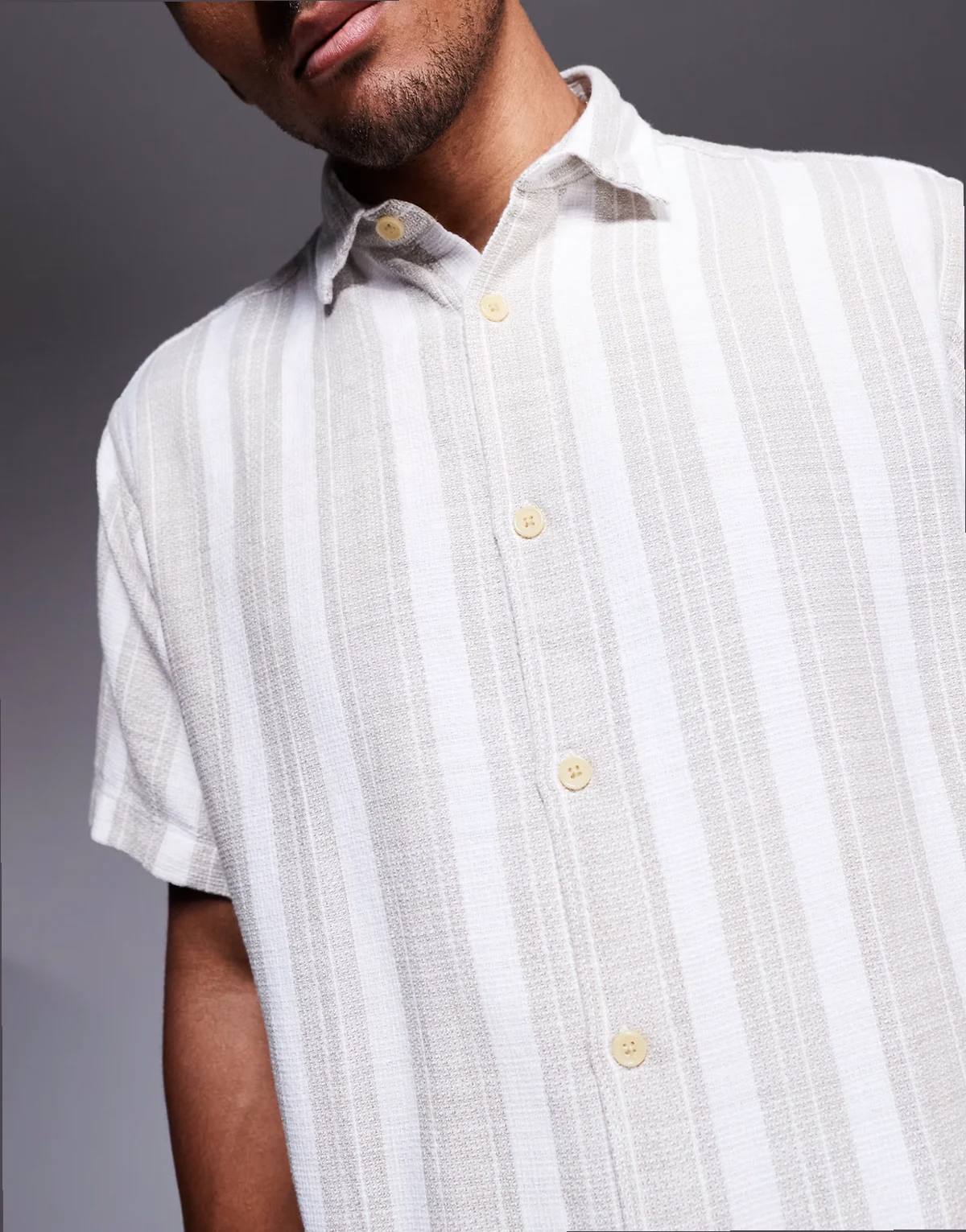 – Strukturiertes Oversize-Hemd in gestreiftem Cremeweiß