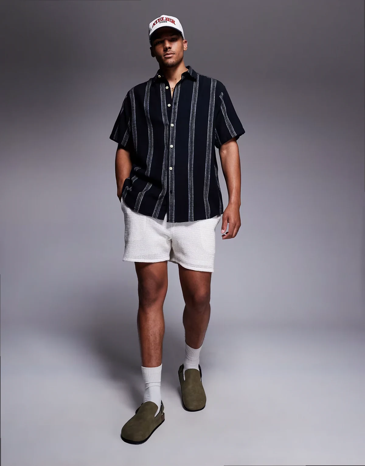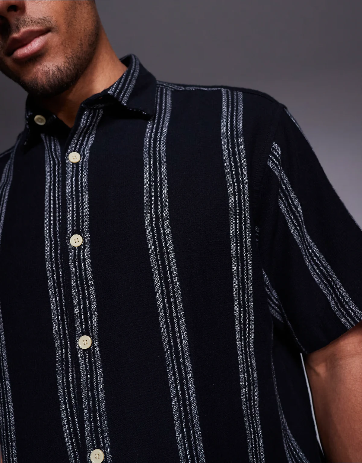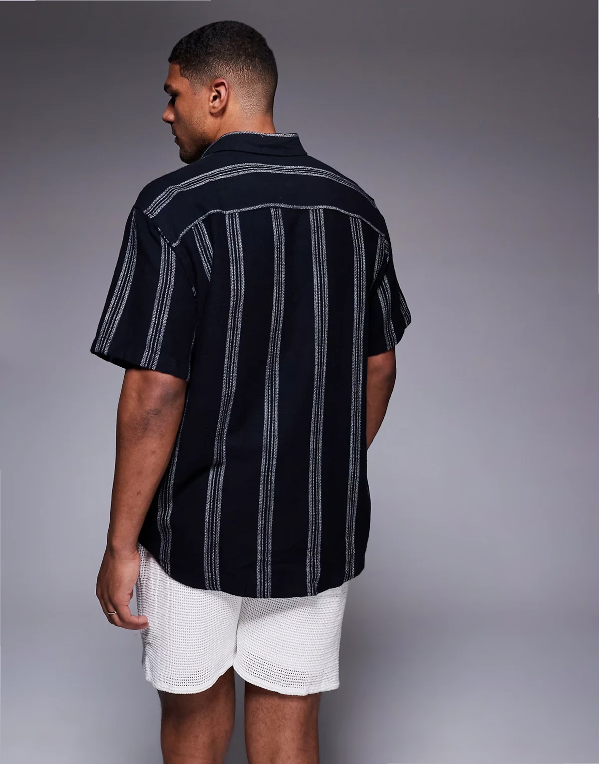 – Kurzärmliges Oversize-Hemd in Schwarz gestreift