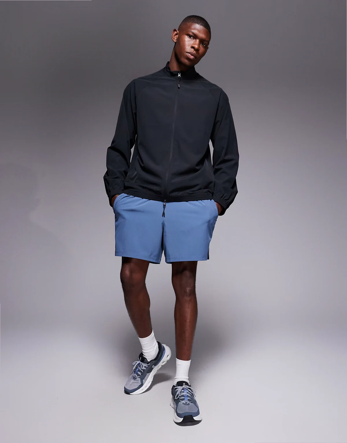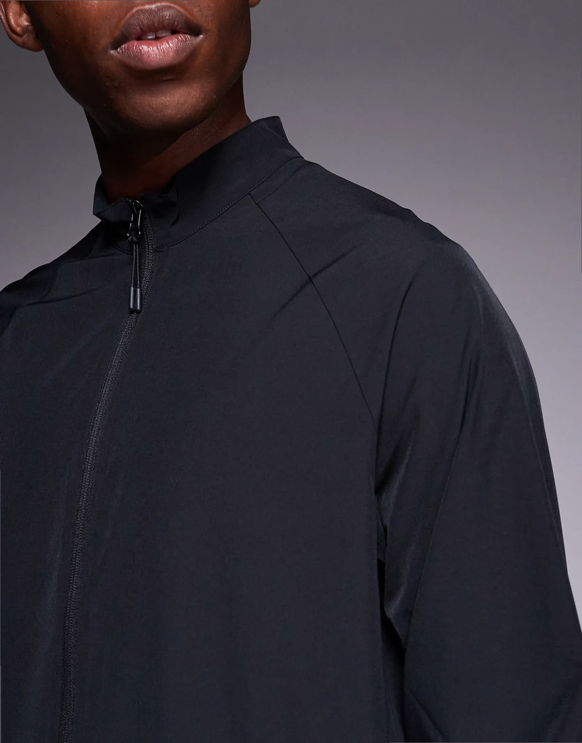 – Trainingsjacke zum Aufwärmen aus Webstoff in Schwarz mit Reißverschlusstaschen