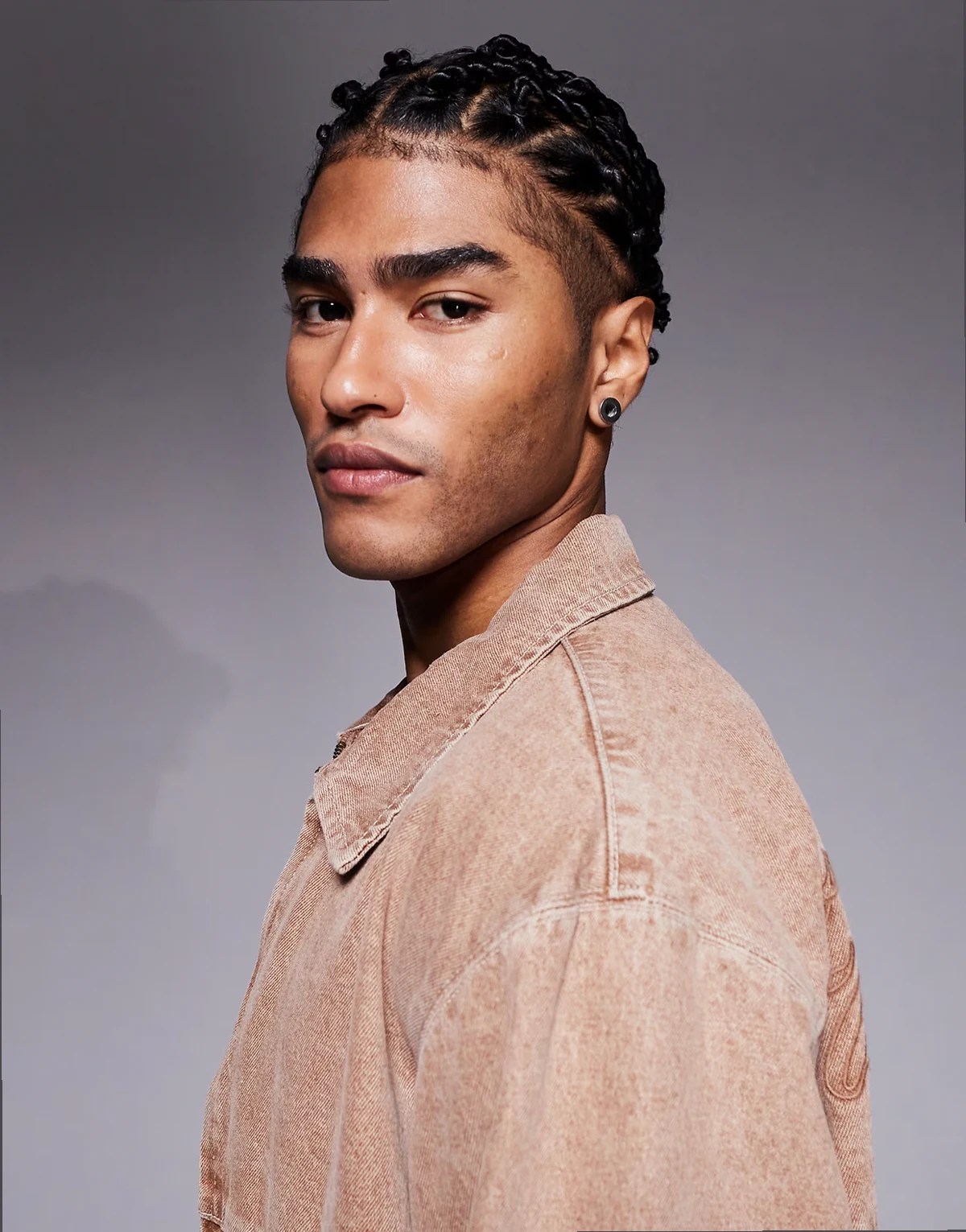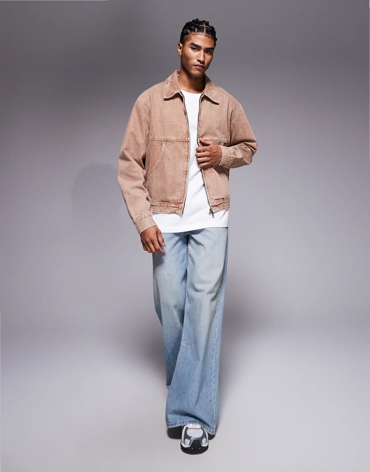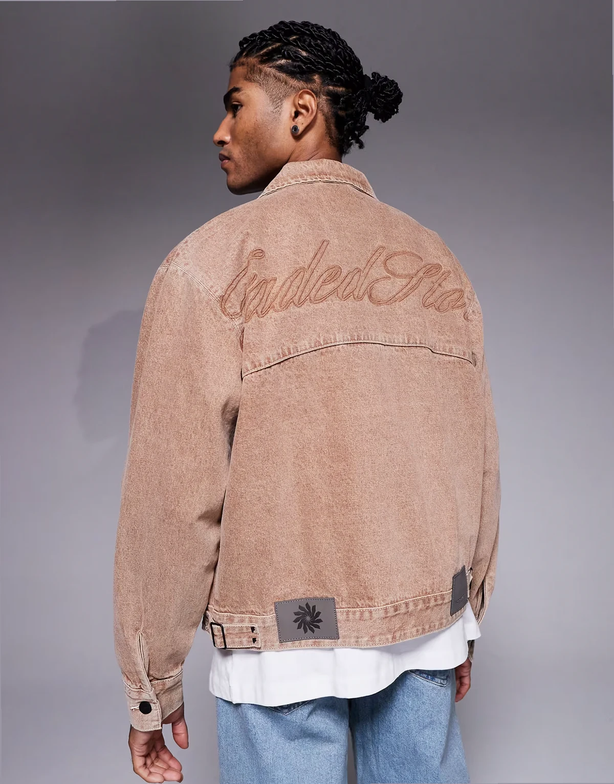 – Verwaschene Jeansjacke in Braun