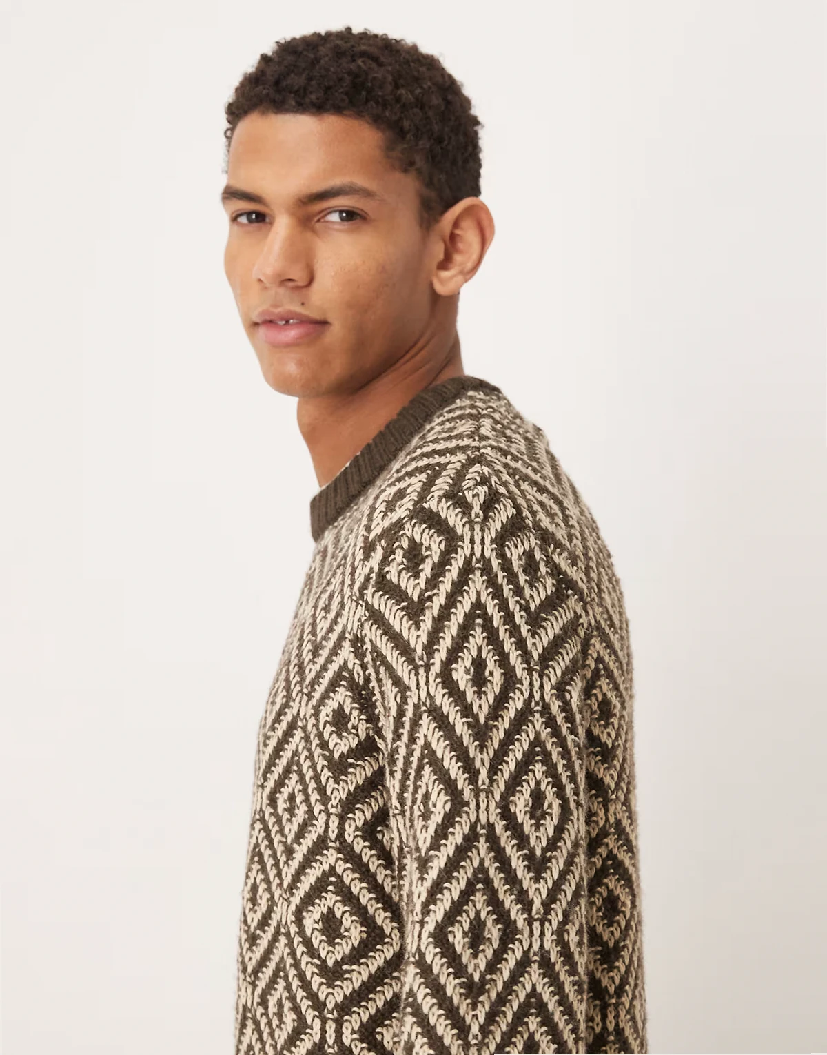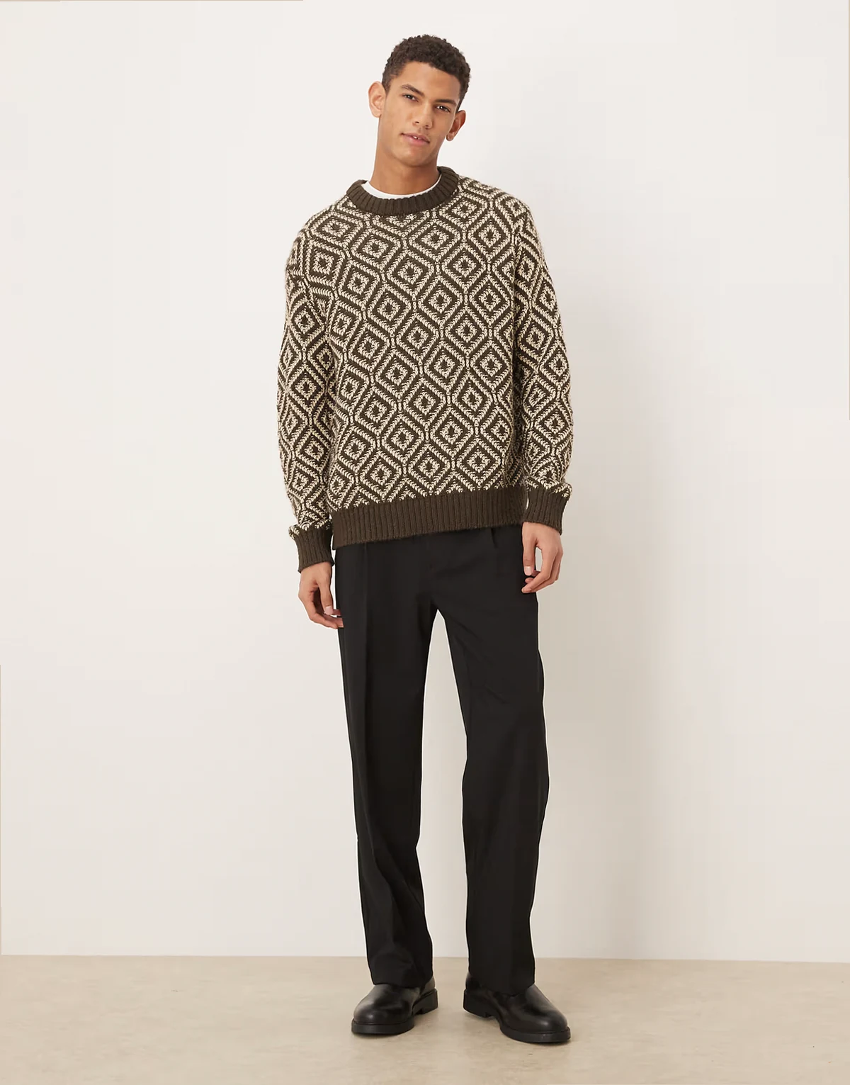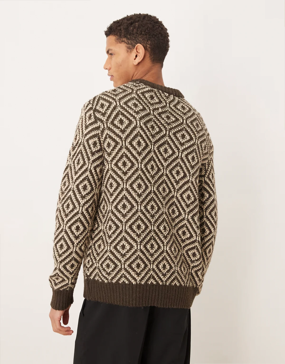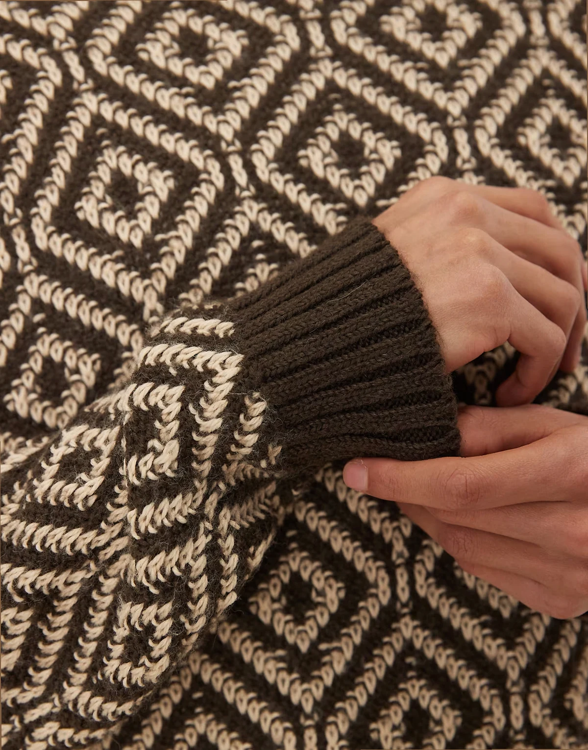 – Strickpullover aus Wollmix in Braun mit geometrischem Muster
