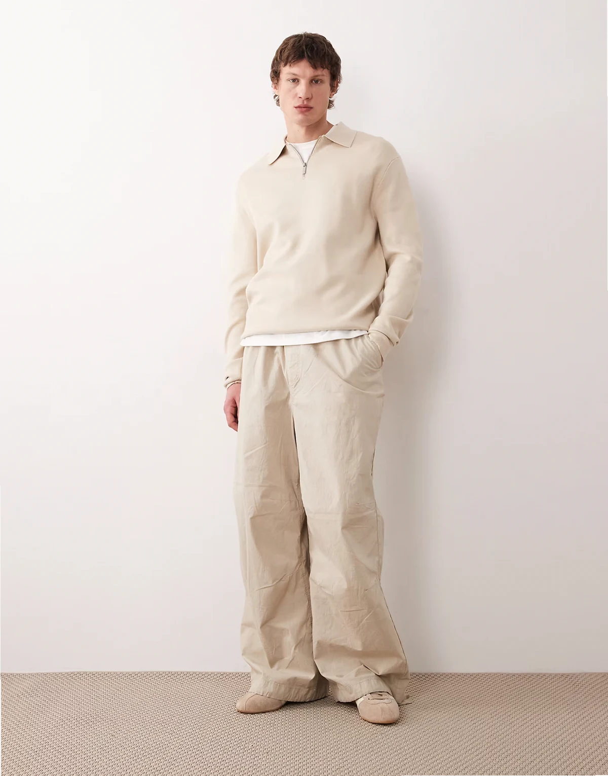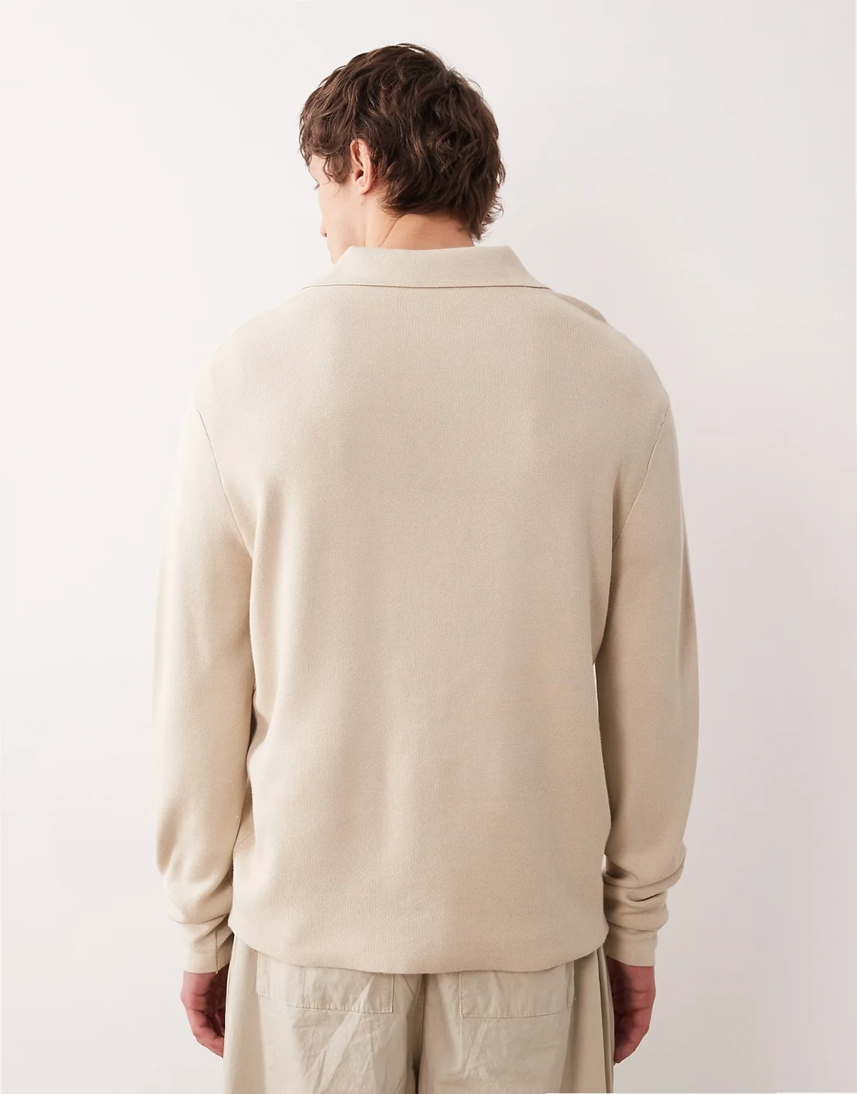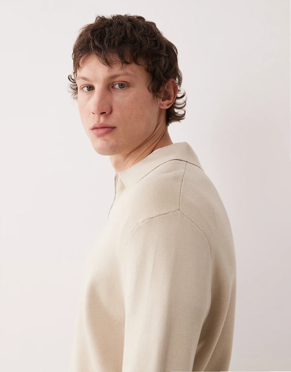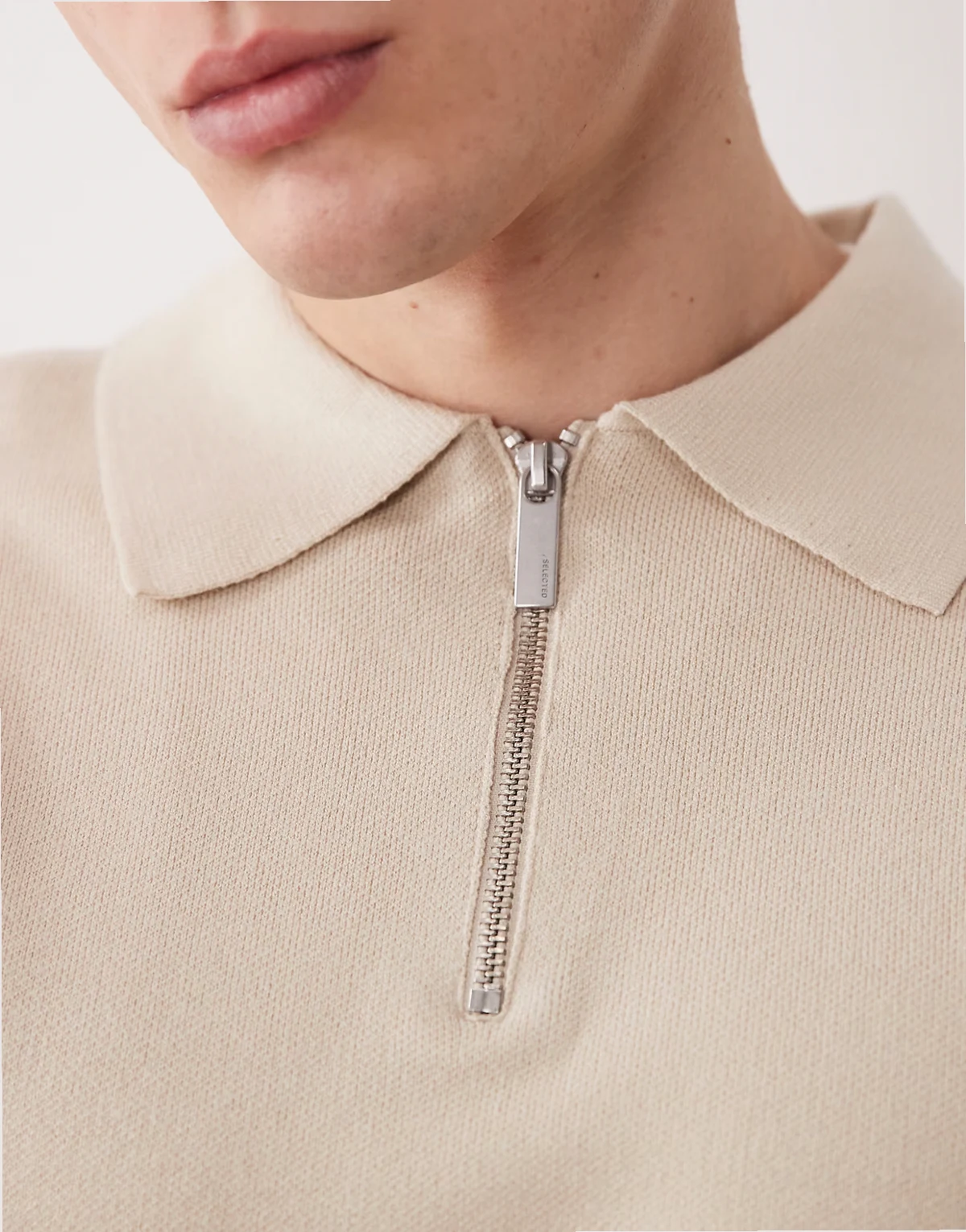 – Pullover in Cremeweiß mit Polokragen und kurzem Reißverschluss