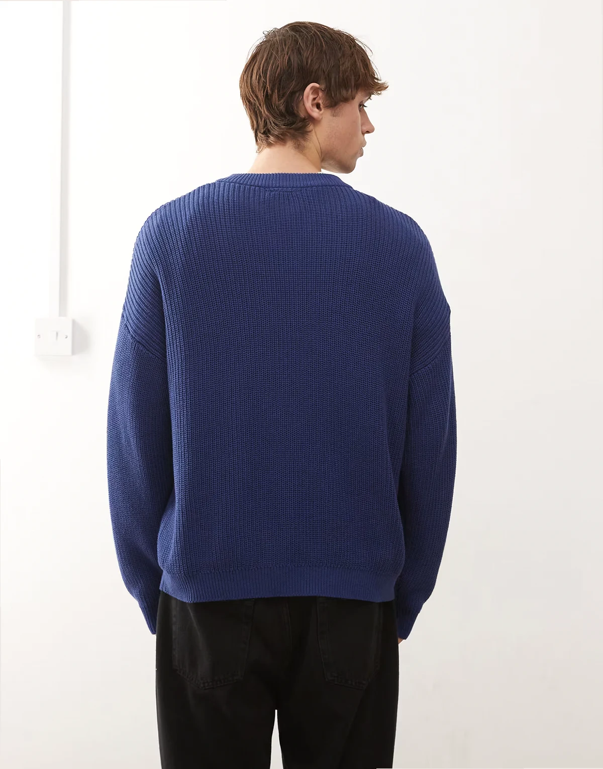 – Lockerer Strickpullover in Marineblau mit Vollpatent-Strickmuster und V-Ausschnitt