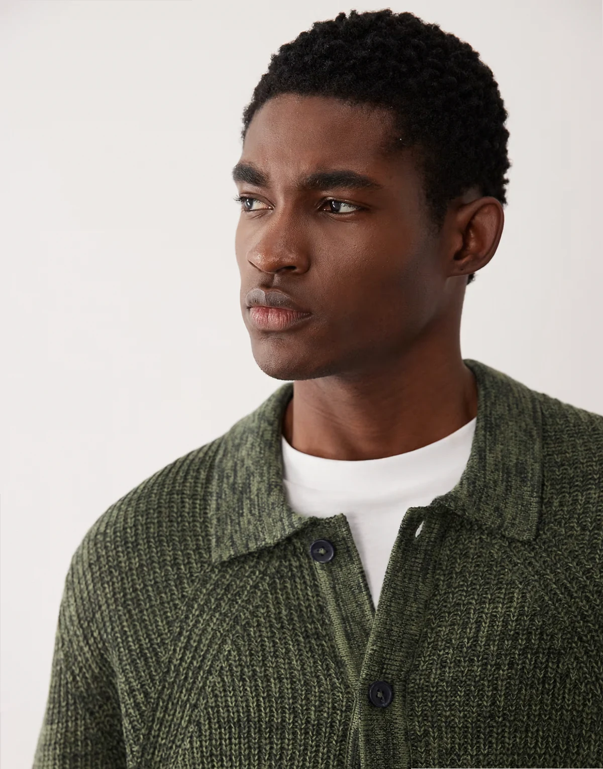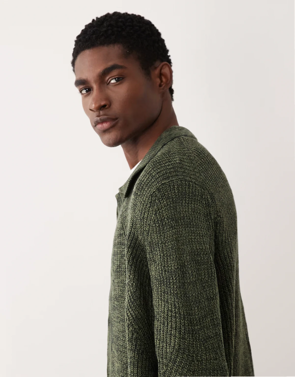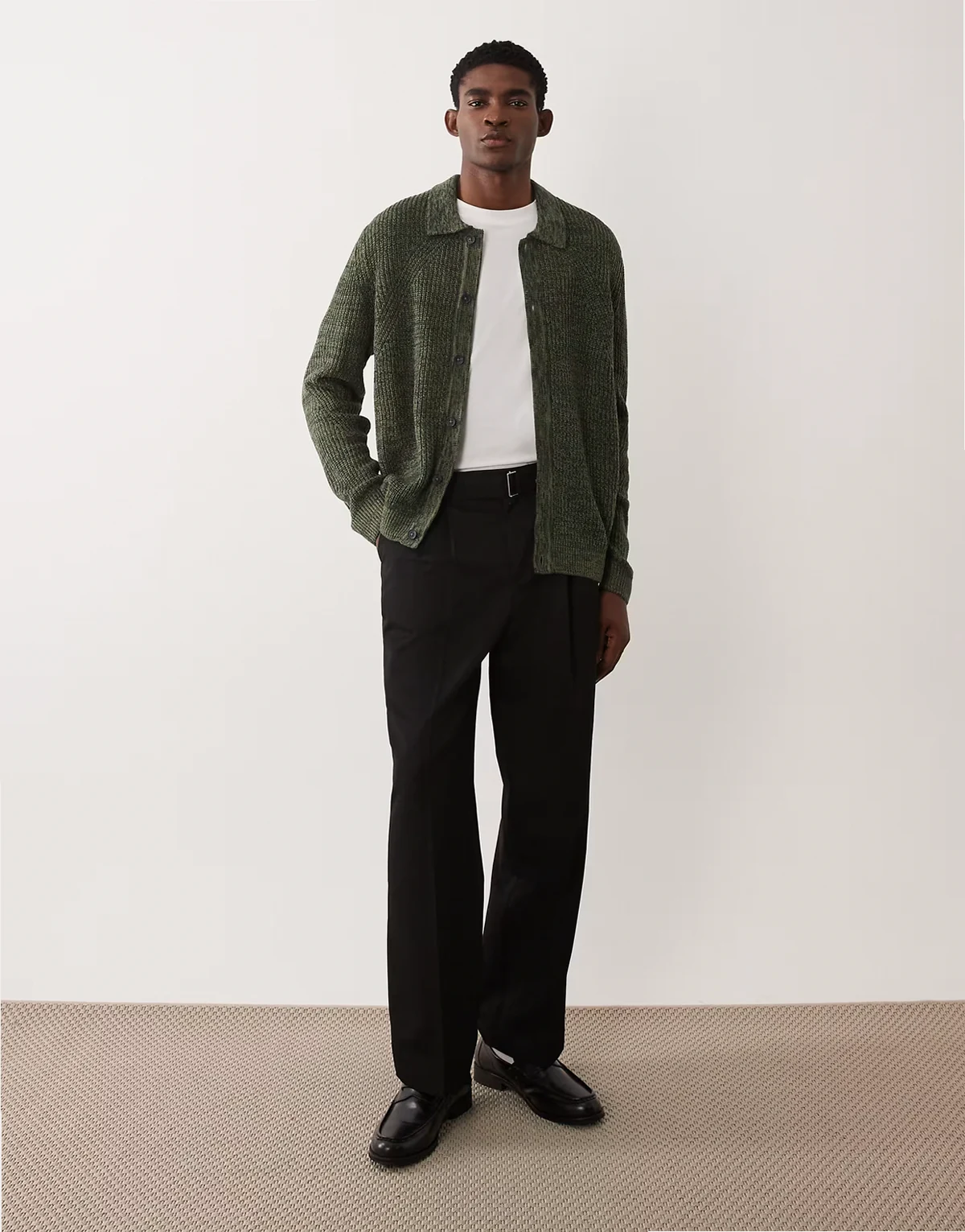 – Gerippte Relaxed-Fit-Strickjacke mit Knopfleiste in Khaki