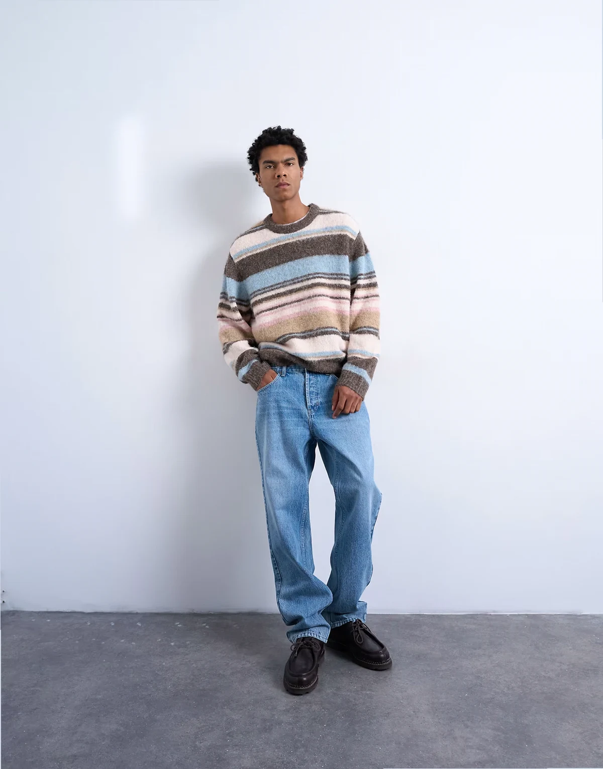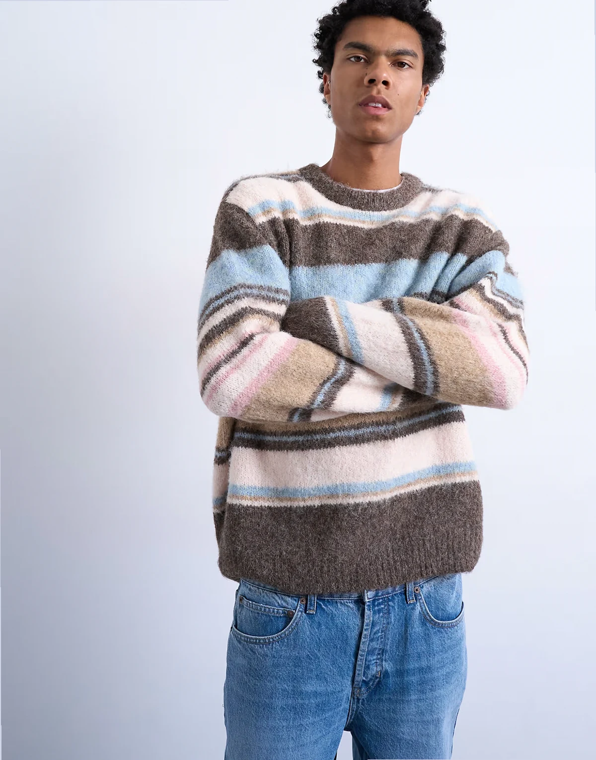 Dieser mittelschwere, flauschige Strickpullover verfügt über einen Rundhalsausschnitt, lange Ärmel und ein Streifenmuster. Dieser Style zeigt sich im gemütlichen Relaxed Fit.