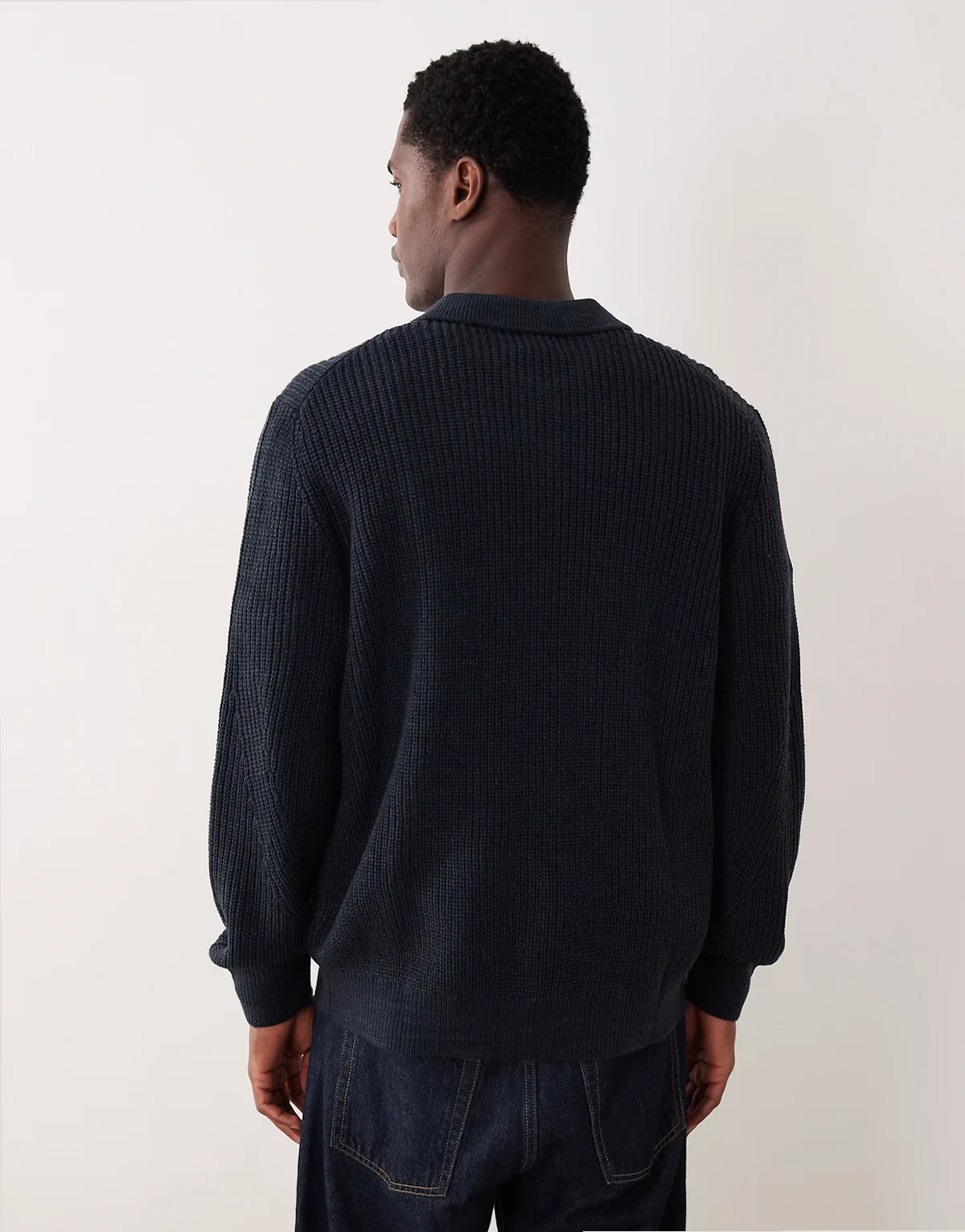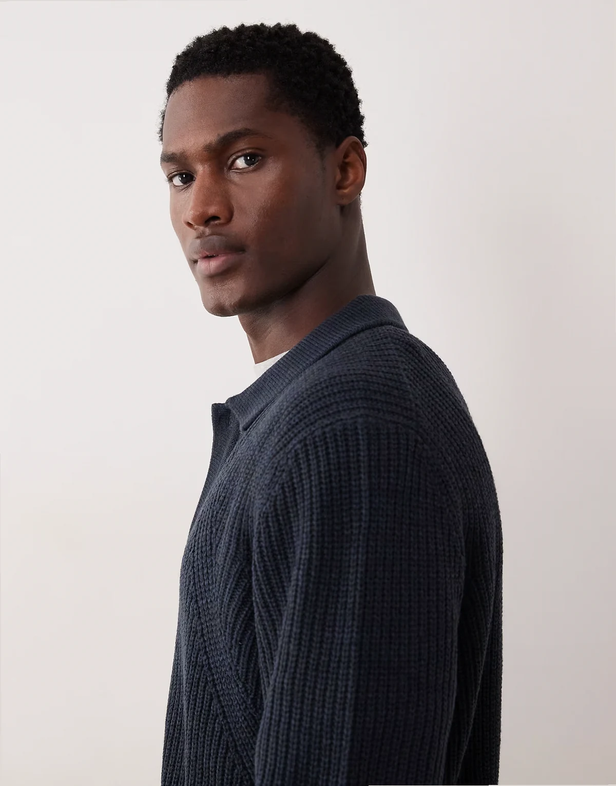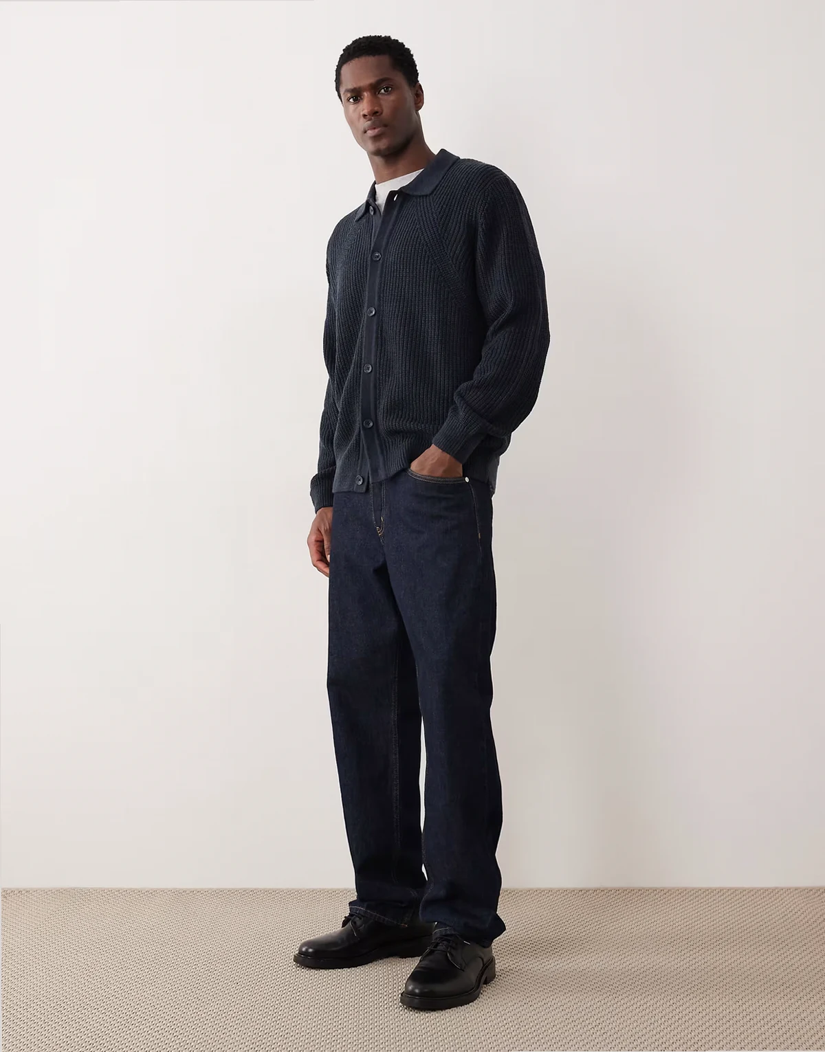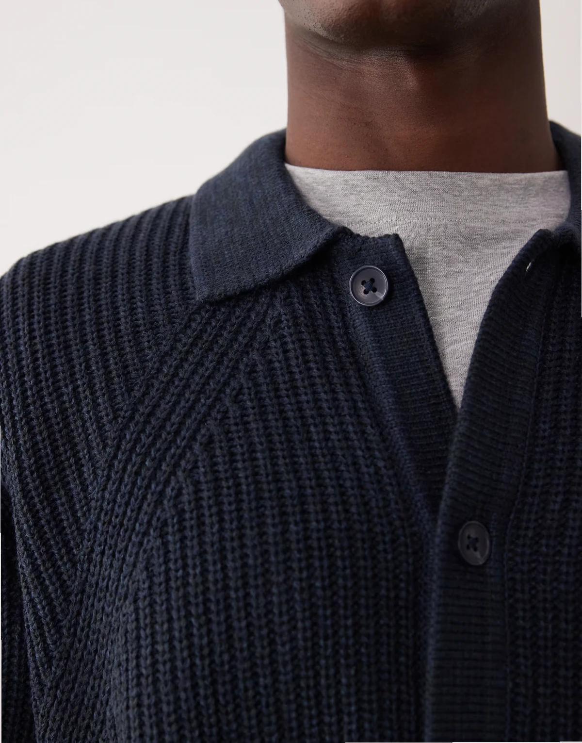– Gerippte Relaxed-Fit-Strickjacke mit Knopfleiste in meliertem Marineblau