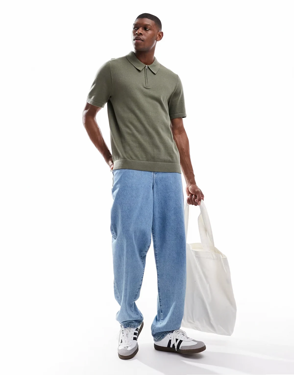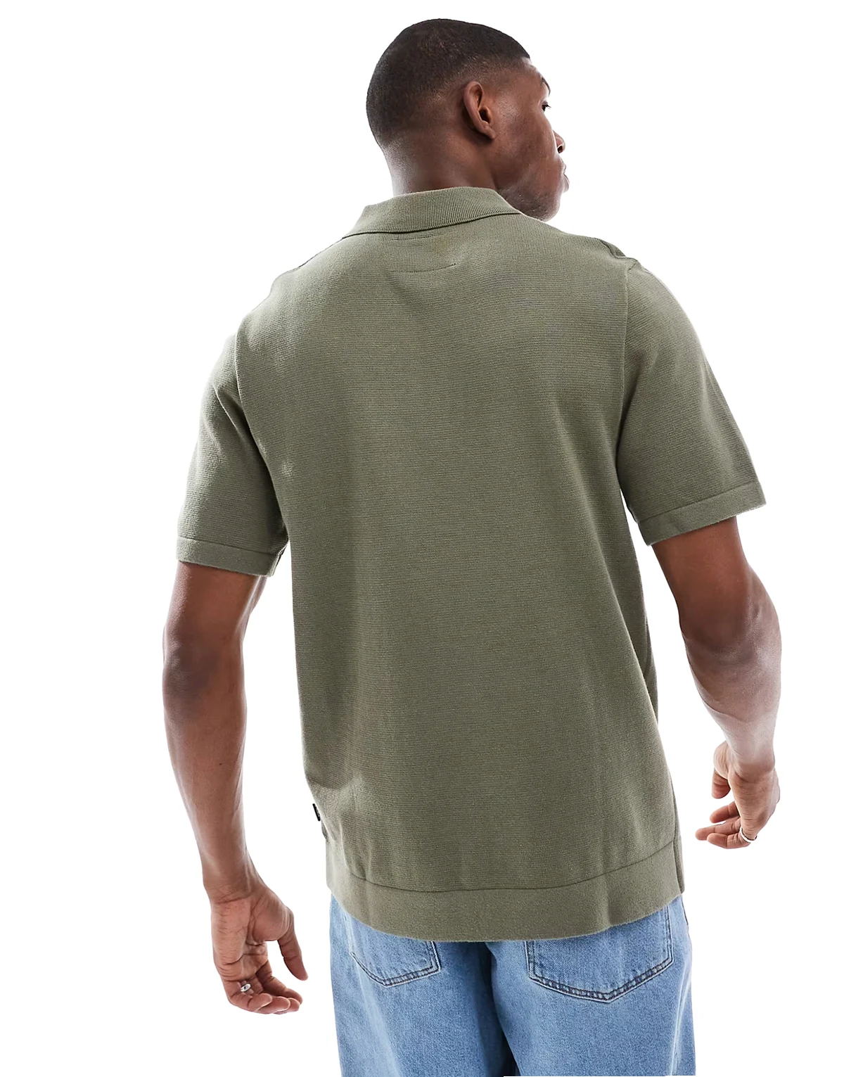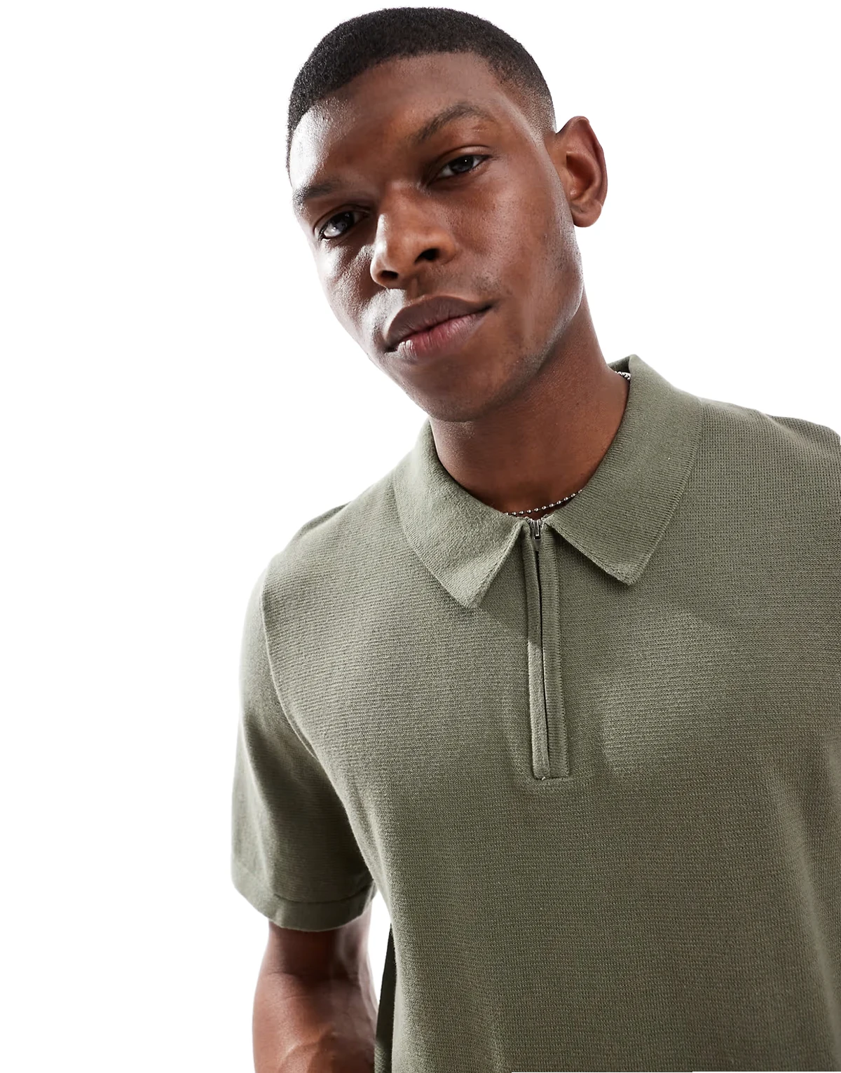 – Strick-Polohemd in Khaki mit Reißverschluss