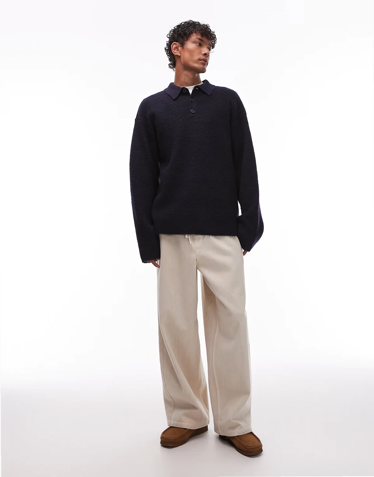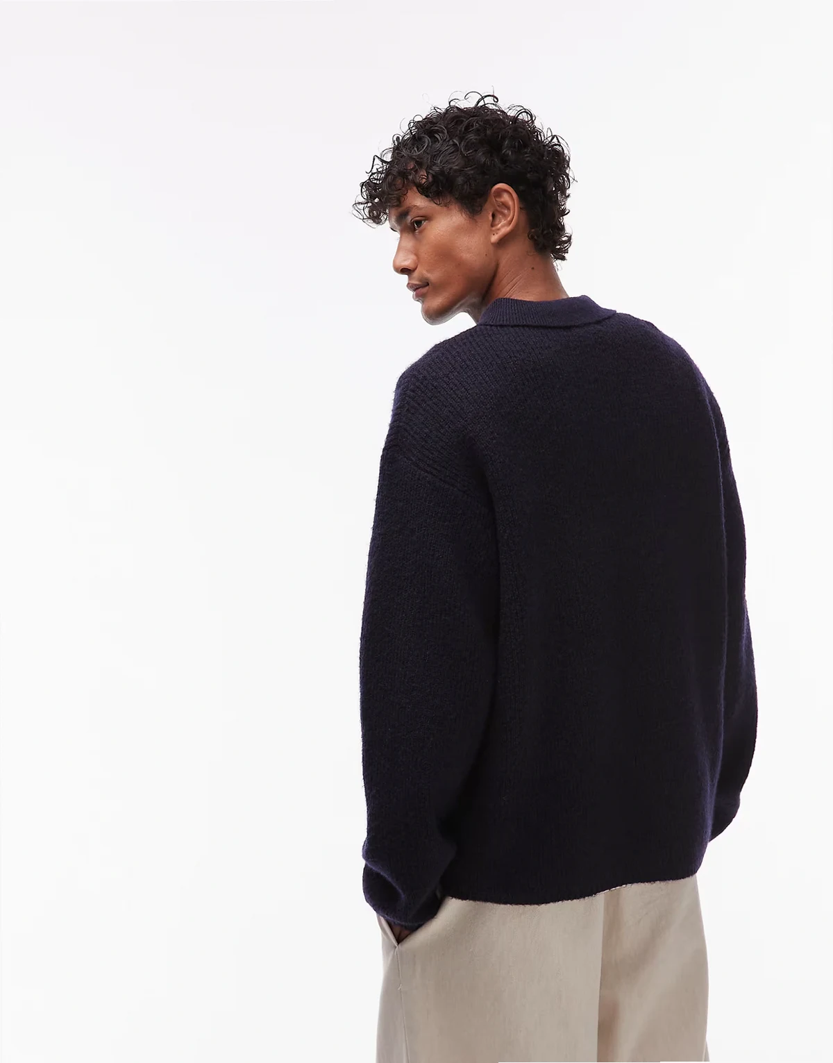 – Oversize-Polohemd aus Strickstoff in Marineblau