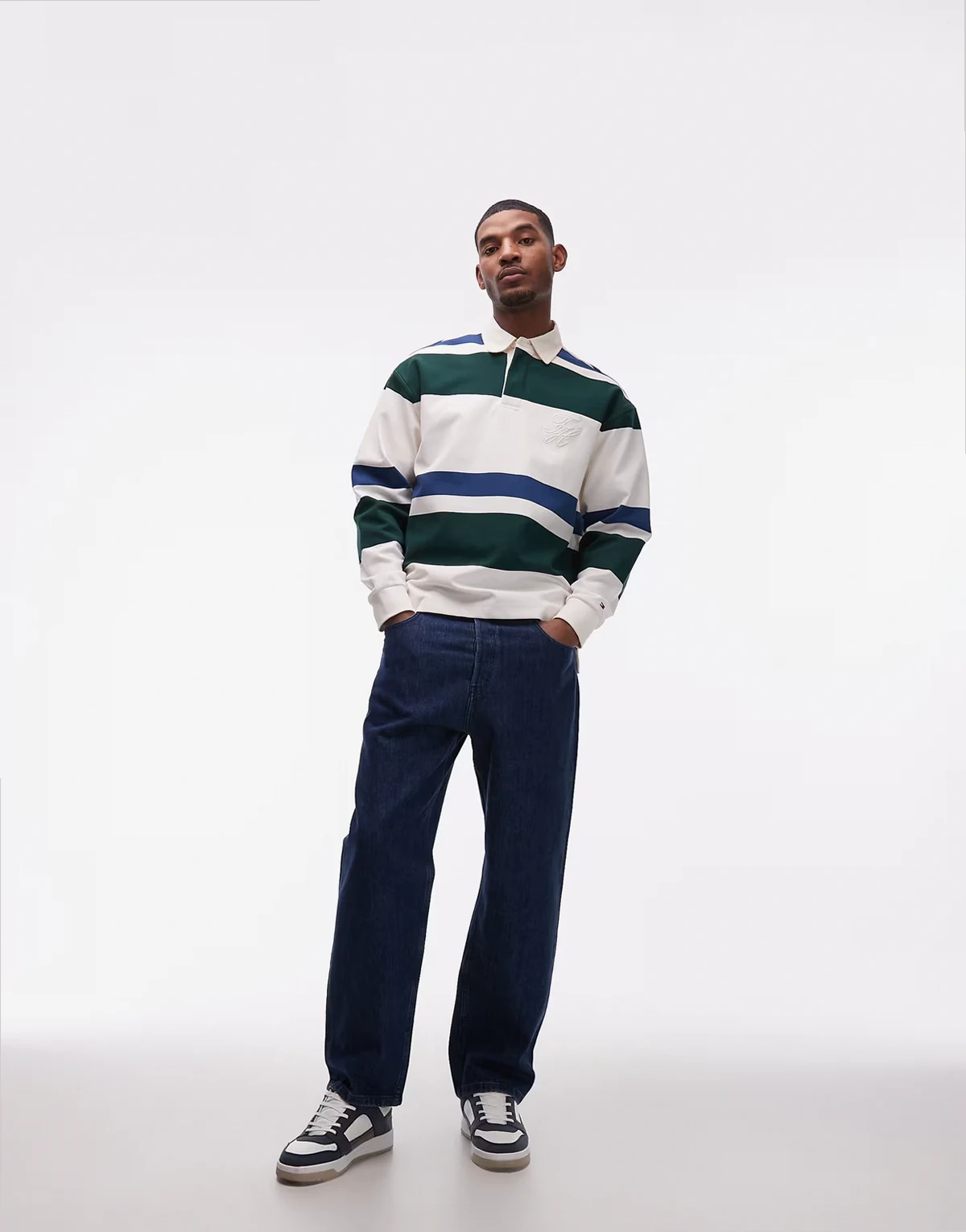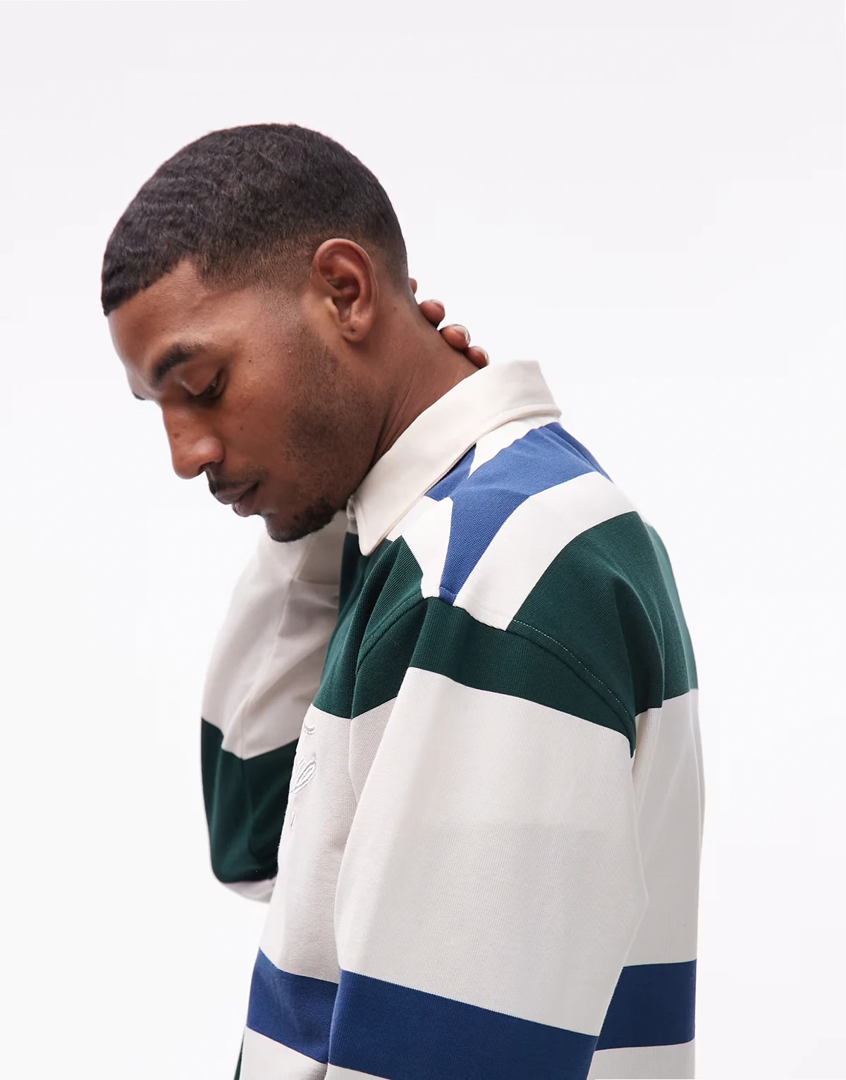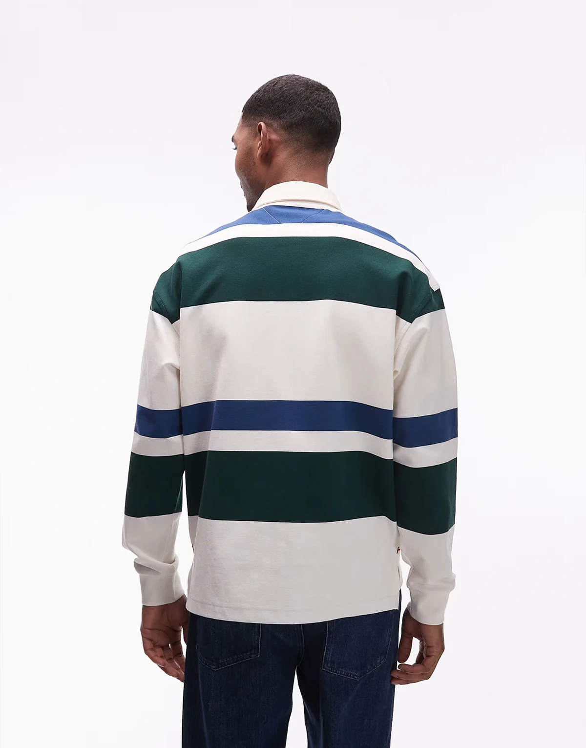 – Locker geschnittenes, gestreiftes Rugby-Hemd in Cremeweiß und Grün