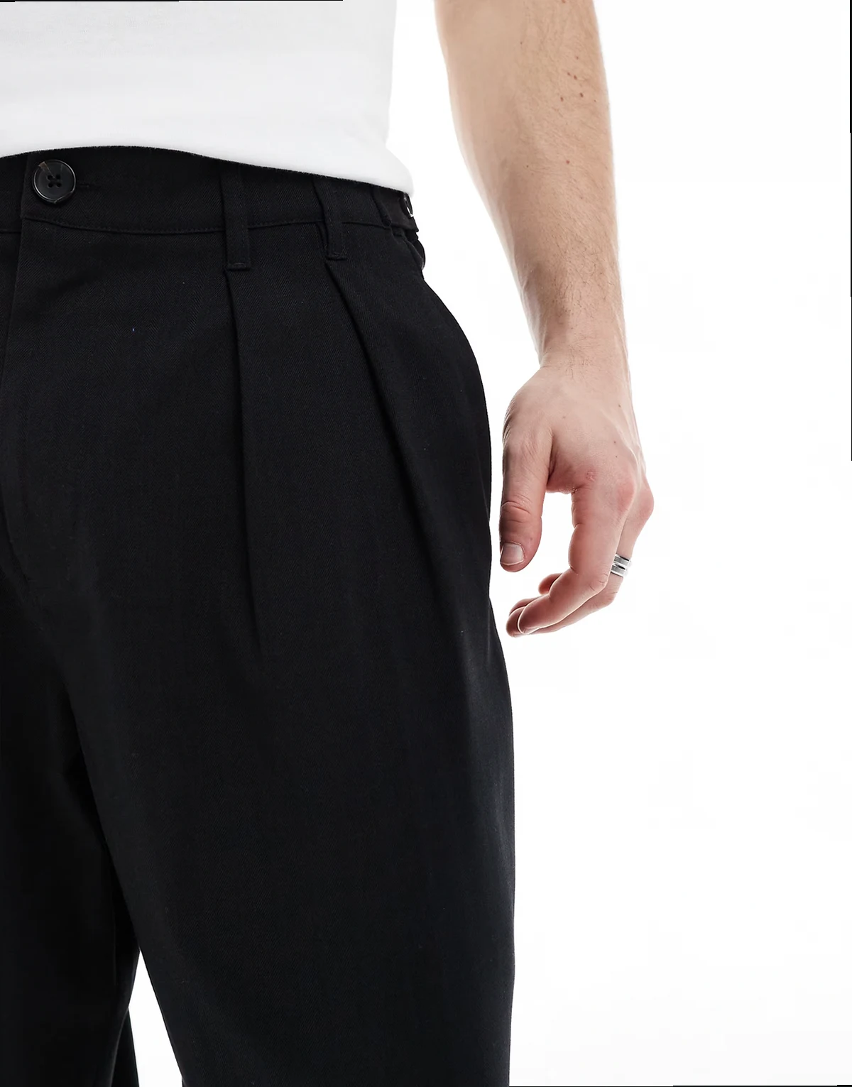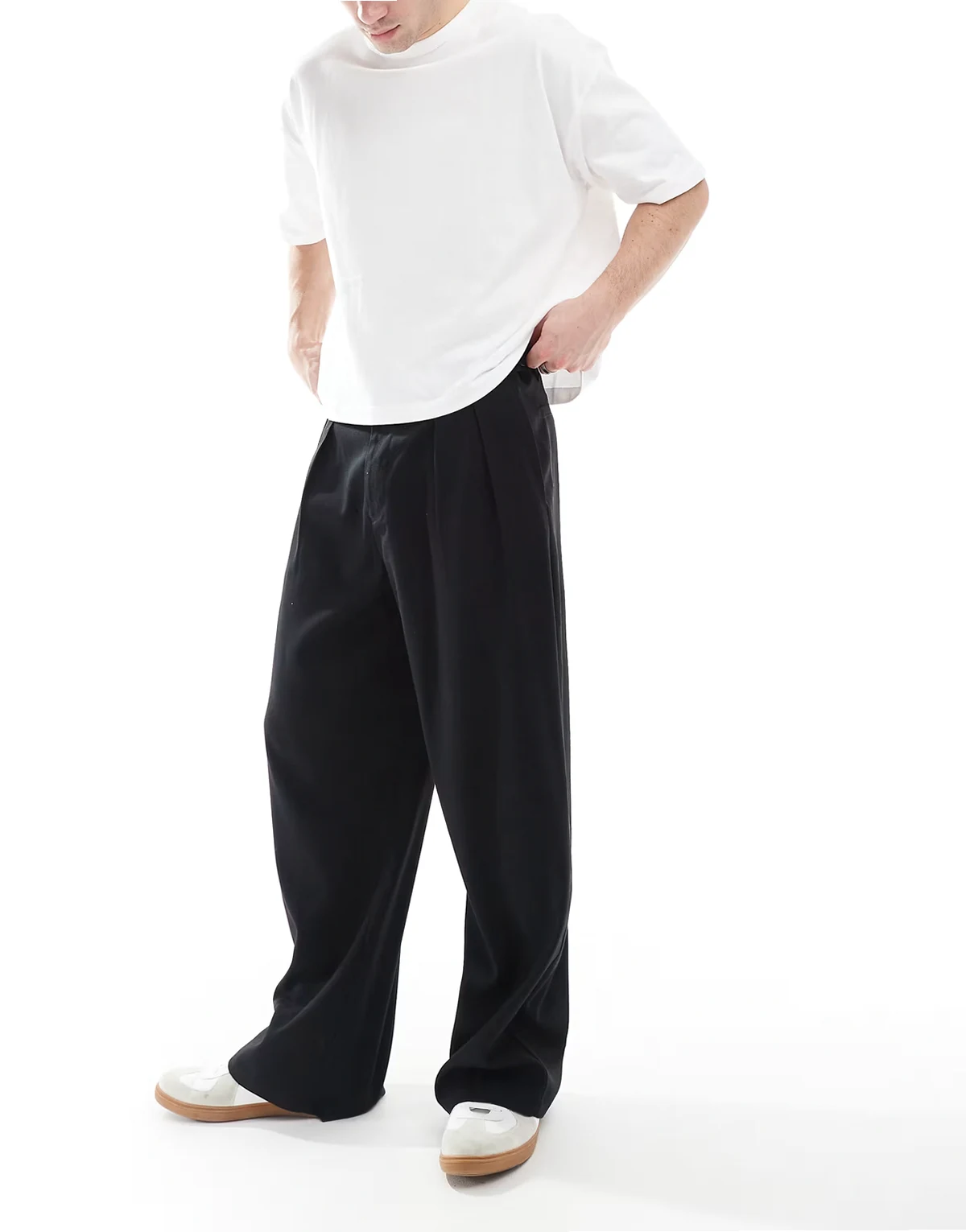 – Weit geschnittene Hose in Schwarz mit Bundfalten