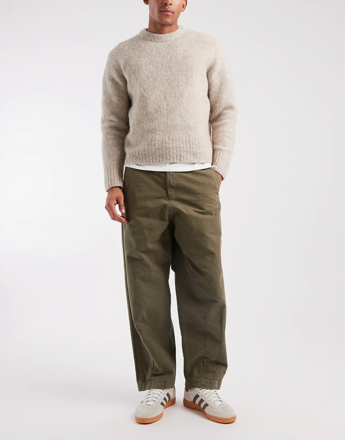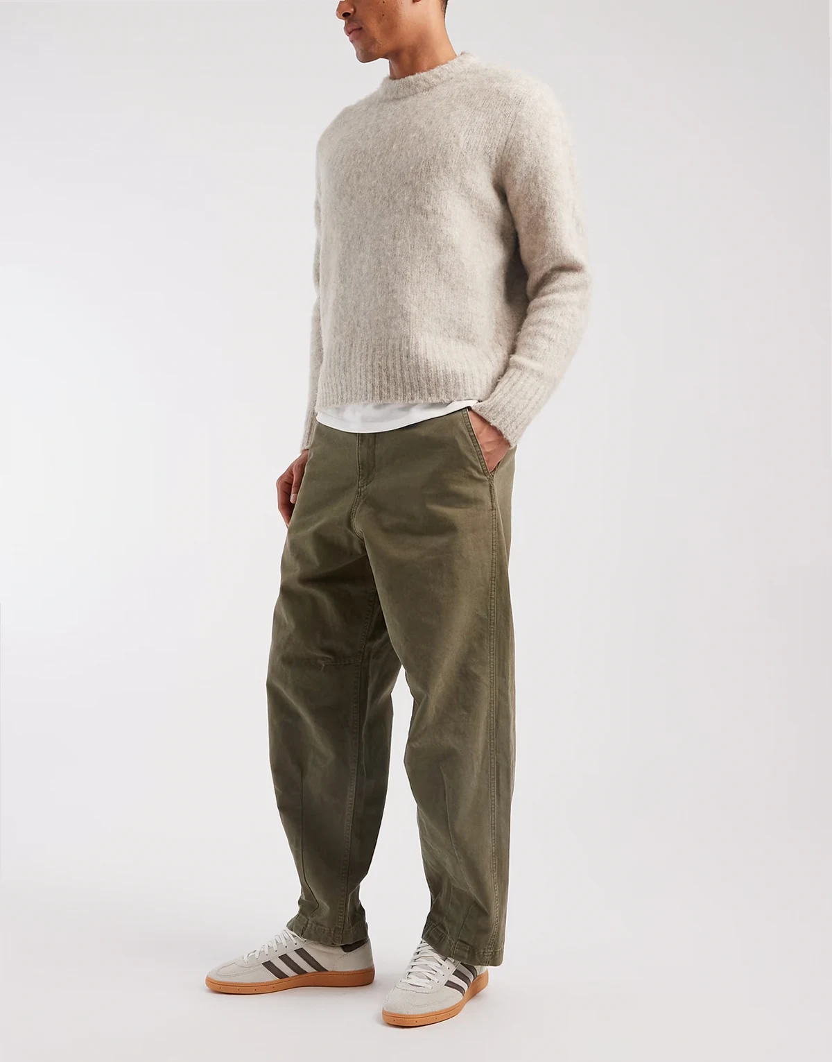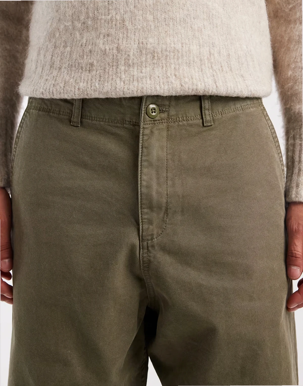 – Cordhose in Olivgrün mit abgerundetem Beinschnitt