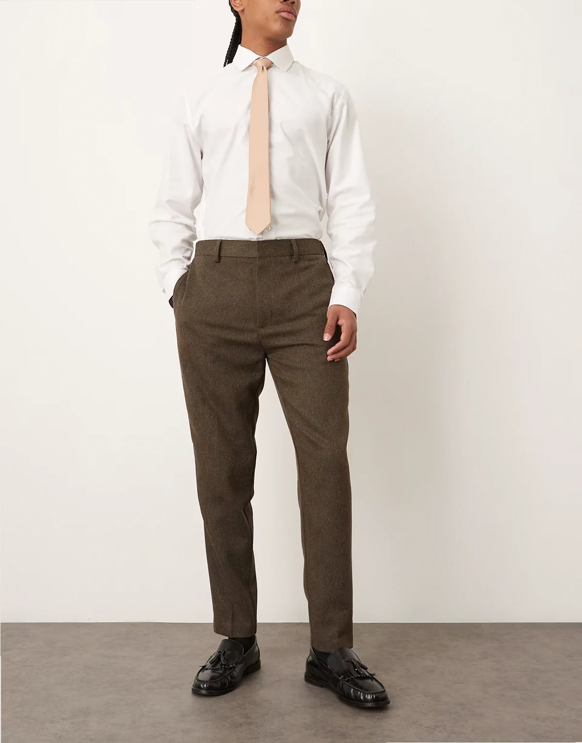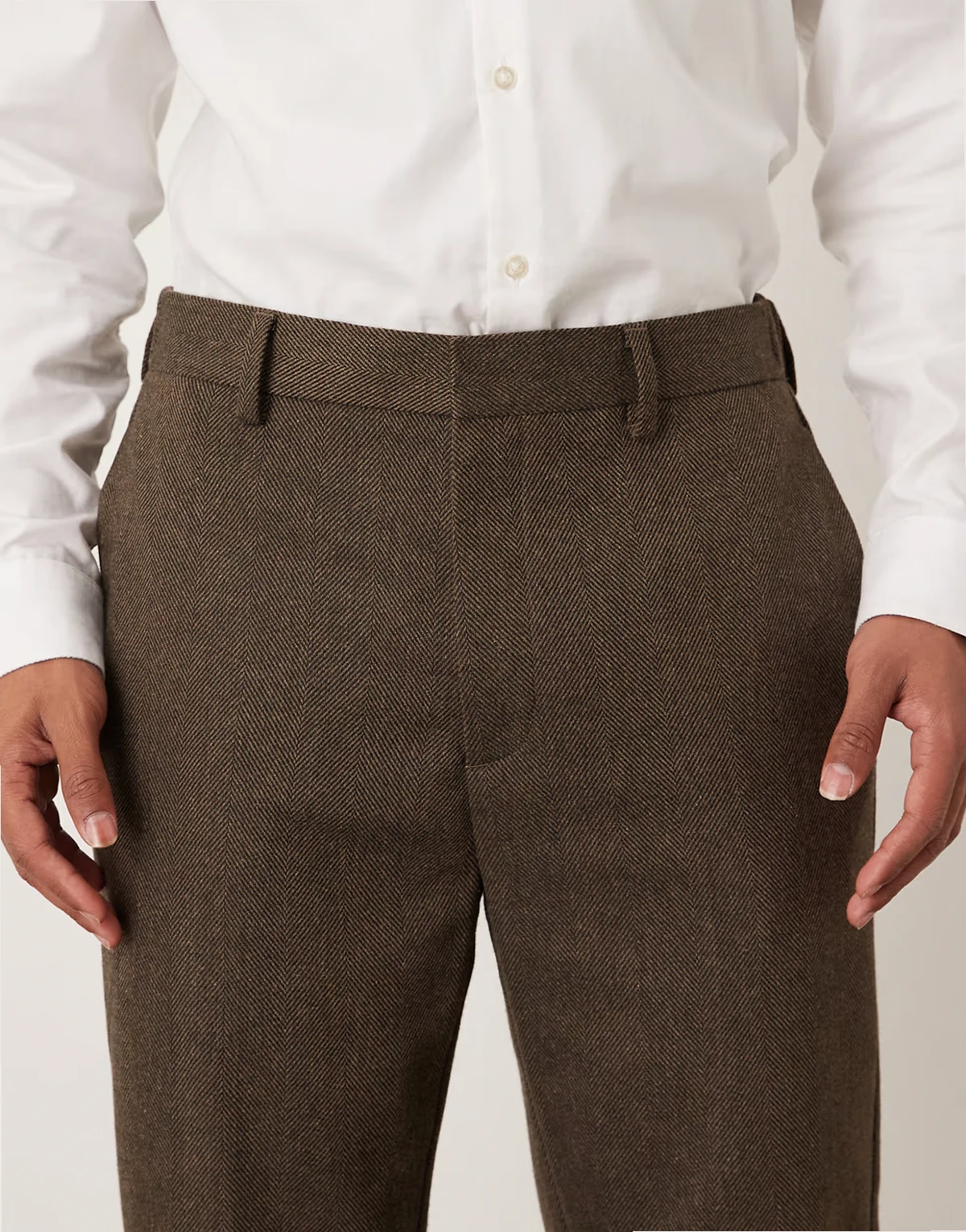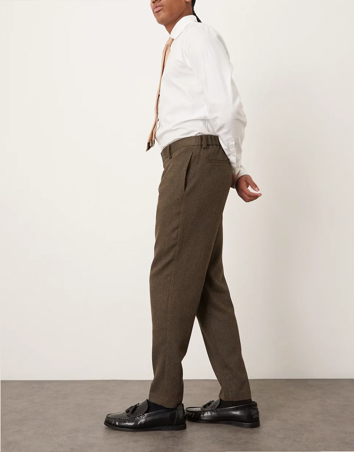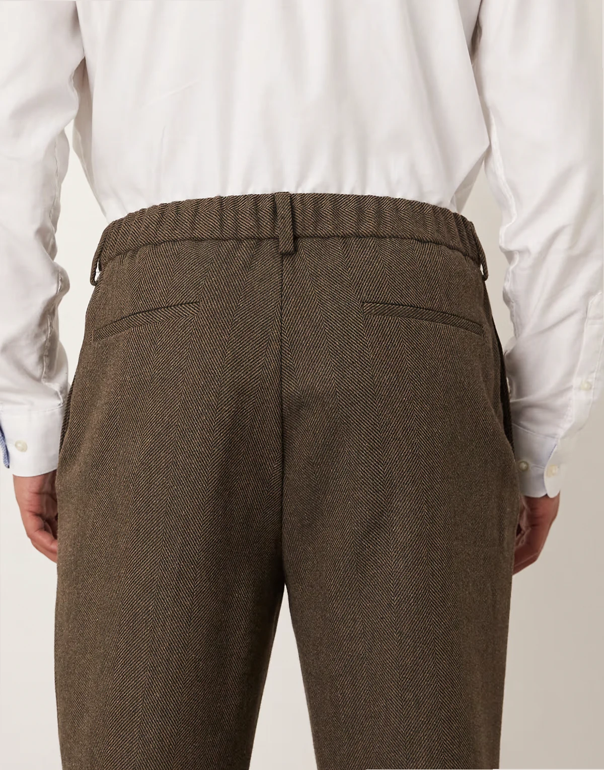 – Elegante, schmal zulaufende Hose in Braun mit Wollanteil und halb elastischem Bund
