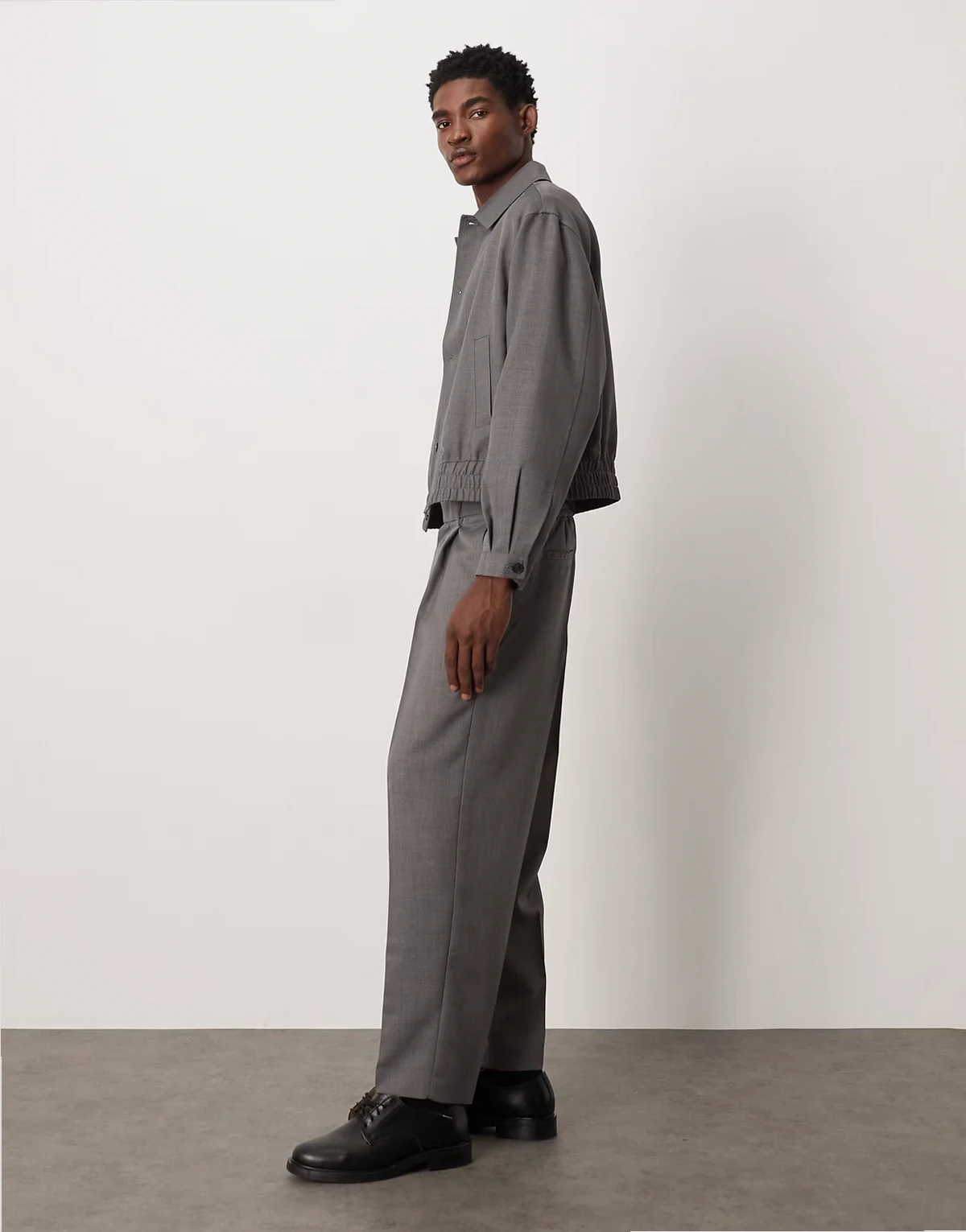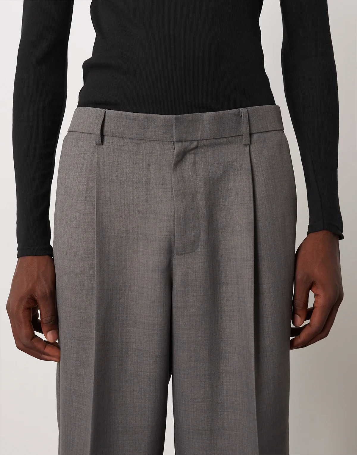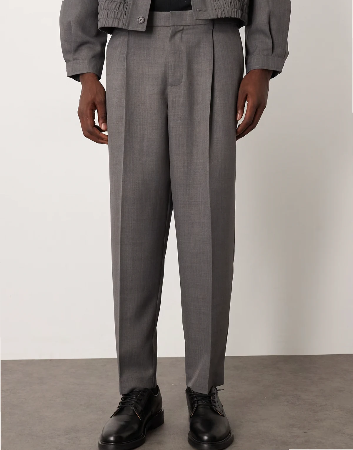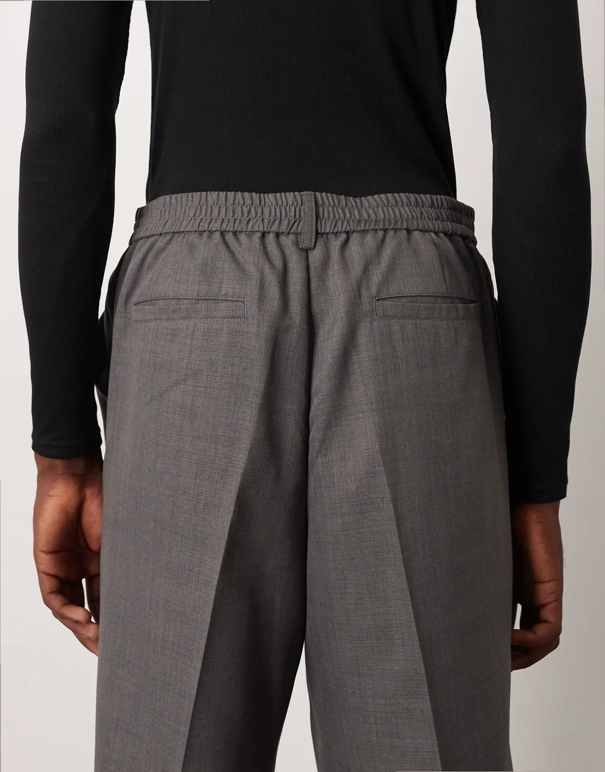 – Elegante, schmal zulaufende Oversize-Hose in meliertem Grau mit halb-elastischem Bund, Kombiteil
