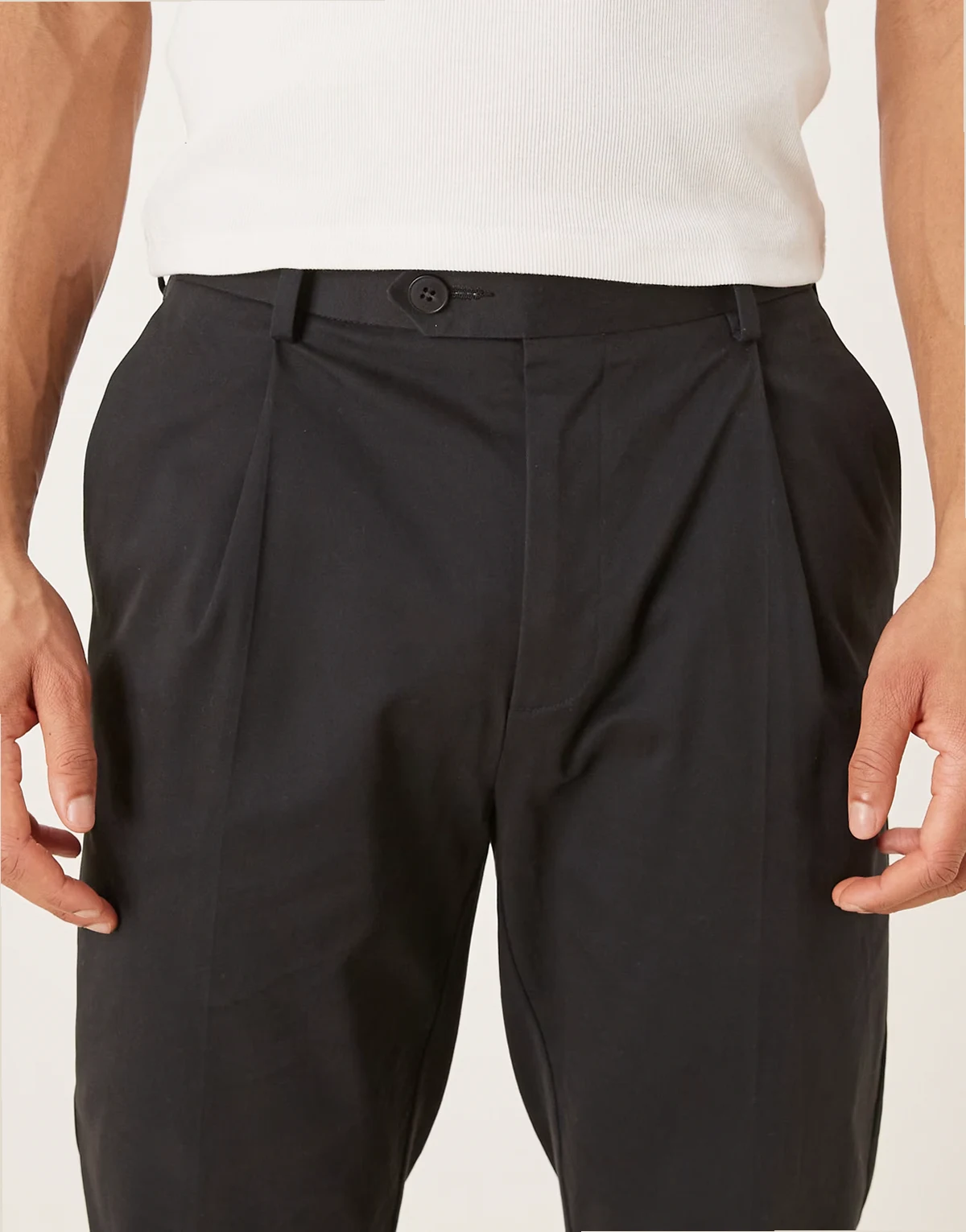 – Elegante, schmal zulaufende Chinohose in Schwarz mit hohem Baumwollanteil und Umschlag