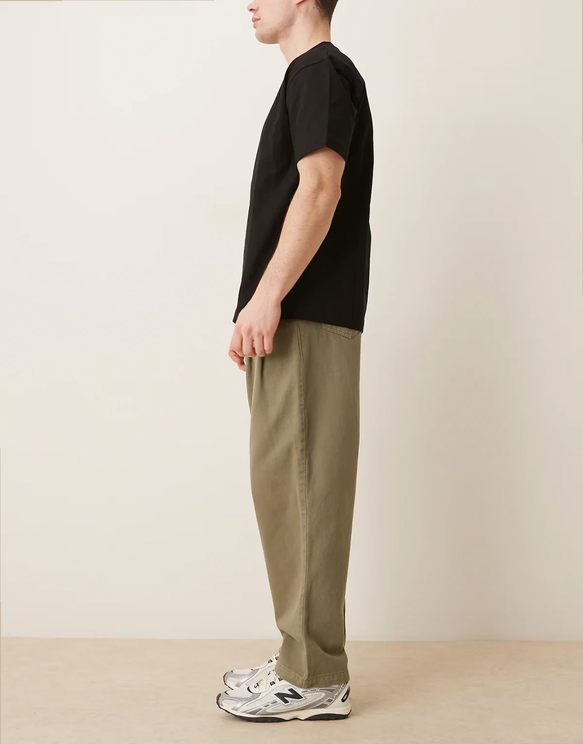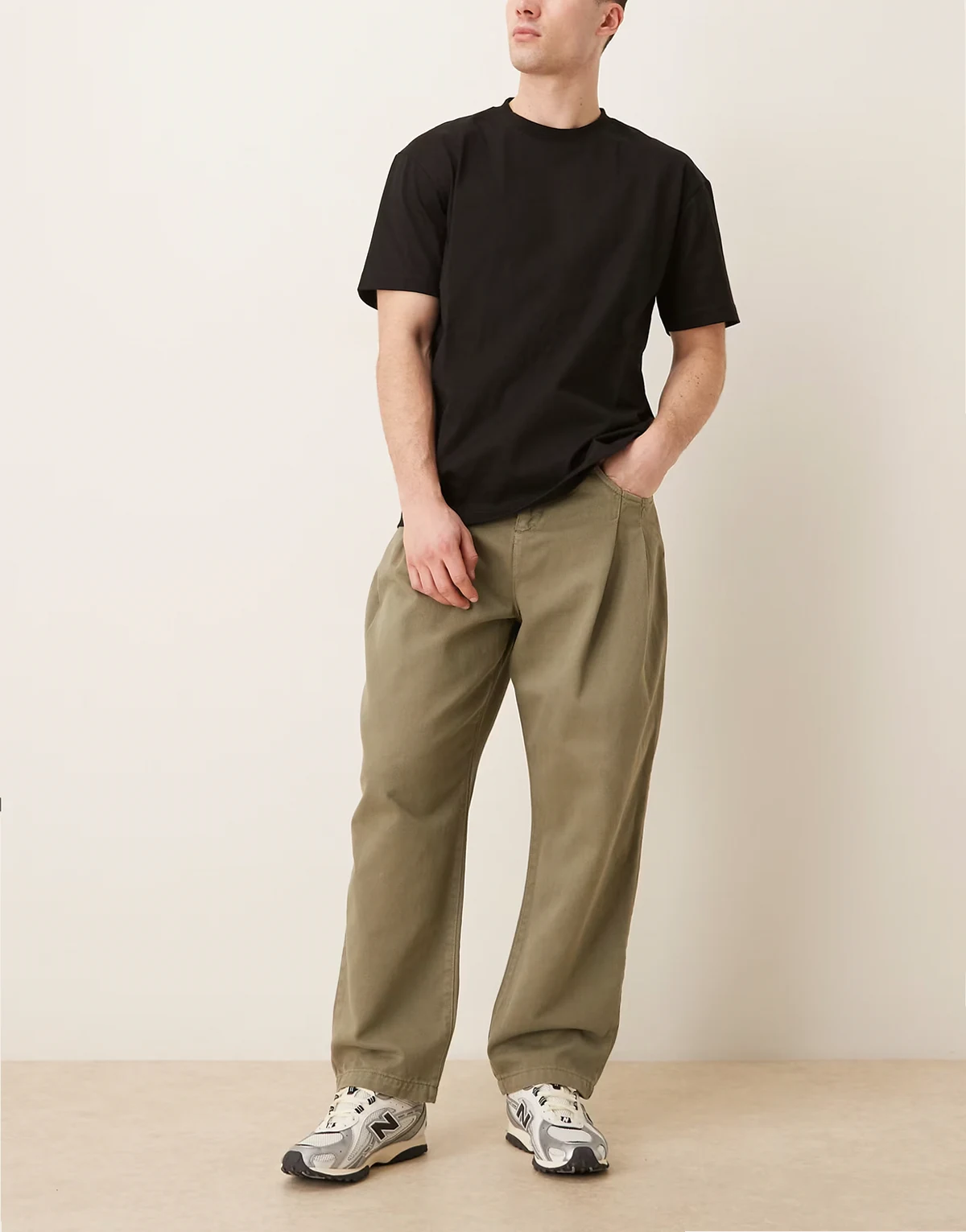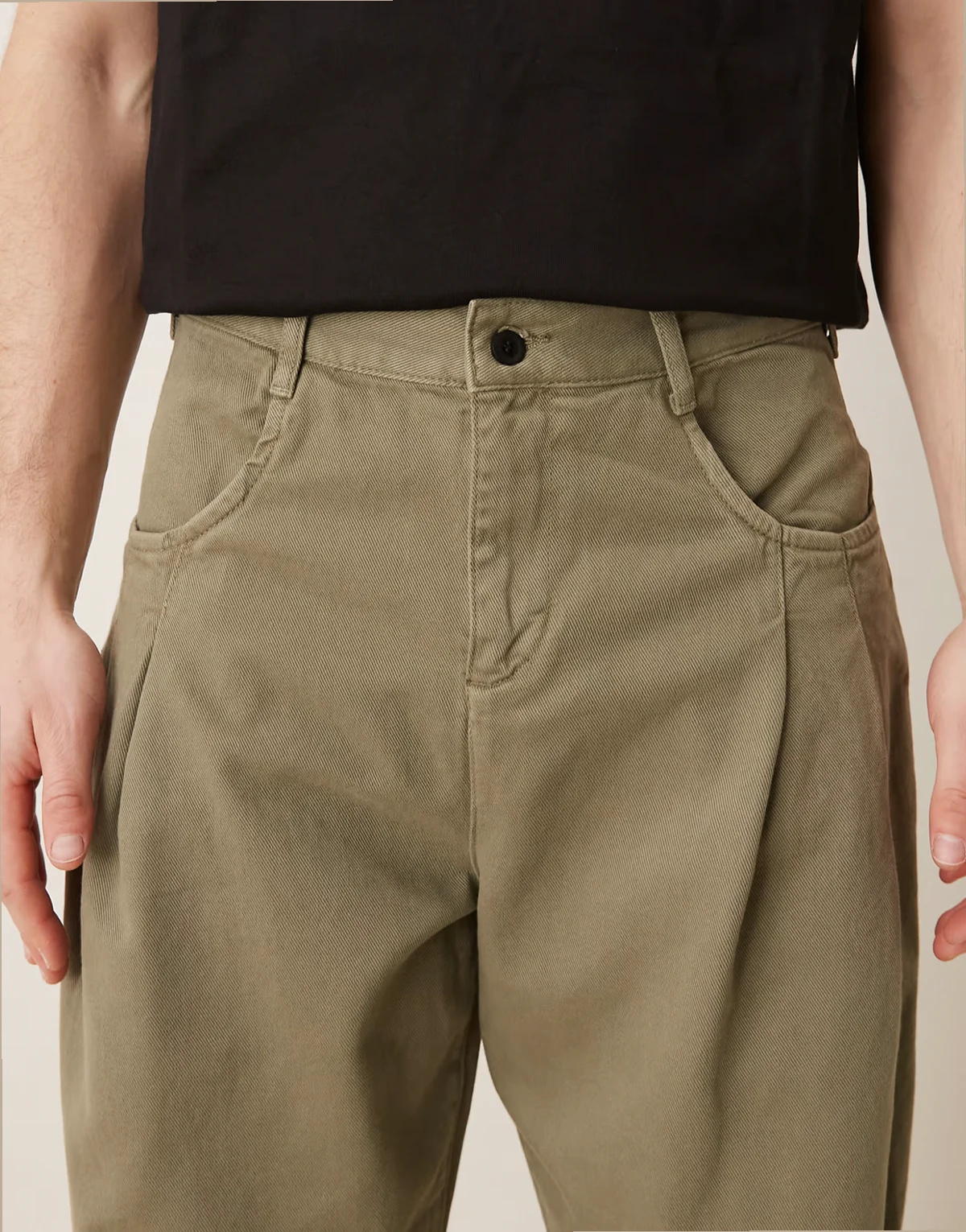 – Schmal zulaufende Relaxed-Fit-Hose in Khaki mit Doppel-Bundfalten