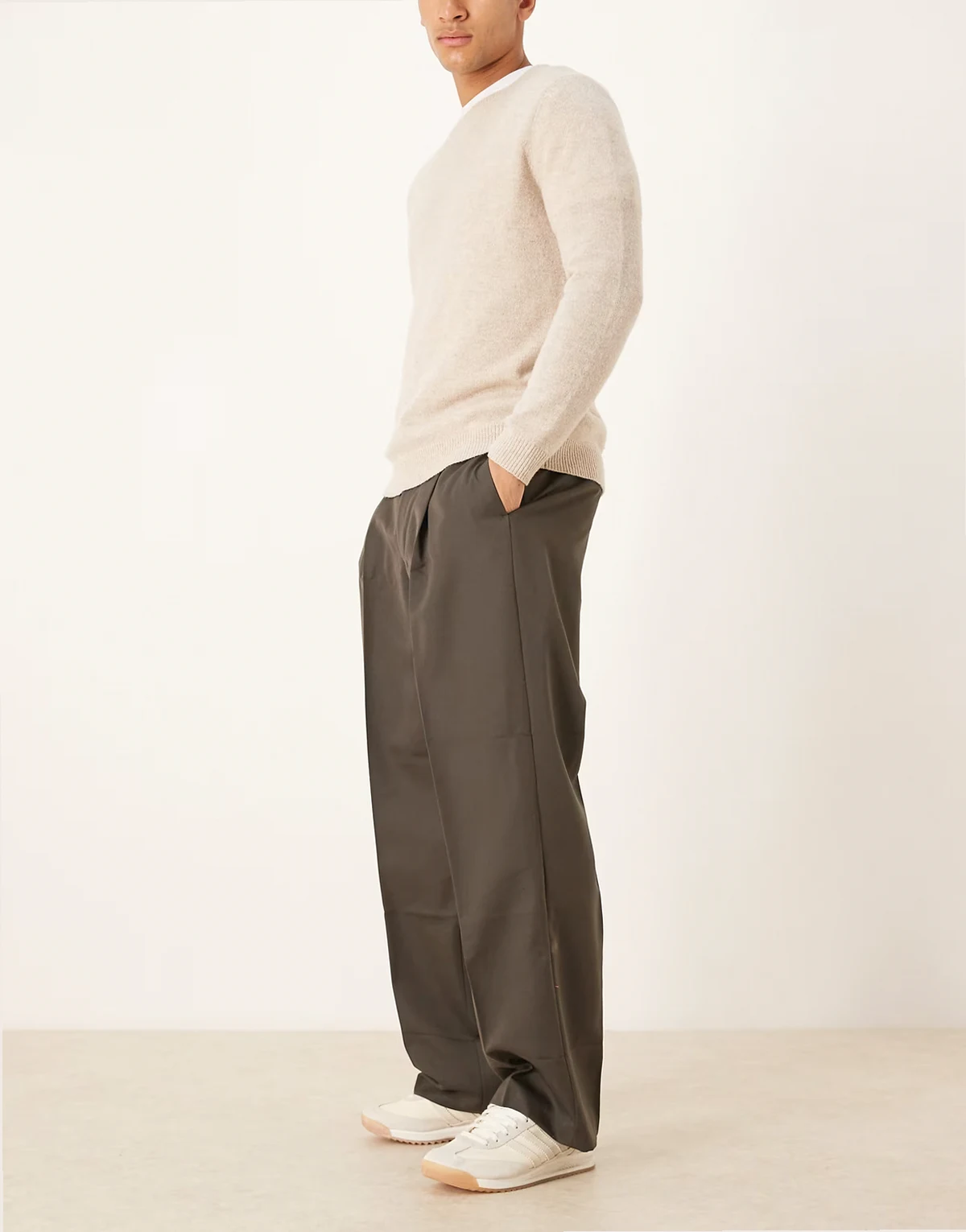 – Fließende Hose in Mokkabraun mit weitem Bein