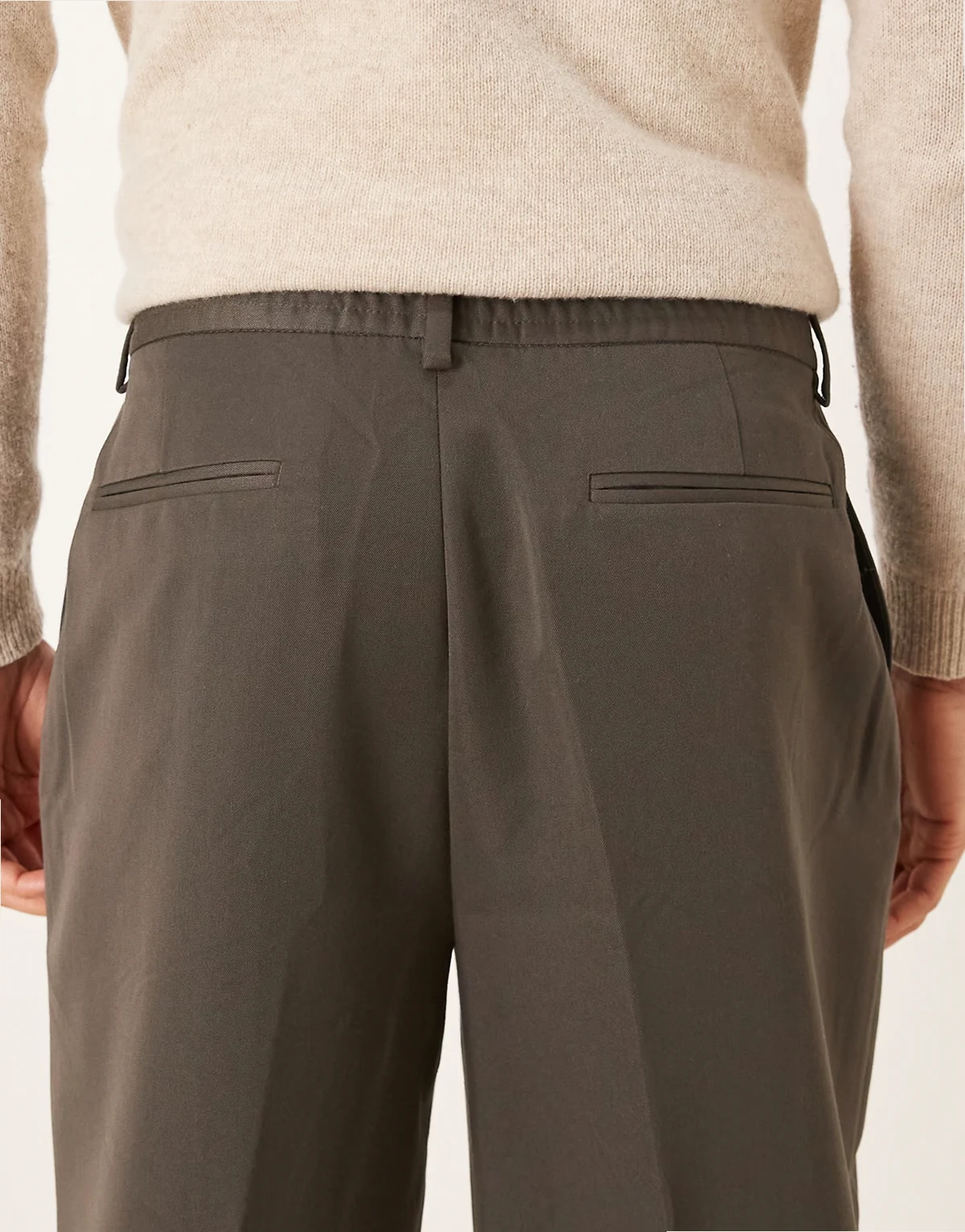 – Elegante Hose in Anthrazit mit weitem Bein, elastischem Bund und Bundfalten