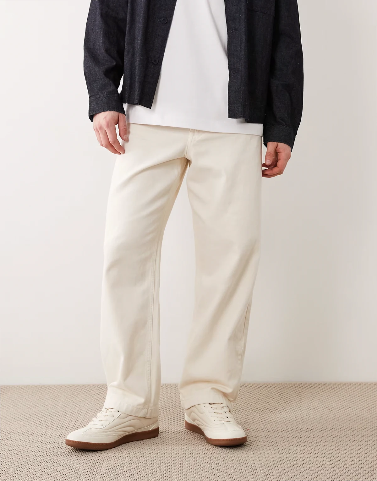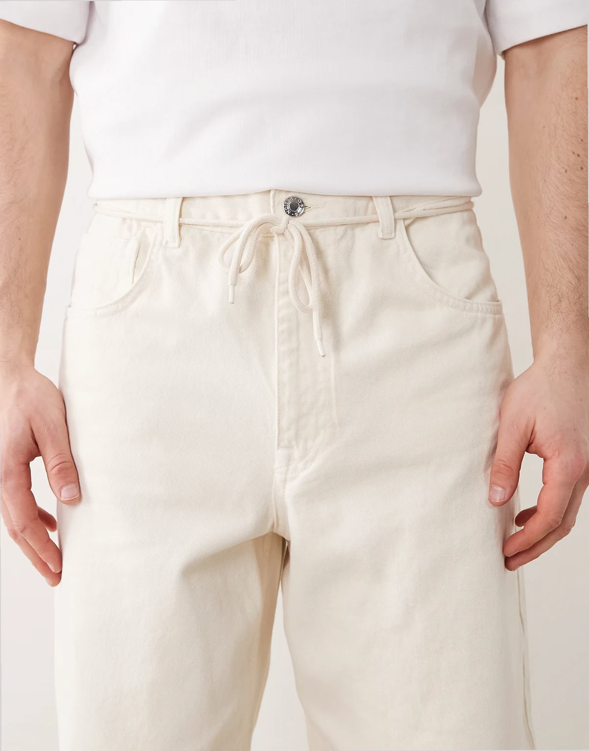 – Lockere Hose in Ecru mit geradem Bein und Gürtel