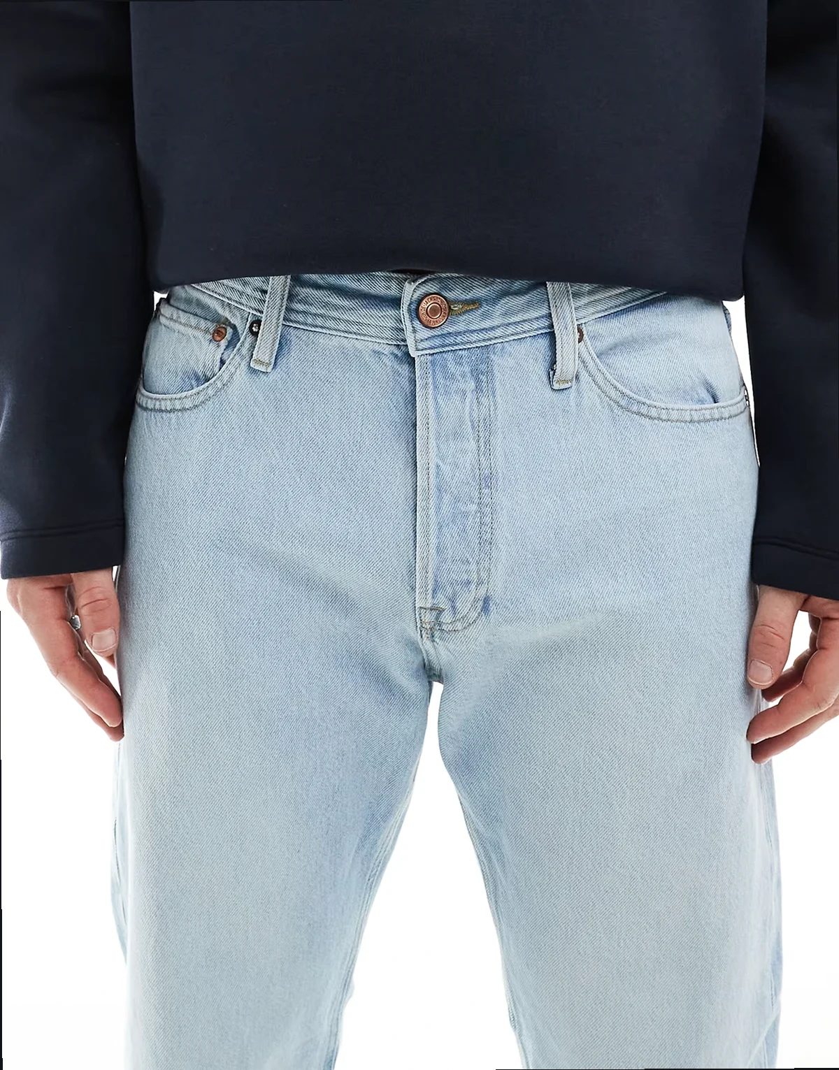Jeansstoff ohne Stretchanteil: hellblaue Waschung