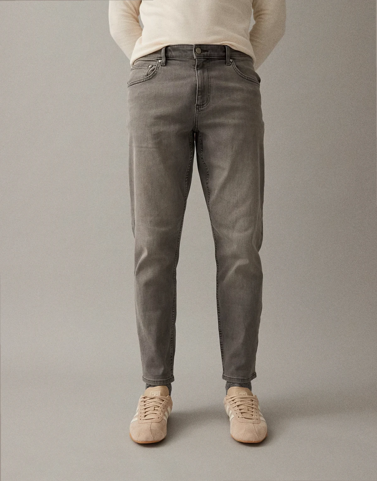 – Schmal zulaufende Stretch-Jeans in Grau