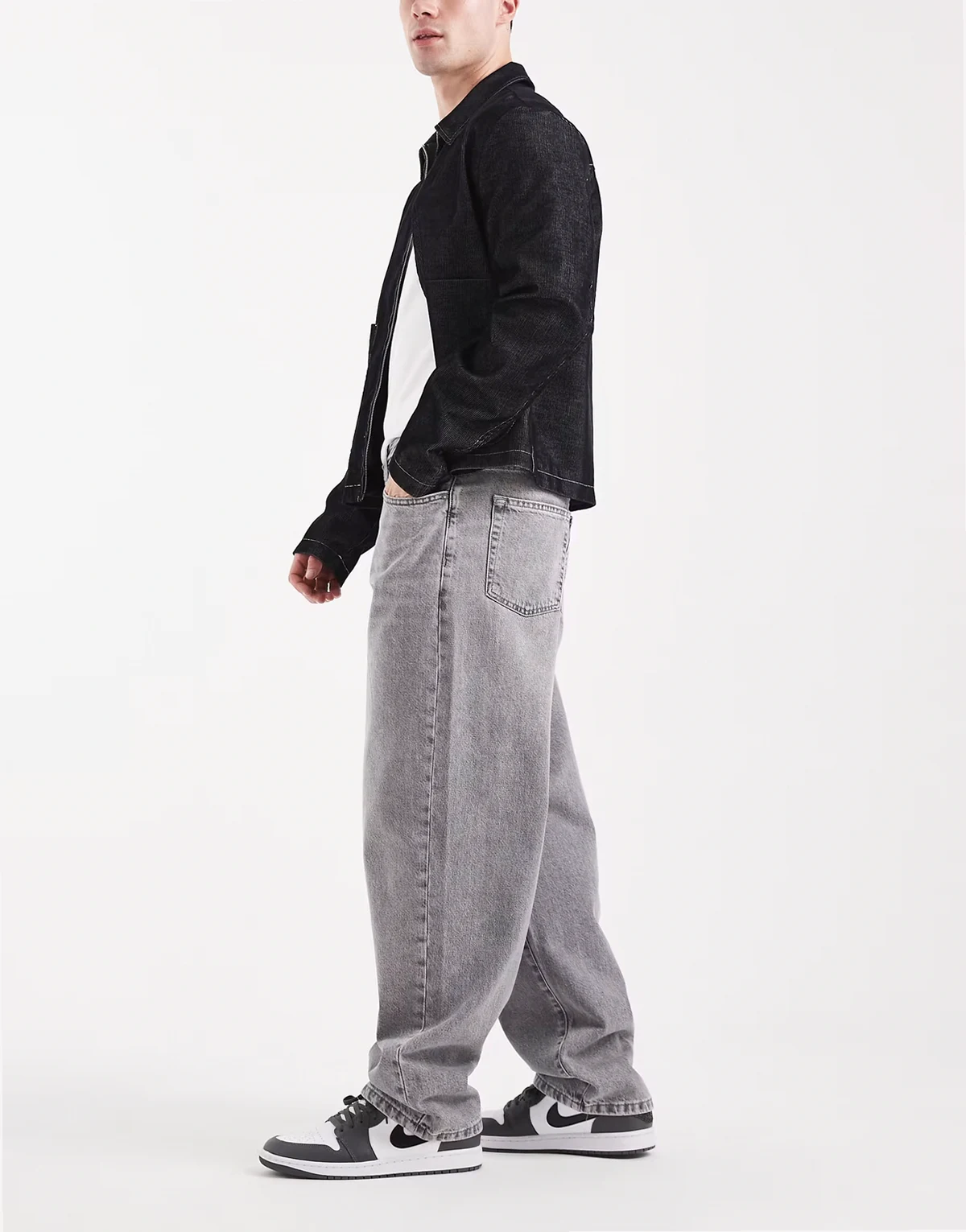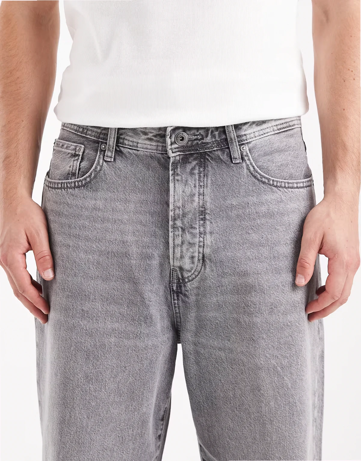 – Locker geschnittene Jeans in verblasstem Grau