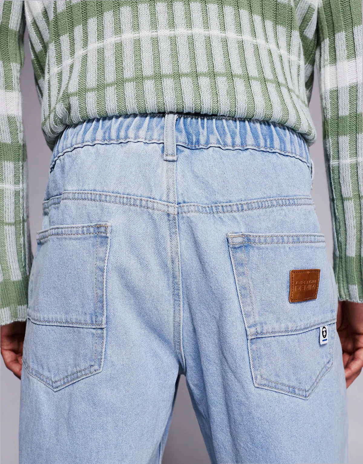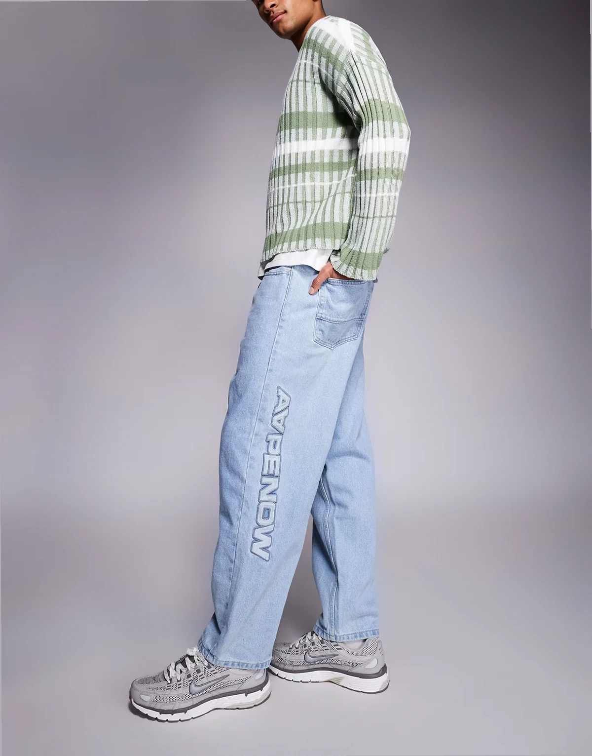 AAPE BY A BATHING APE – Loose-Fit-Jeans aus Denin in Hellblau mit Stickerei am Bein