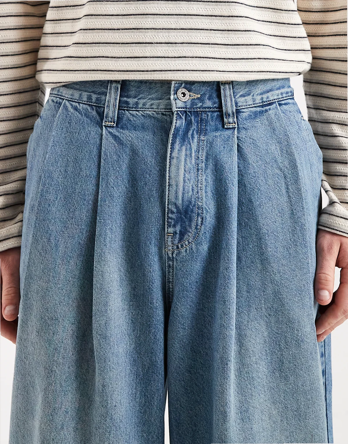 – Barrel-Jeans in verwaschenem Mittelblau mit Bundfalten