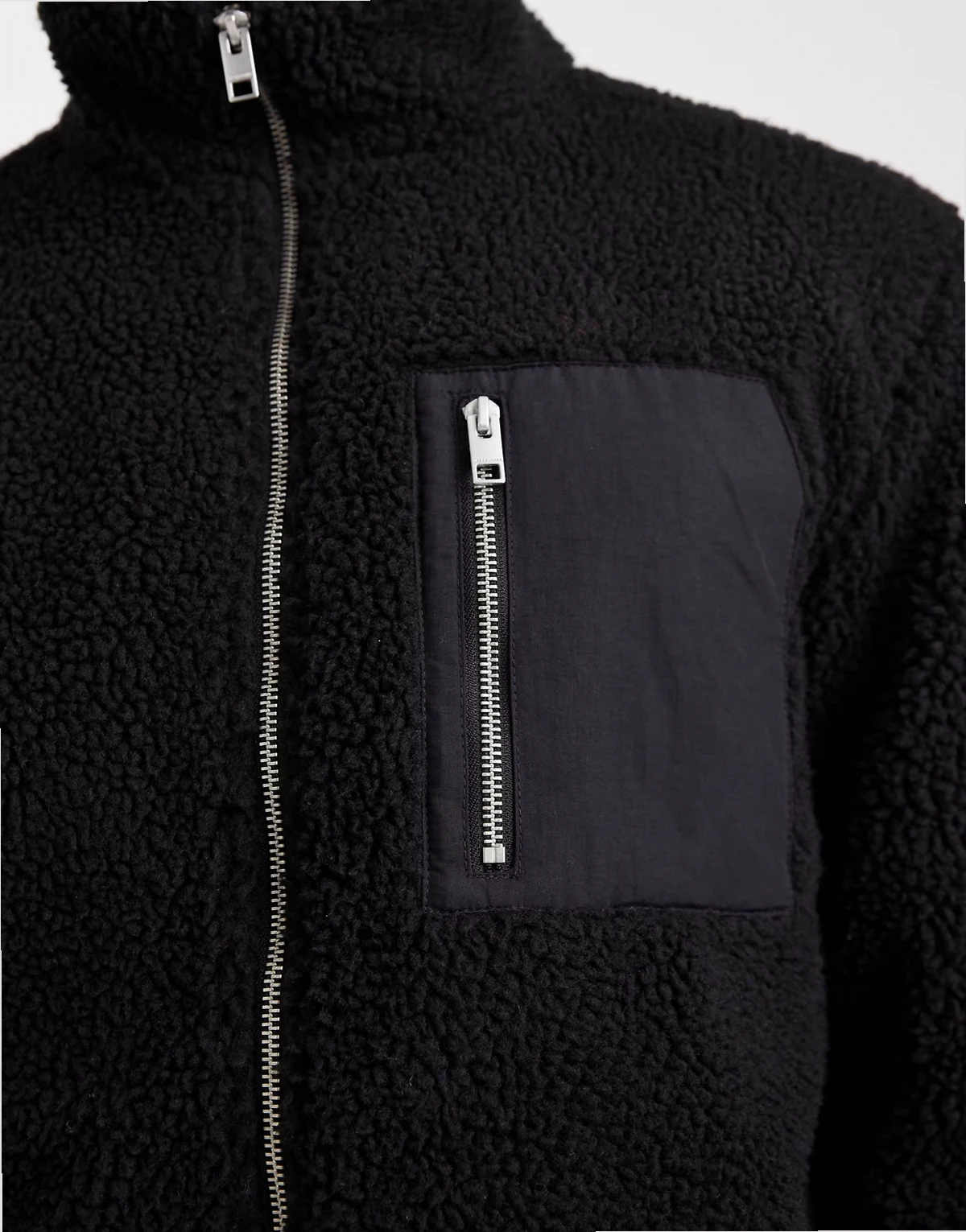 – Fleecejacke in Schwarz mit Tasche