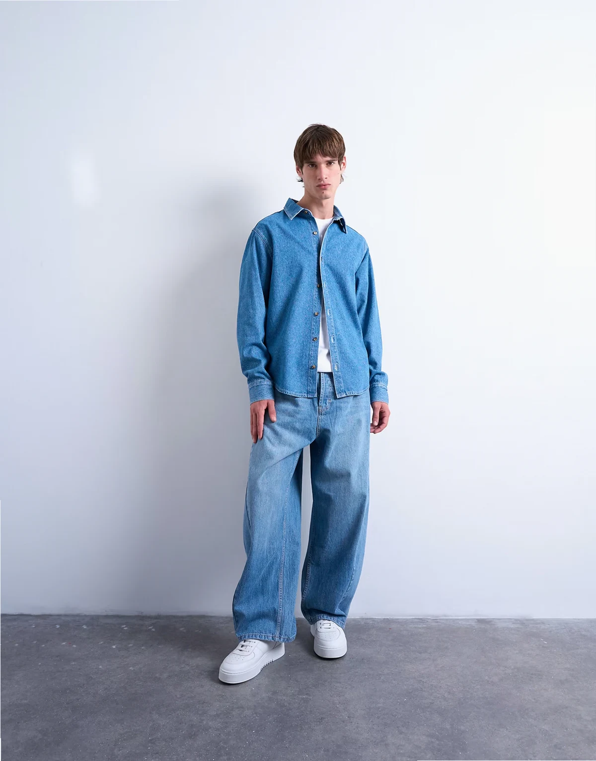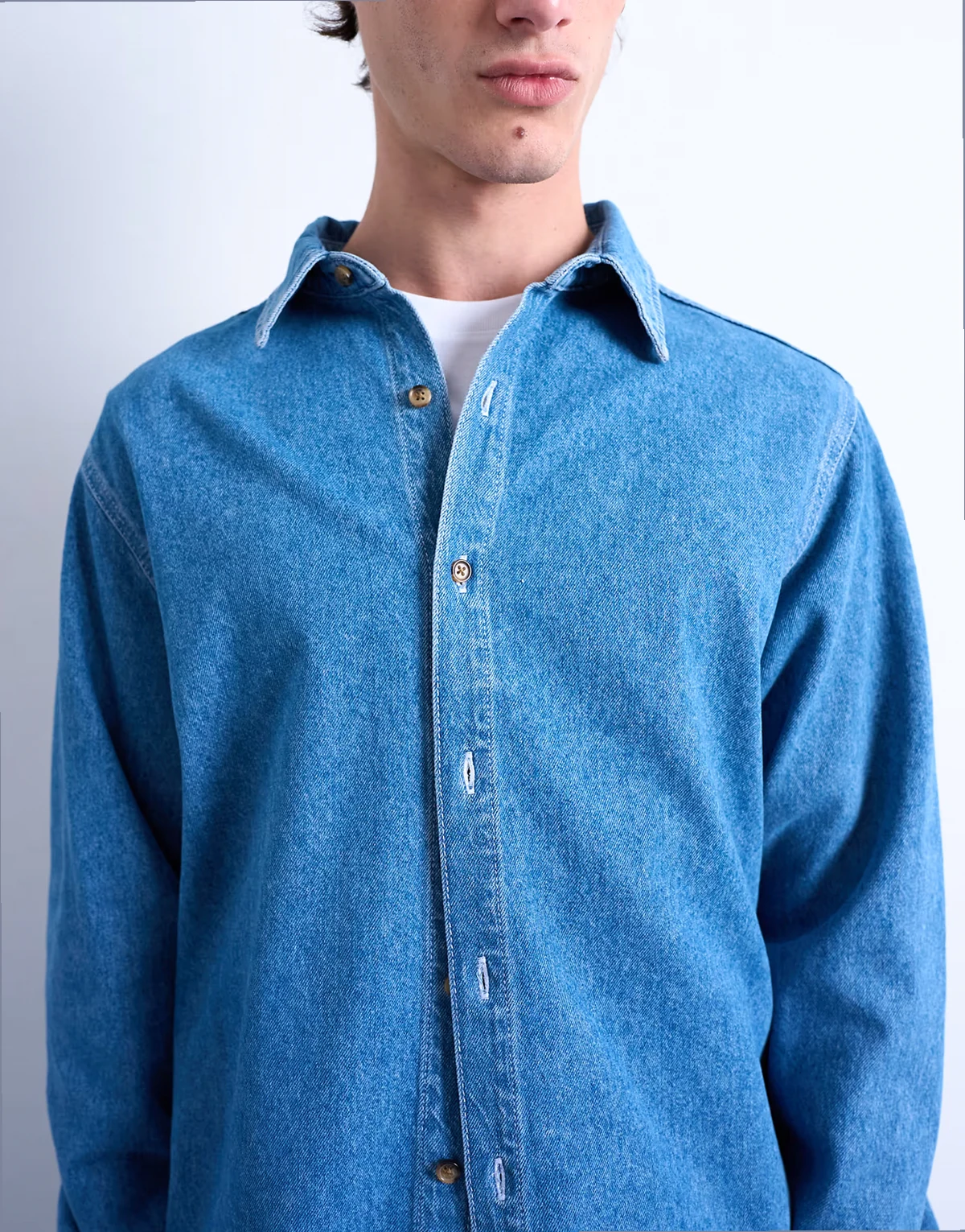 Dieses Hemd ist aus nicht dehnbarem Denim in mittelblauer Waschung gefertigt. Das Regular Fit hat einen breiten Kragen, eine Knopfleiste und ist wie gemacht für vielseitige Looks.