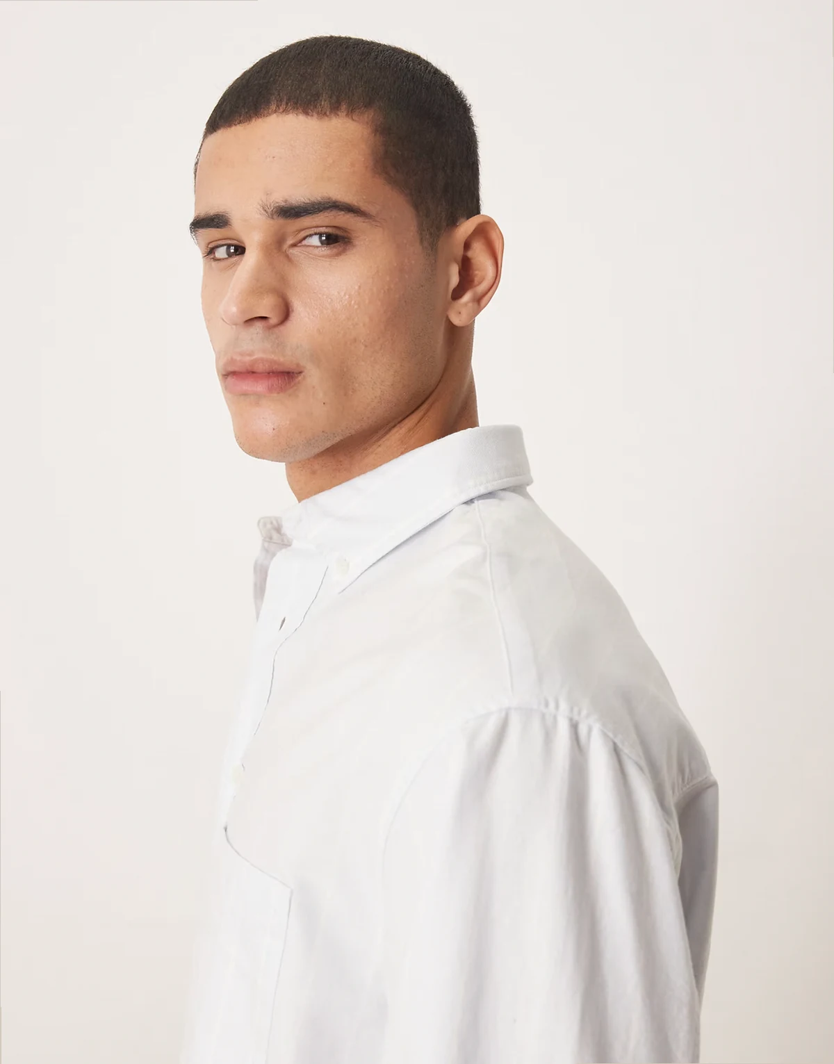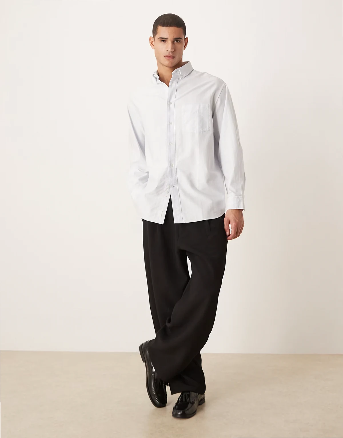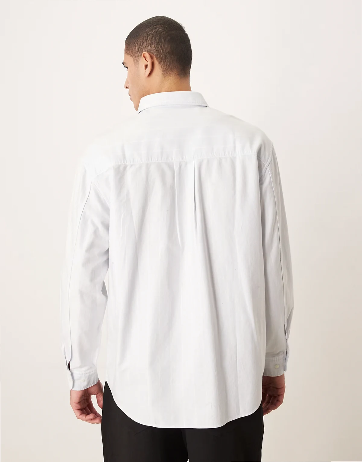 – Gestreiftes, langärmliges Hemd aus reiner Baumwolle in Blau und Weiß