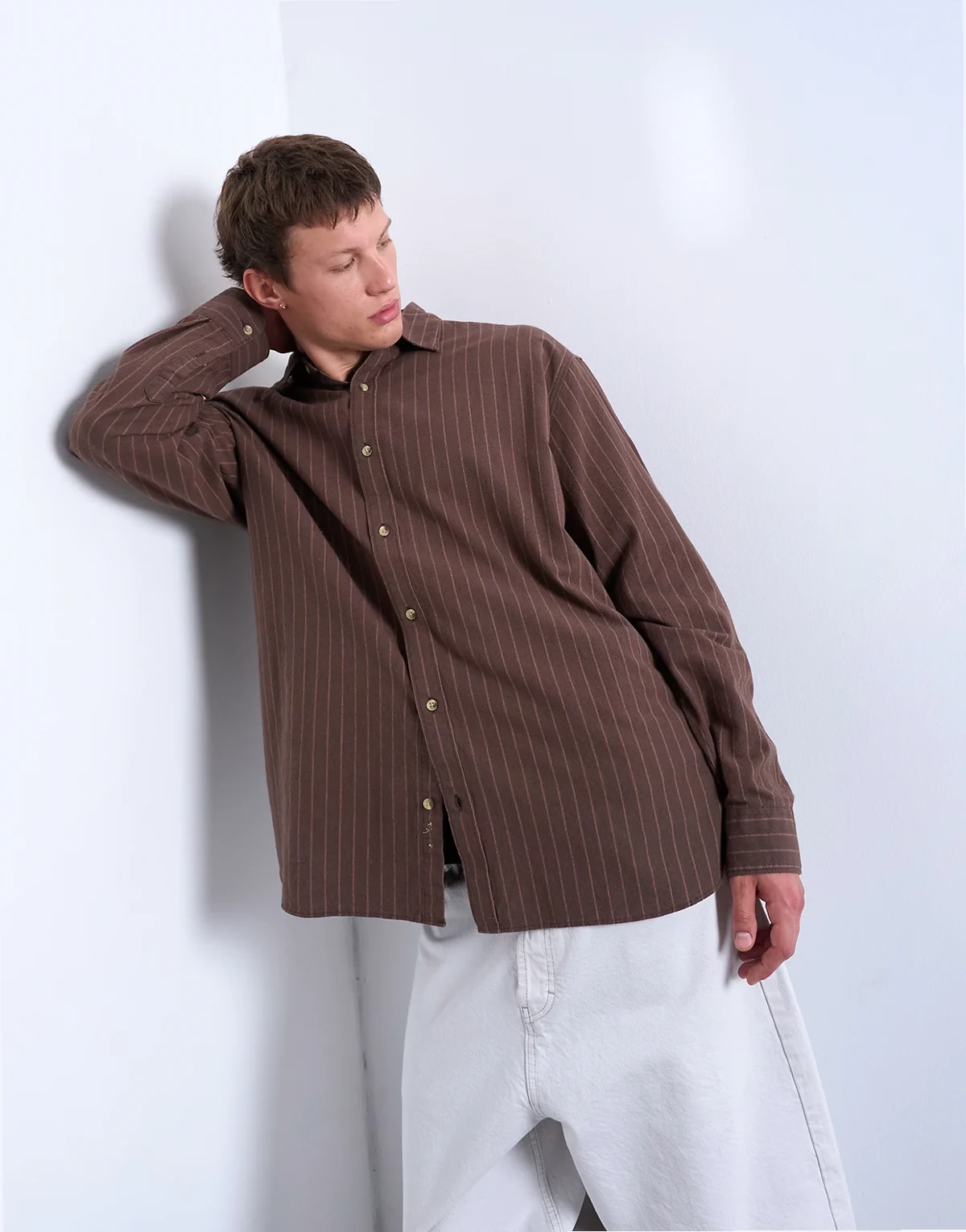 Dieses Hemd ist aus einem gewebten Stoff mit einem gewaschenen, gestreiften Design gefertigt. Es verfügt über einen breiten Kragen, eine Knopfleiste sowie lange Ärmel mit geknöpften Manschetten und ist in Oversize-Passform geschnitten.