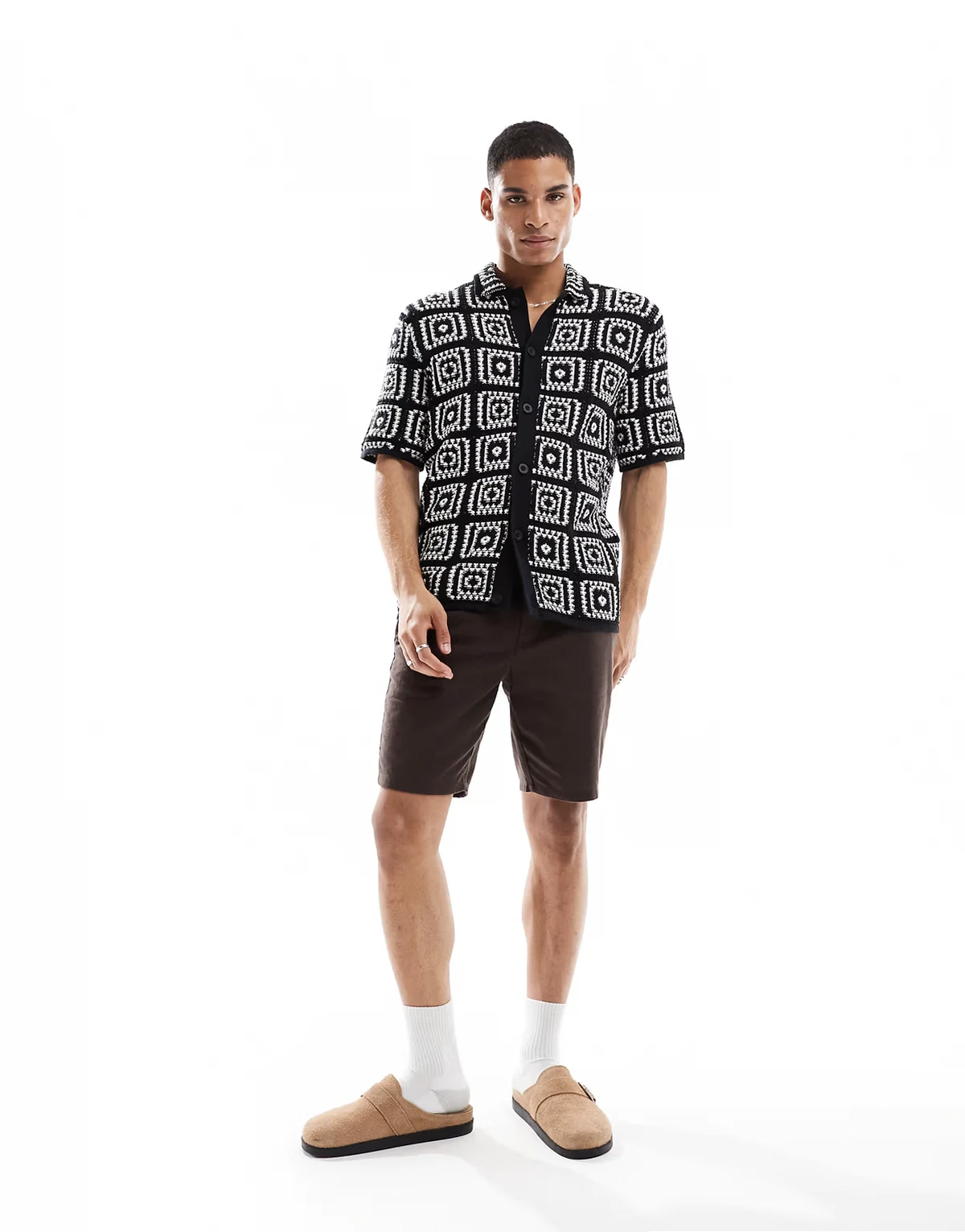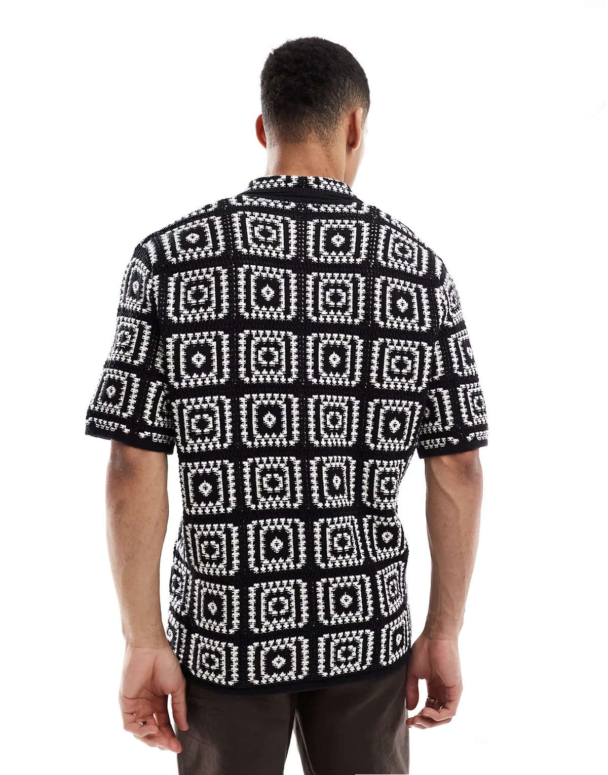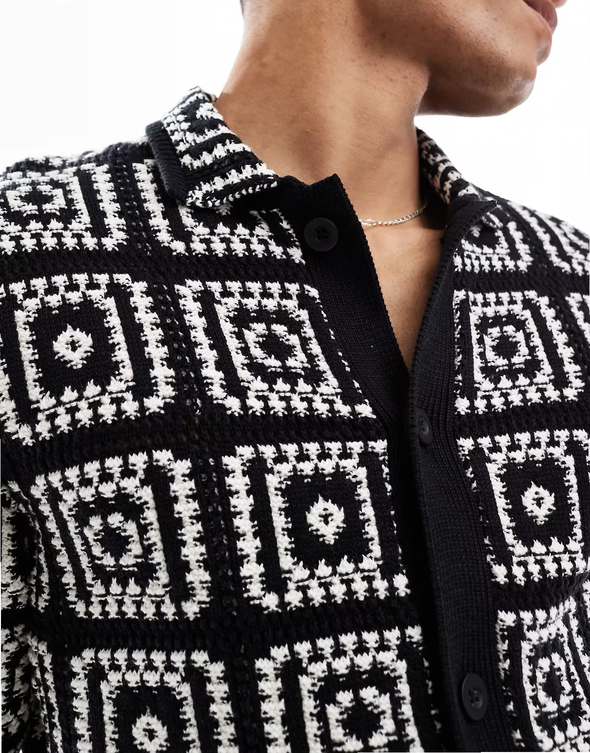 Häkelstoff: gestrickter Stoff in gemusterter, handgefertigter Optik mit Lochstruktur