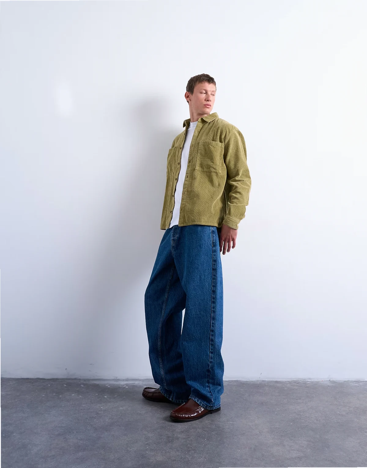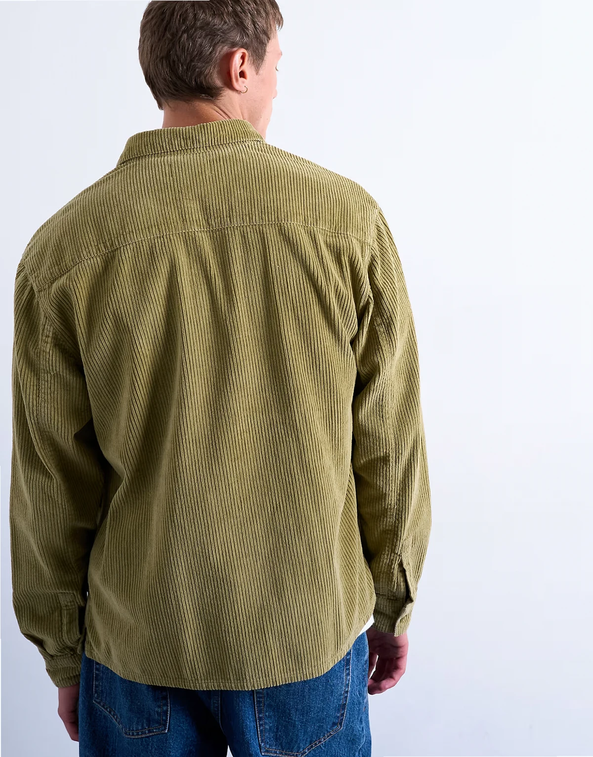 – Regular Fit Cordhemd in verwaschenem Grün