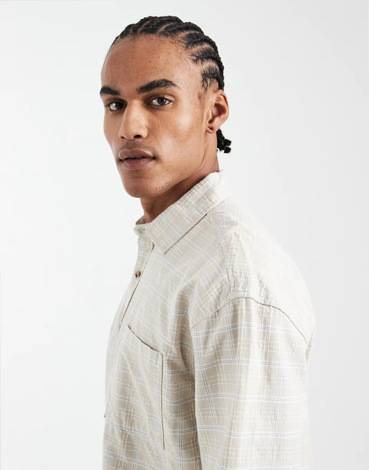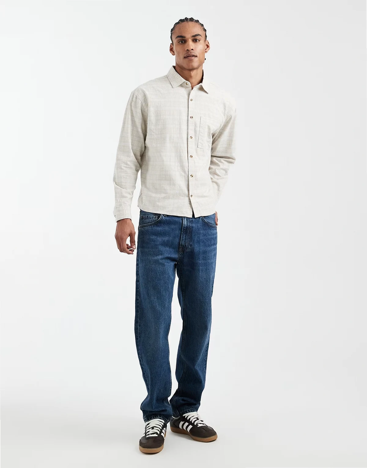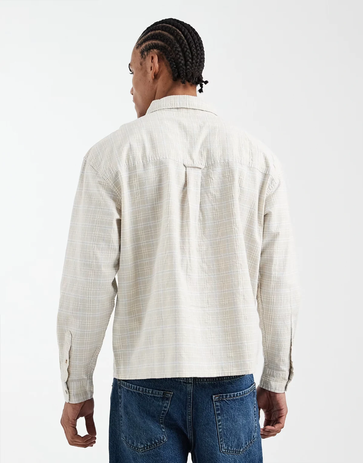 – Remi – Langärmliges Hemd in Steinbeige mit strukturiertem Karomuster