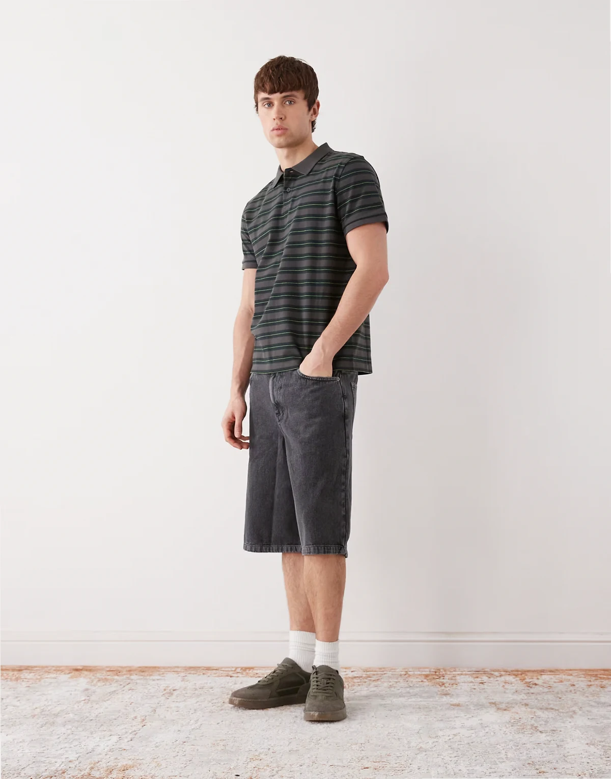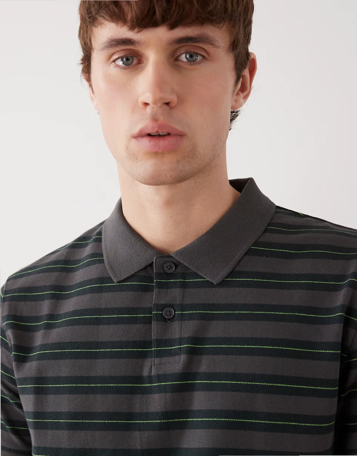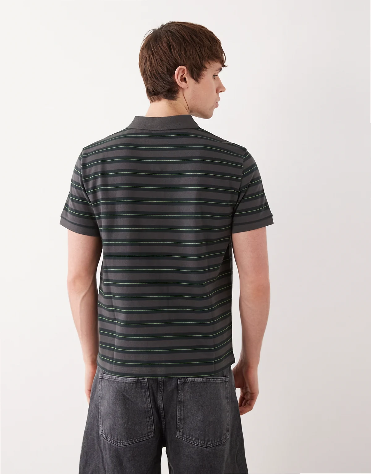– Gestreiftes Polo-T-Shirt aus Pikee in Grau und Grün