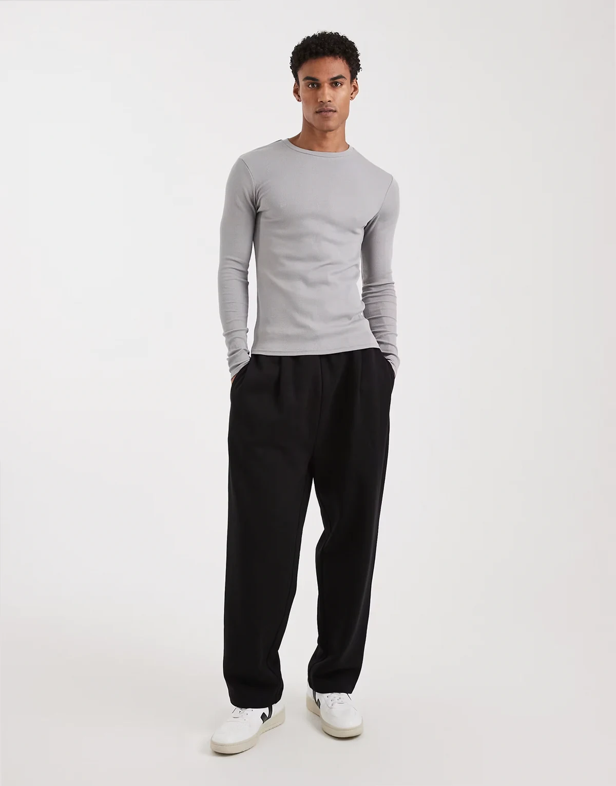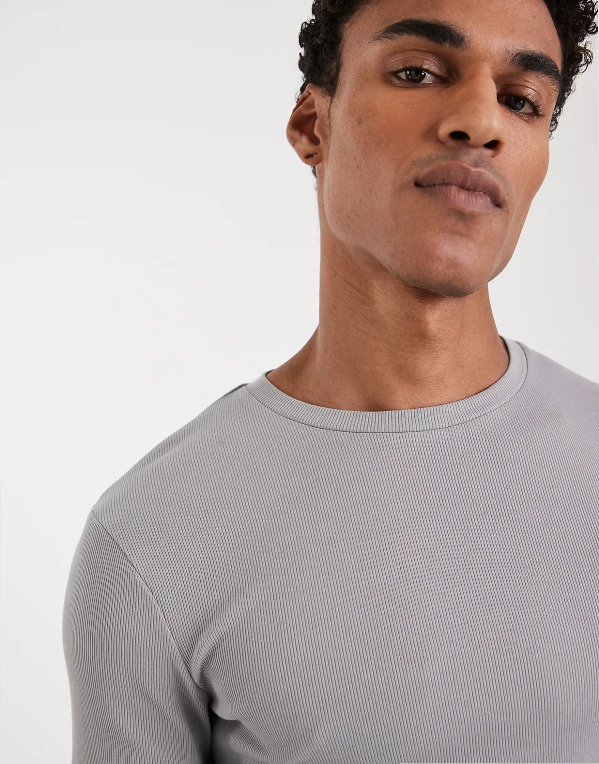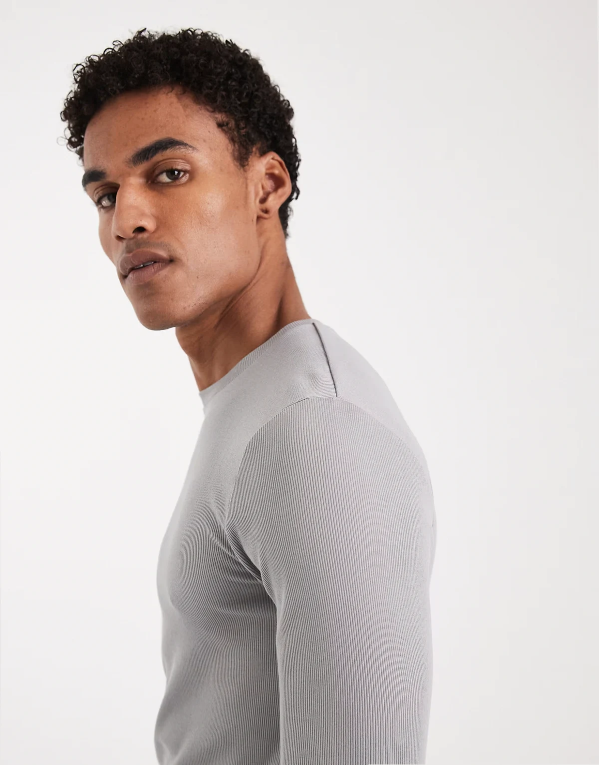 – Langärmliges, geripptes Basic-Muskelshirt in Hellgrau