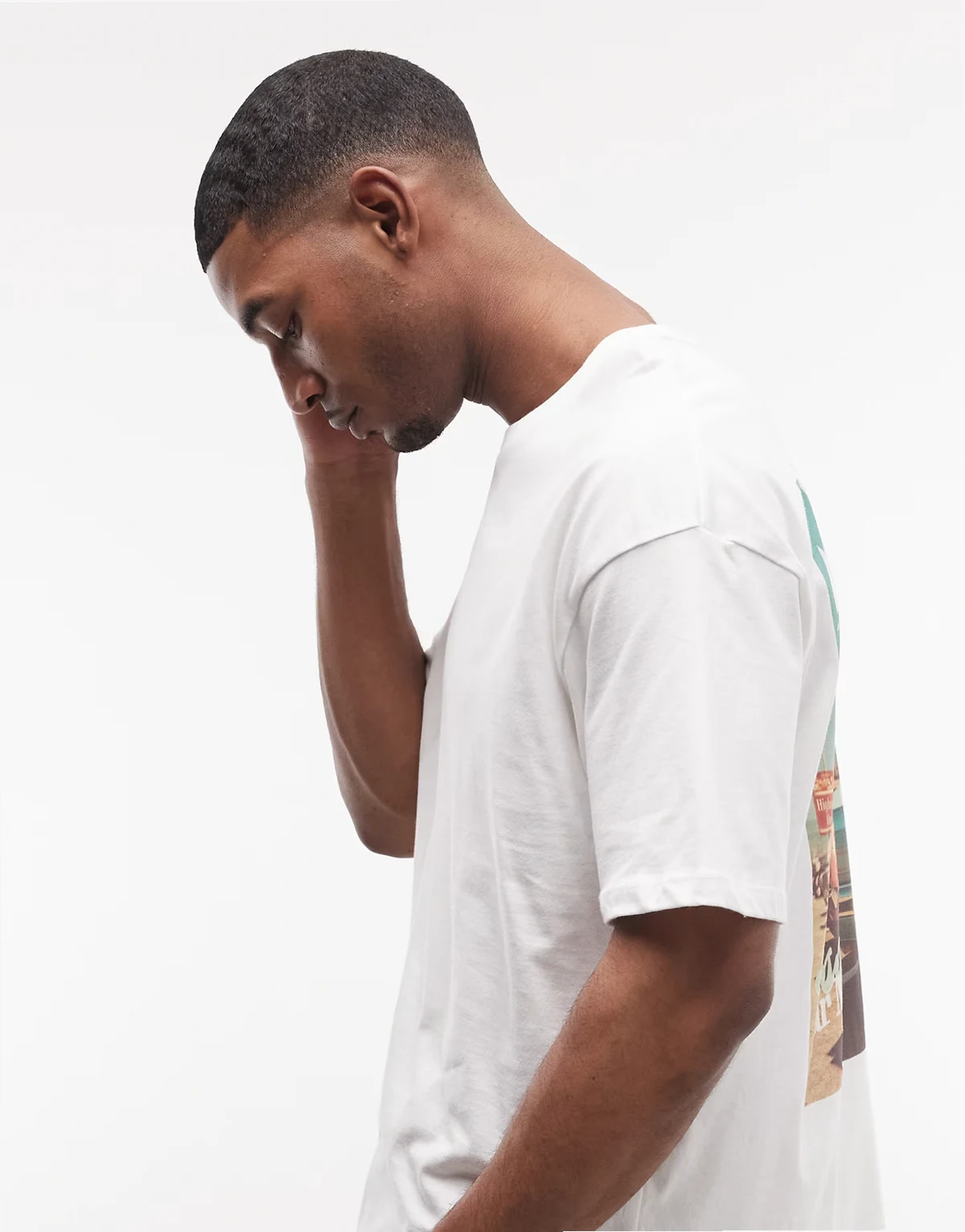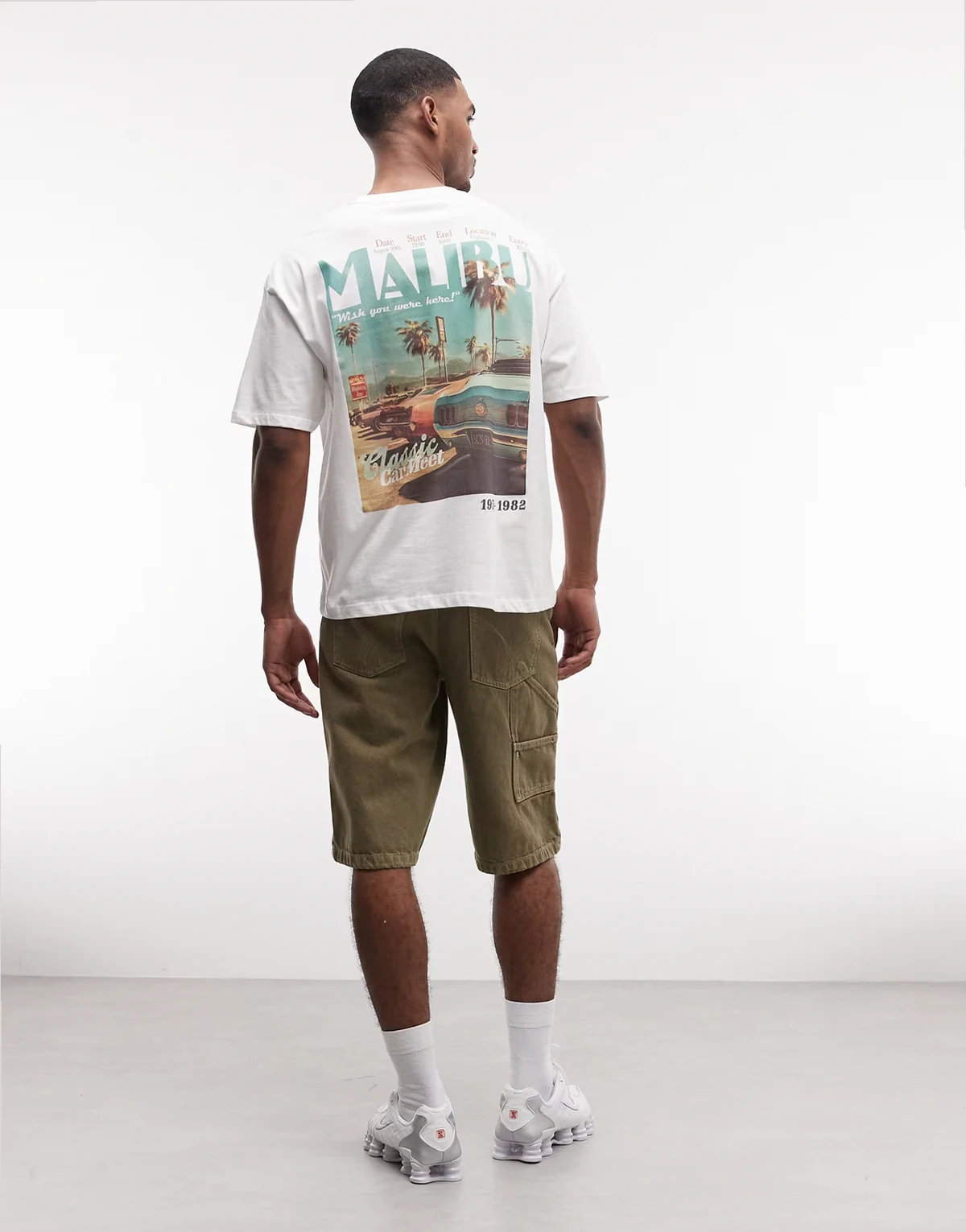 – Oversize-T-Shirt in Weiß mit Retro-Auto-Grafik