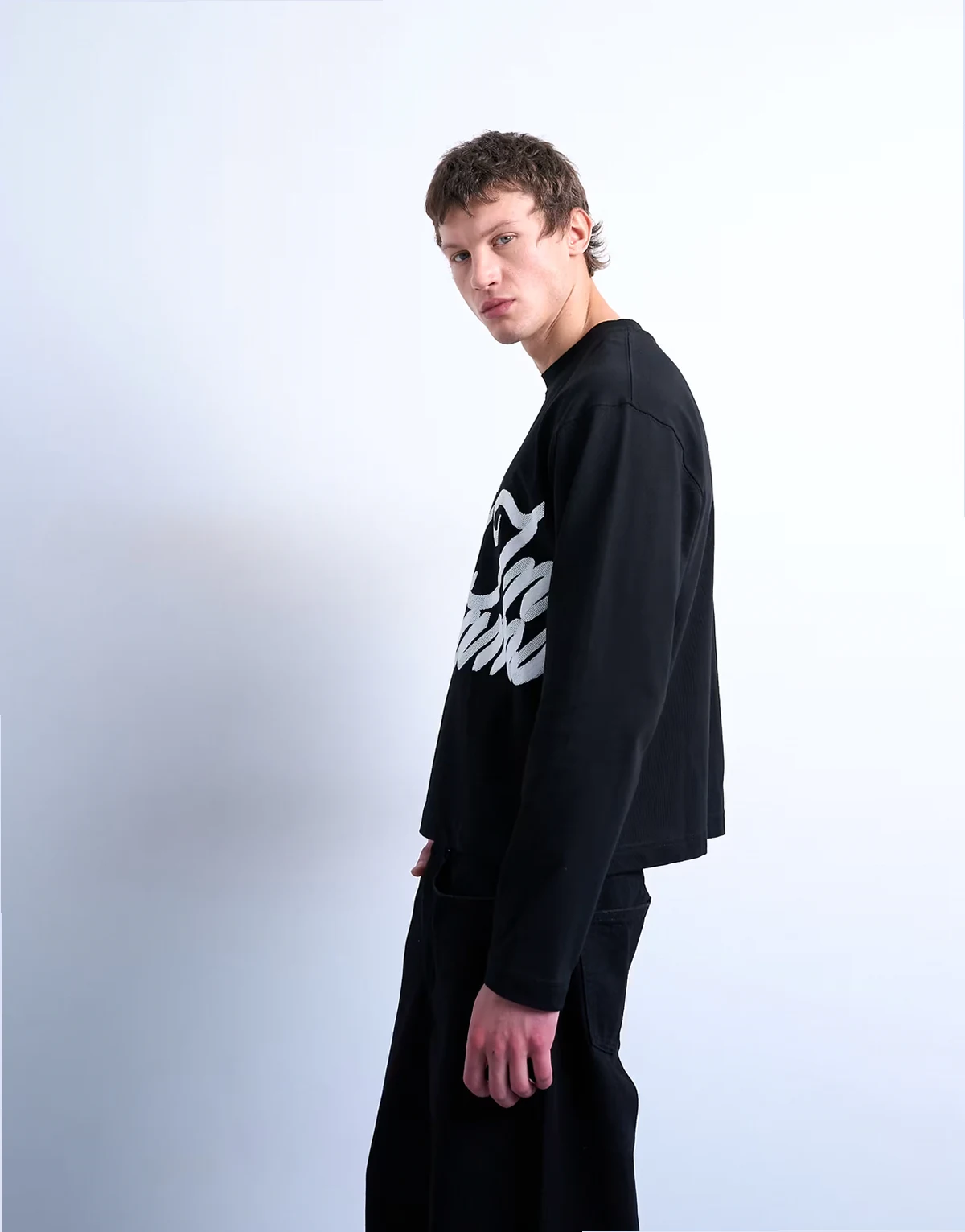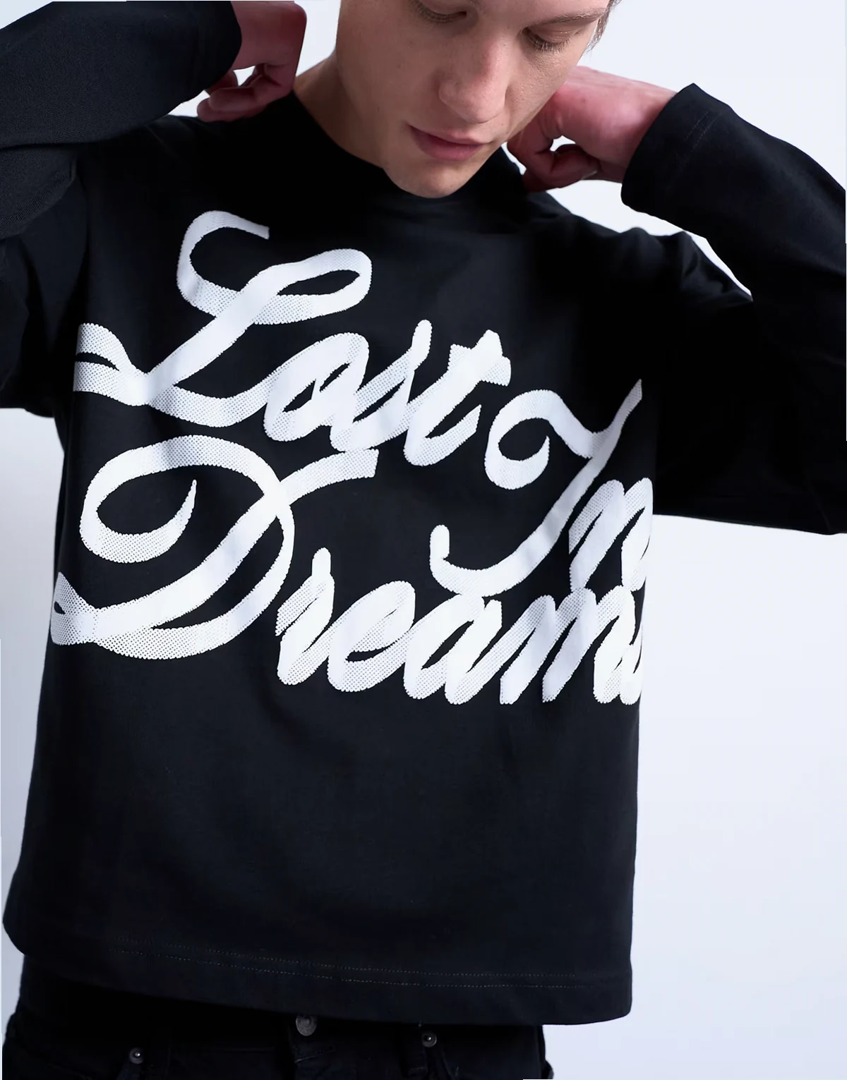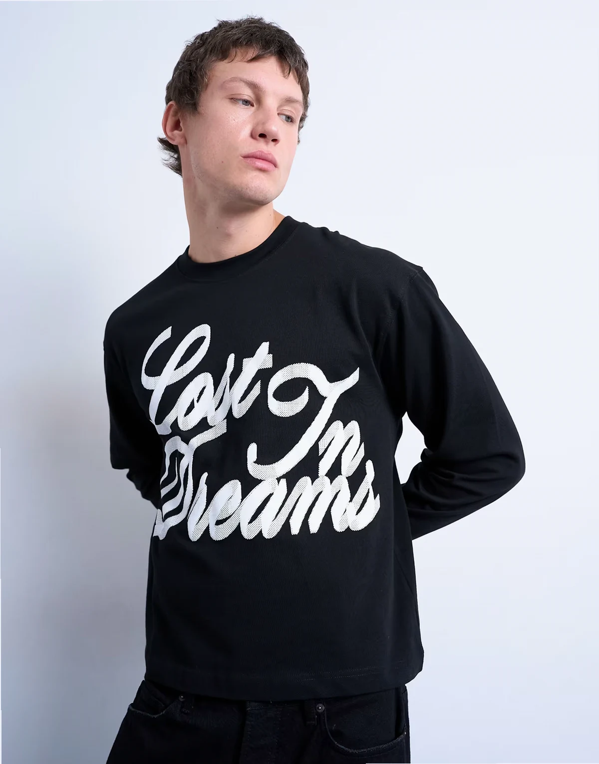 – Langärmliges Oversize-Shirt in Schwarz mit „Lost in Dreams“-Print