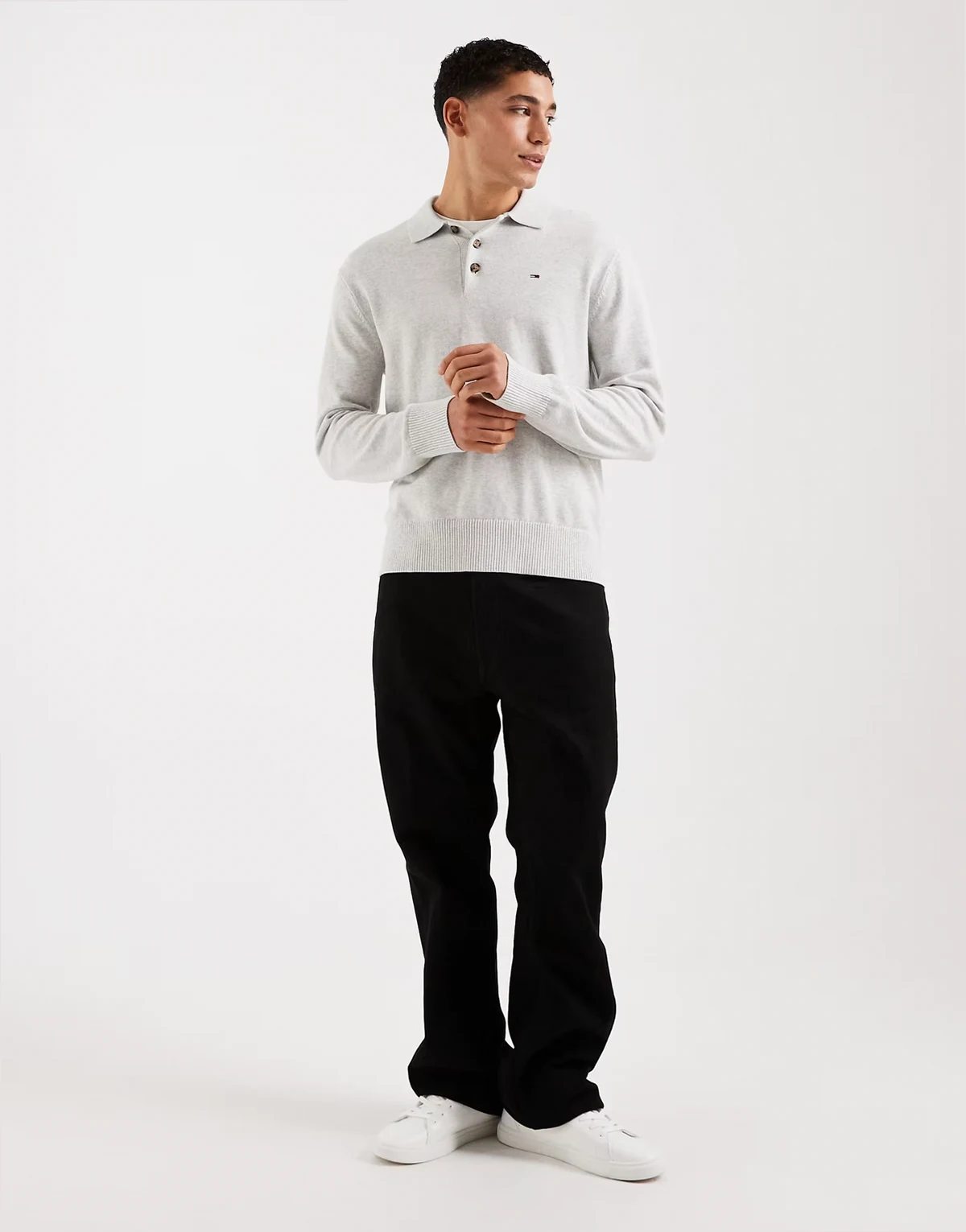 – Essential – Langärmliges Polohemd aus Strick in Grau