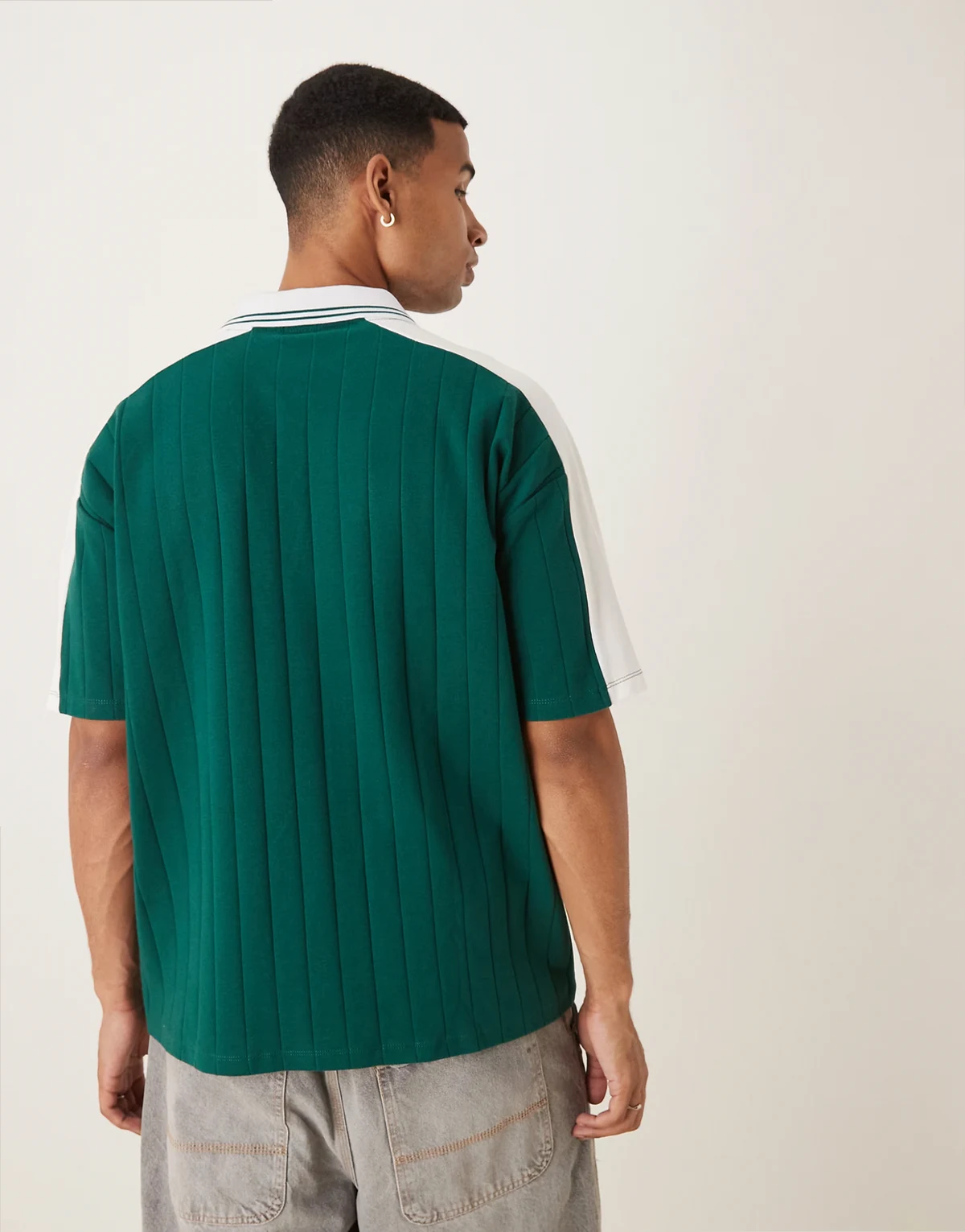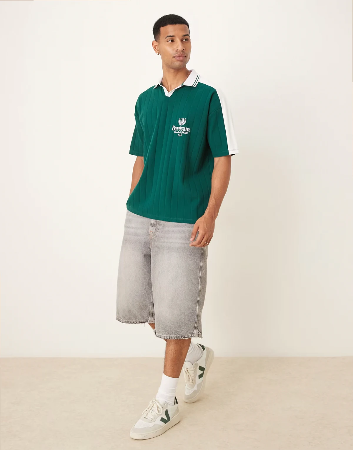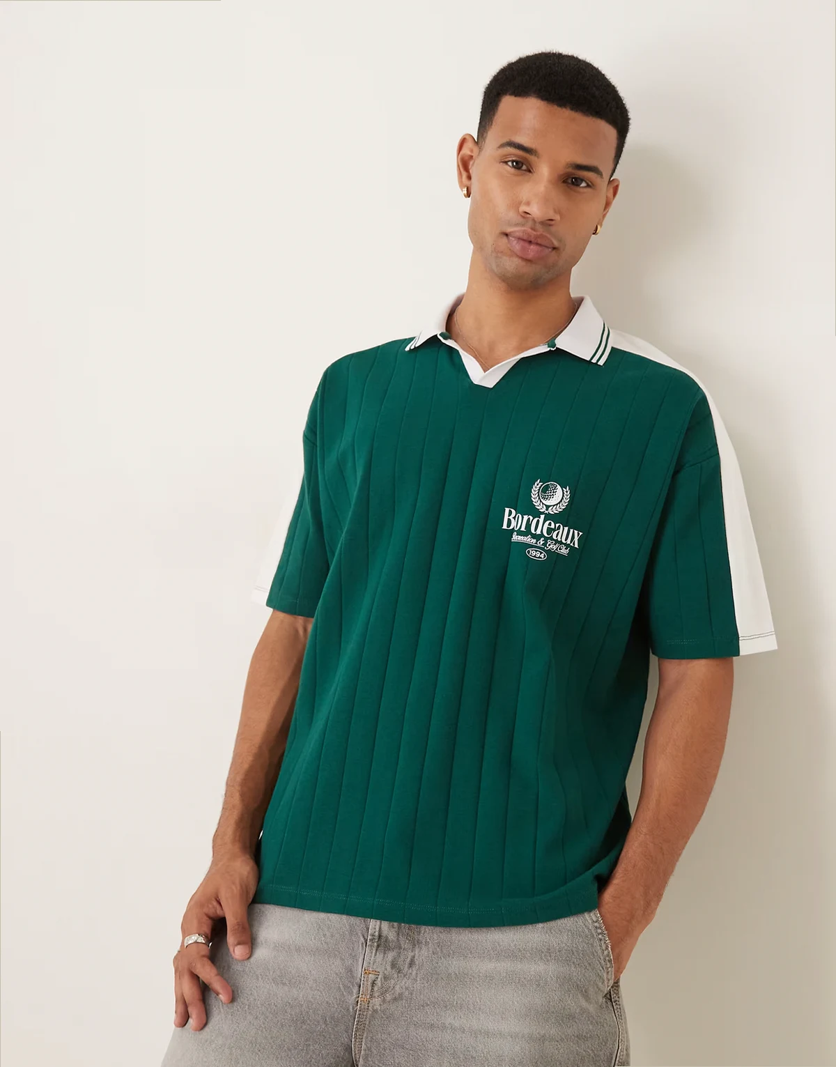 – Oversize-Polohemd in Grün mit Sport-Print auf der Brust
