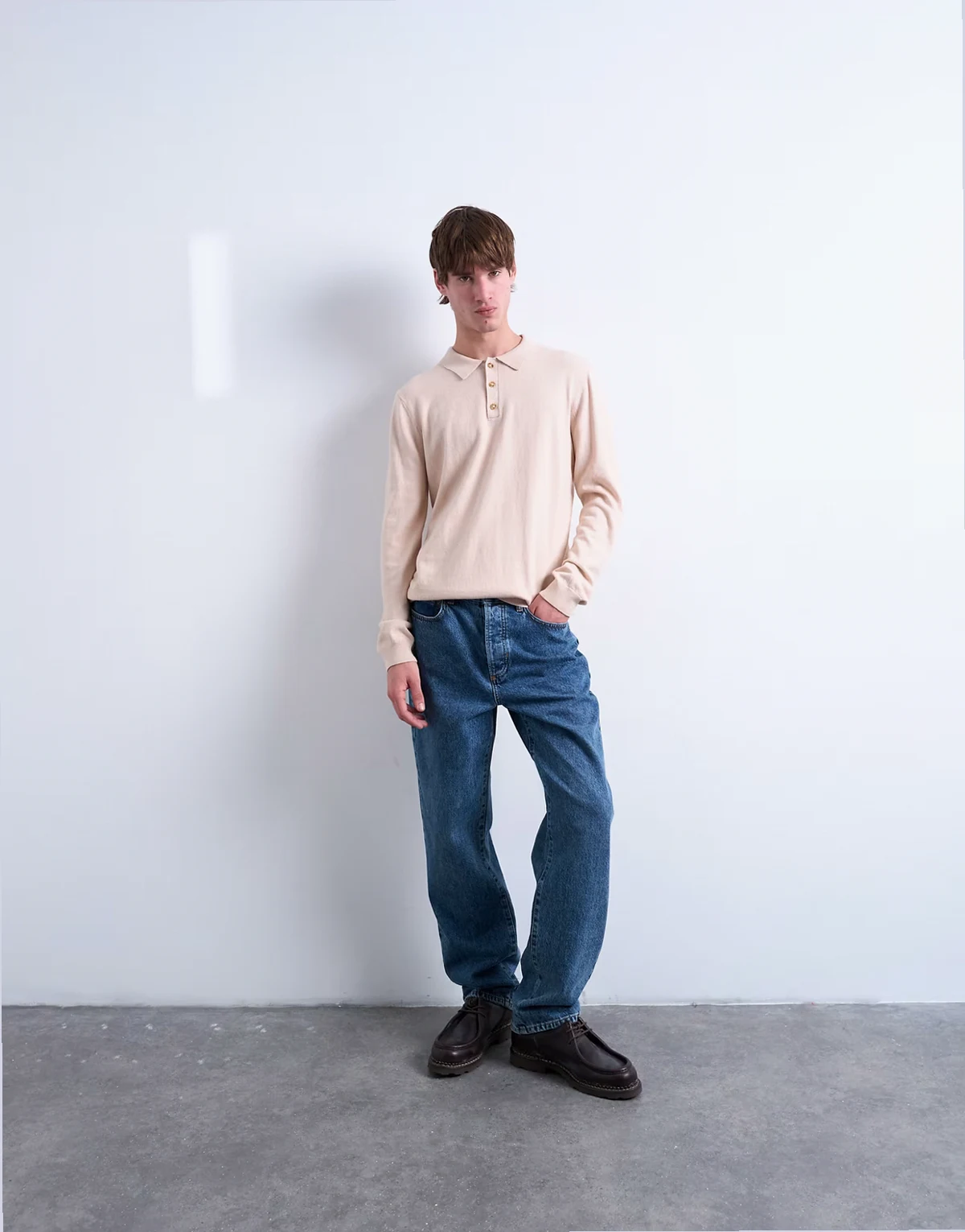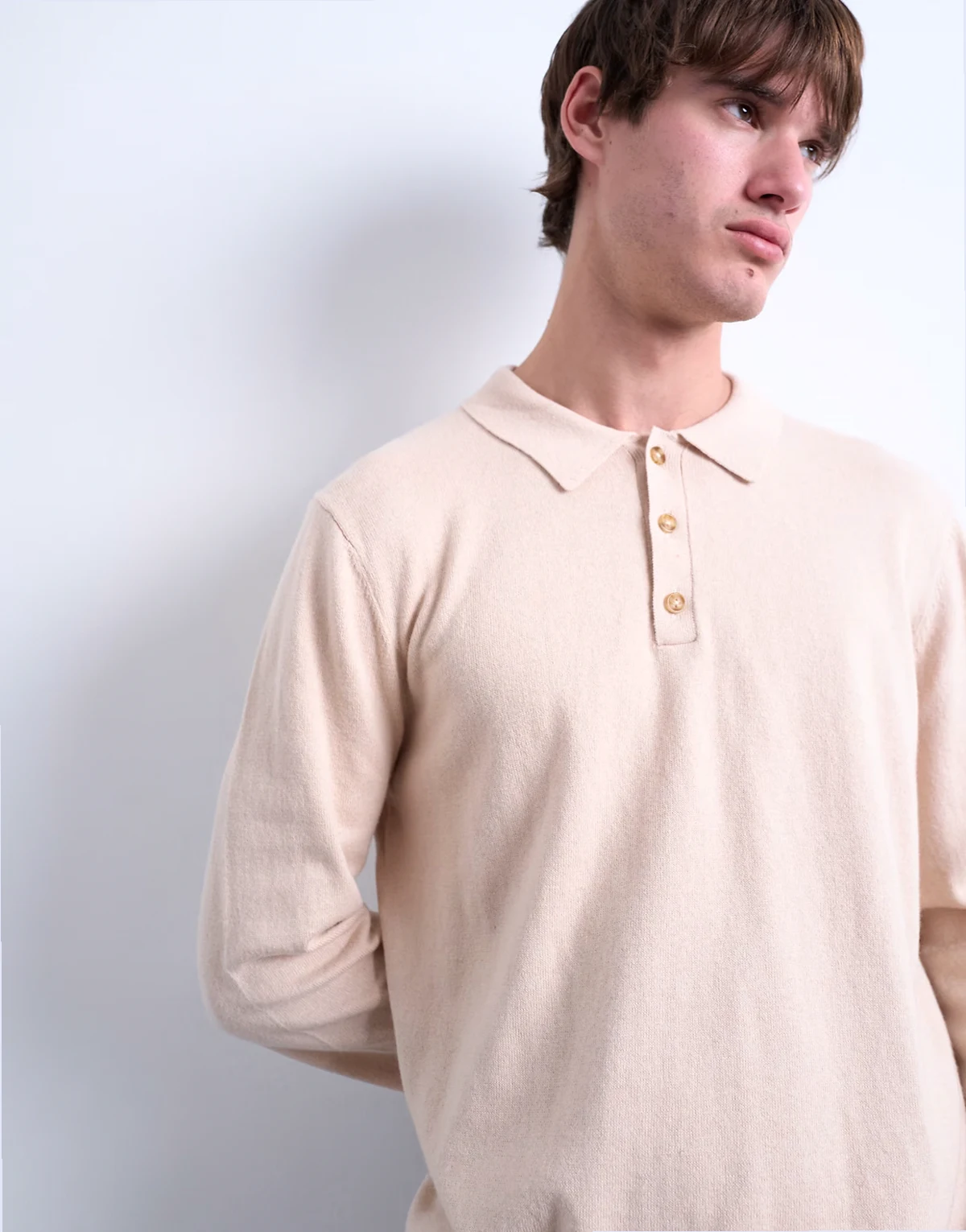 Dieser Pullover aus Feinstrick hat ein vielseitiges, schlichtes Design. Er verfügt über einen Polokragen, eine teilweise Knopfleiste, lange Ärmel und gerippte Abschlüsse. Das Modell ist im Regular Fit geschnitten.