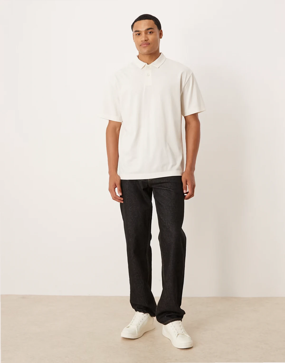 – Relaxed-Fit-Pikee-Polohemd in Creme