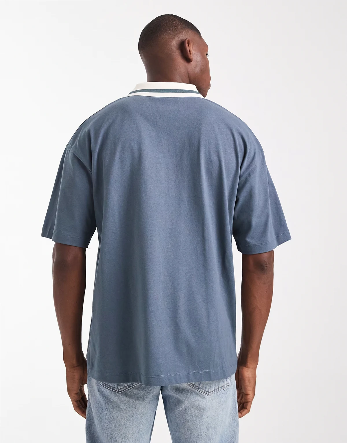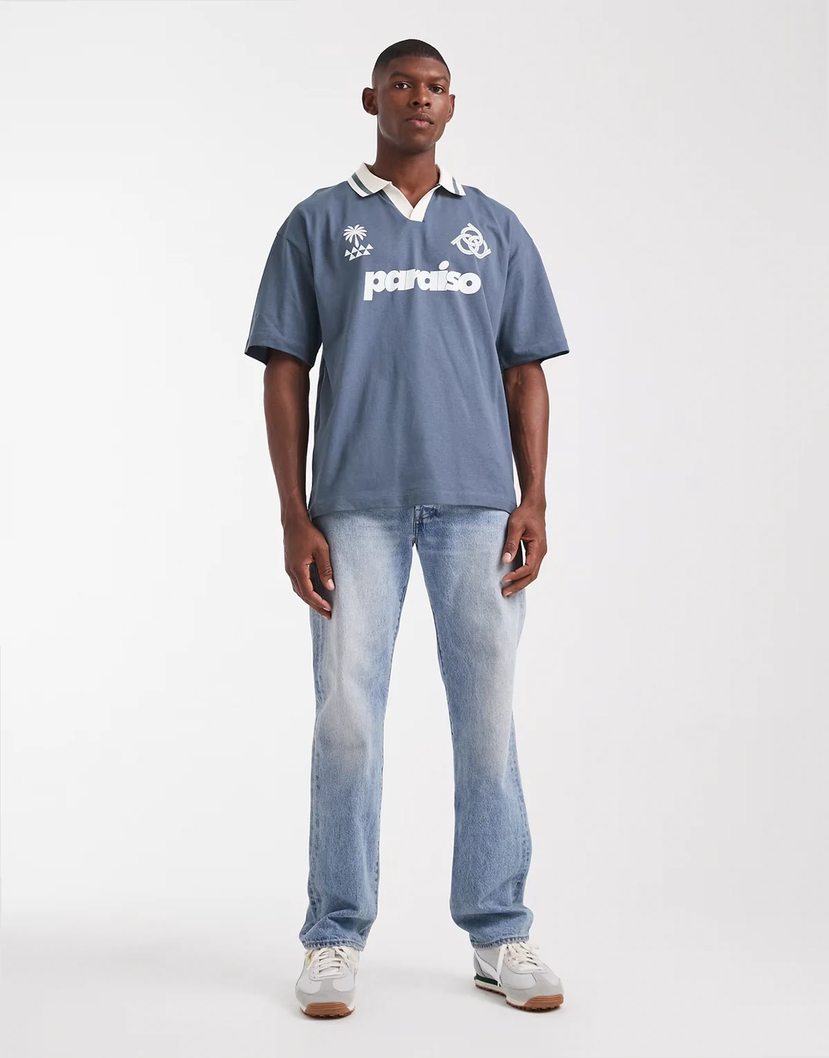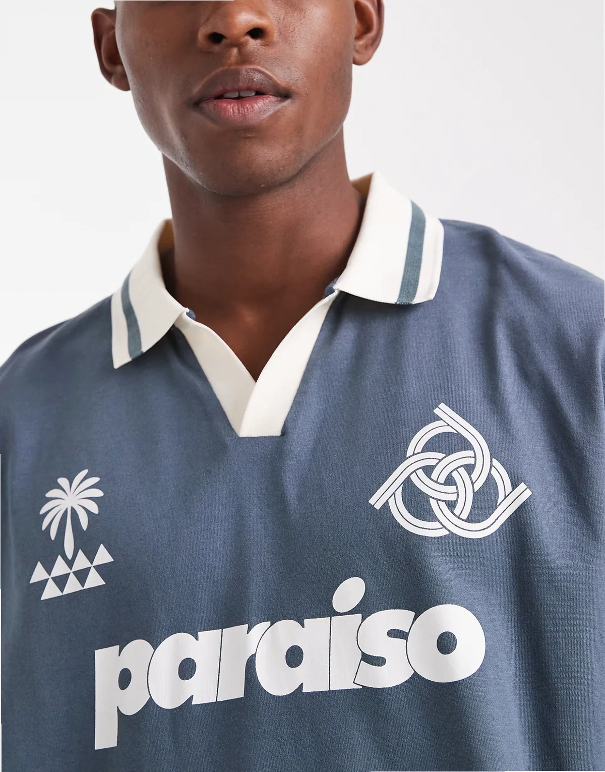 – Oversize-Polohemd in Grau mit Fußball-Grafik