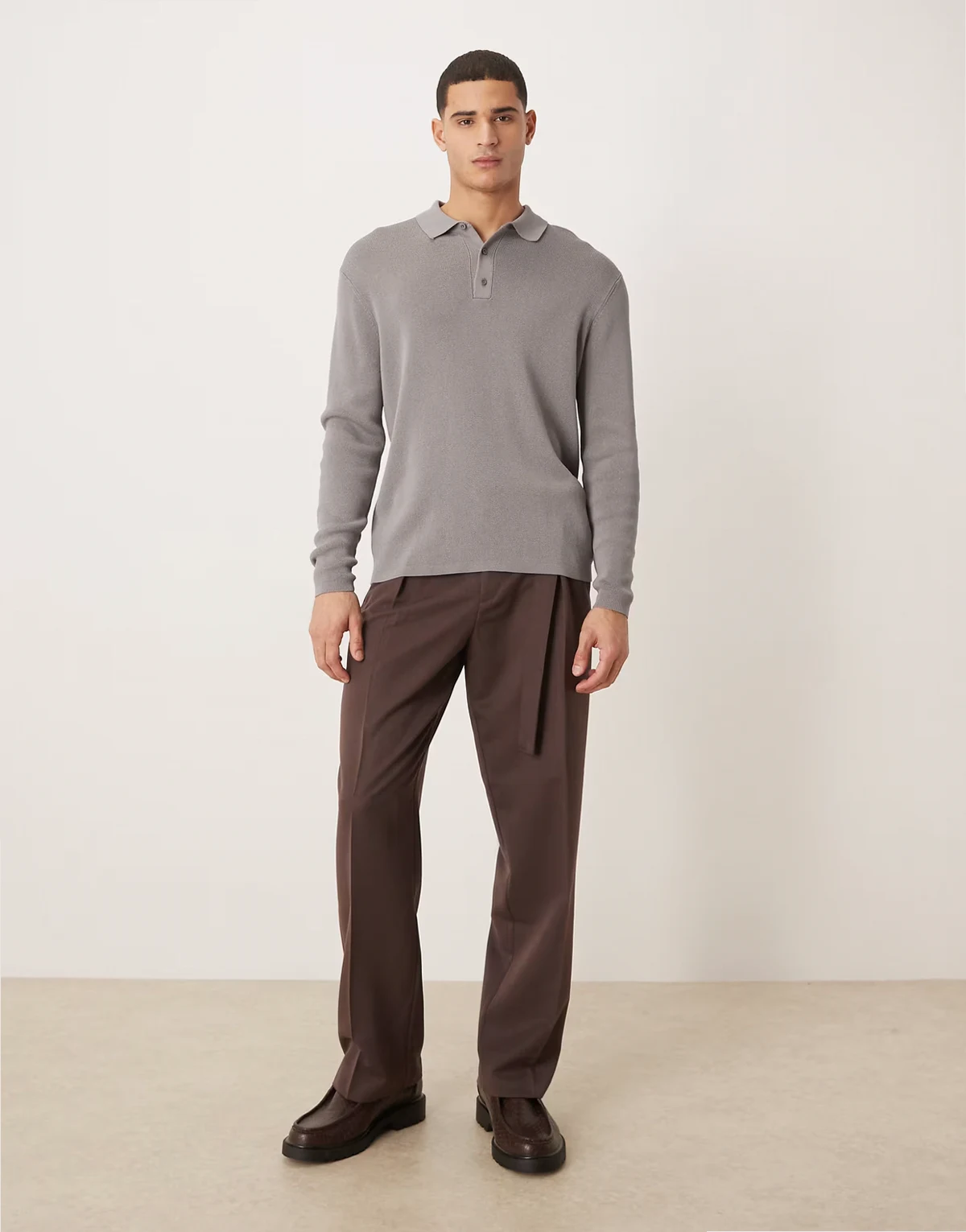 – Relaxed-Fit-Polohemd aus Strick in Grau