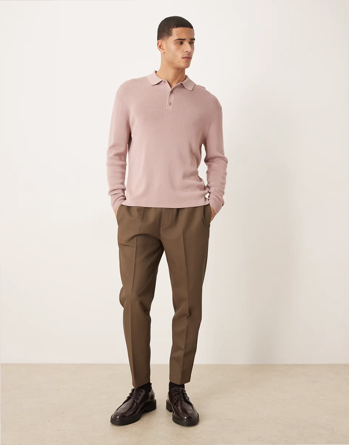 – Relaxed-Fit-Polohemd aus Strick in Staubrosa