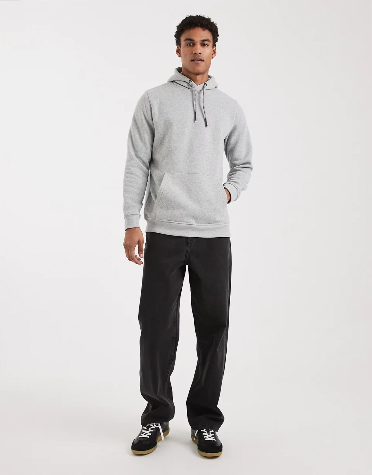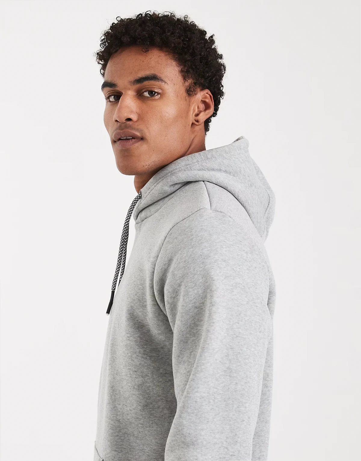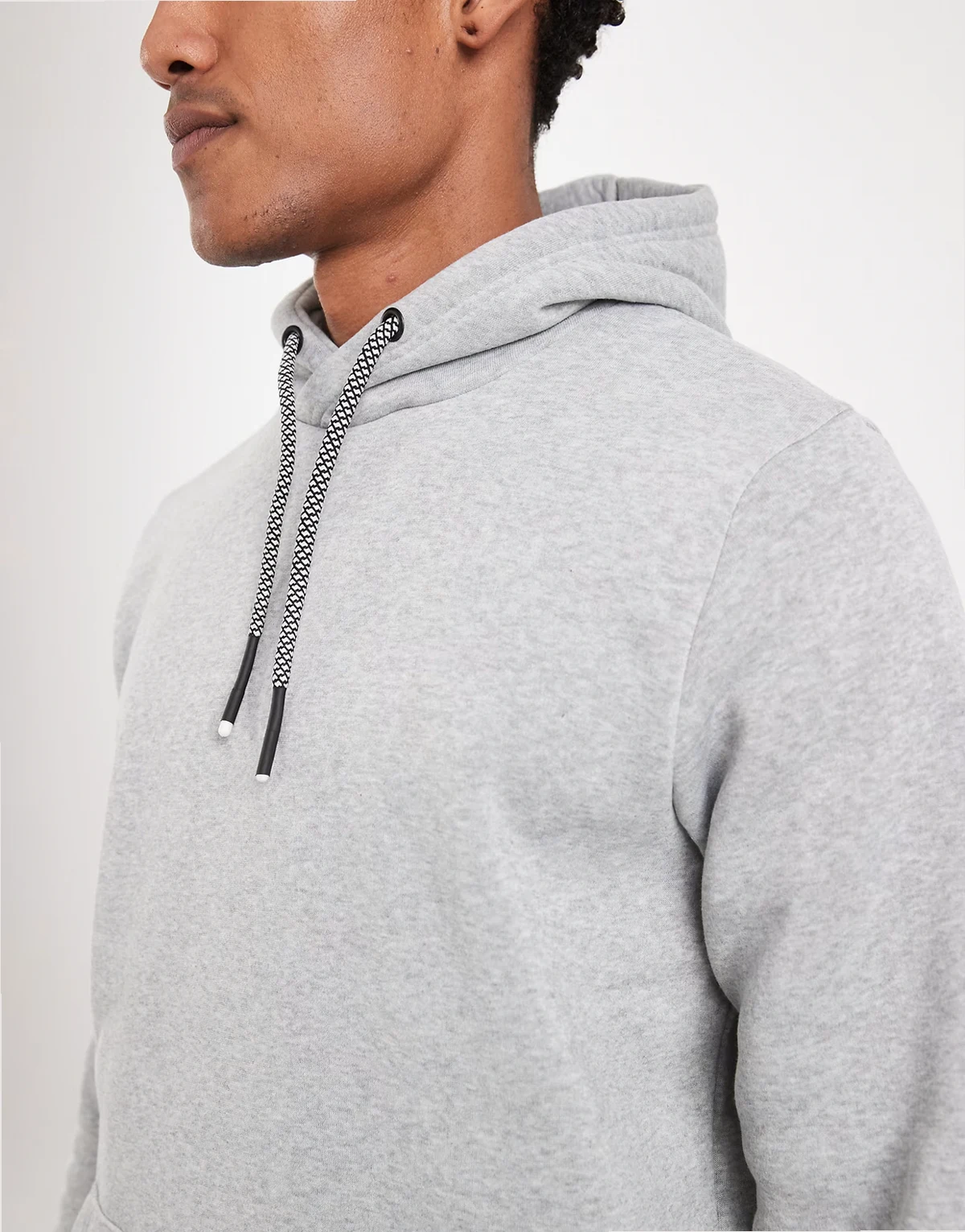 – Kapuzenpullover in meliertem Grau mit kontrastierendem Kordelzug