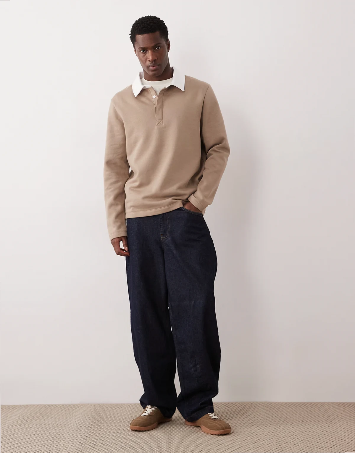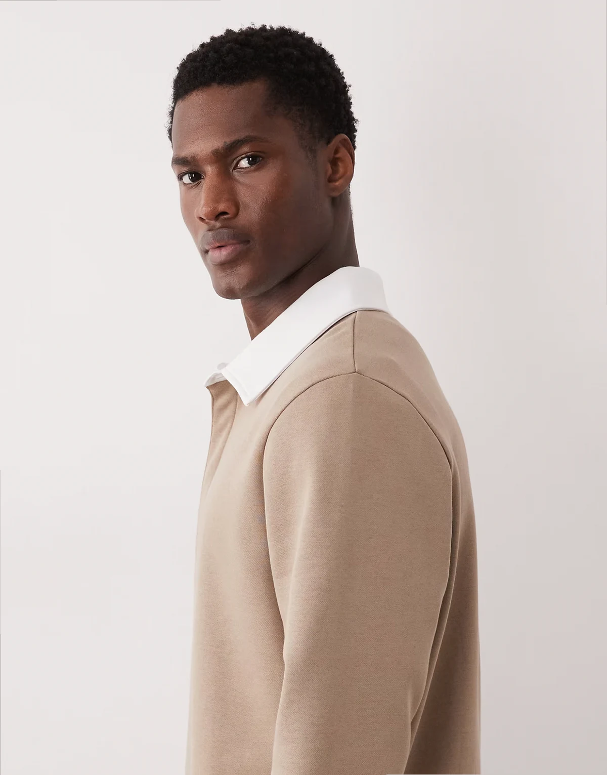 – Polo-Sweatshirt in Beige mit kontrastierendem Kragen