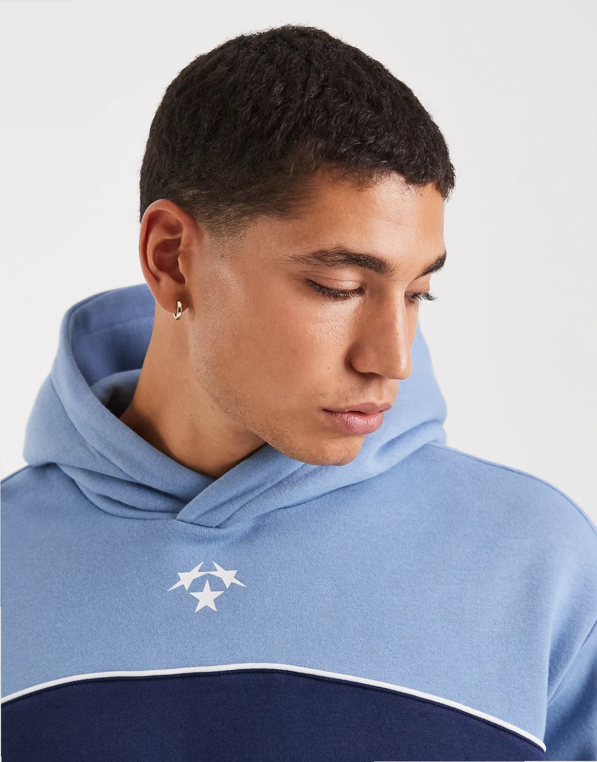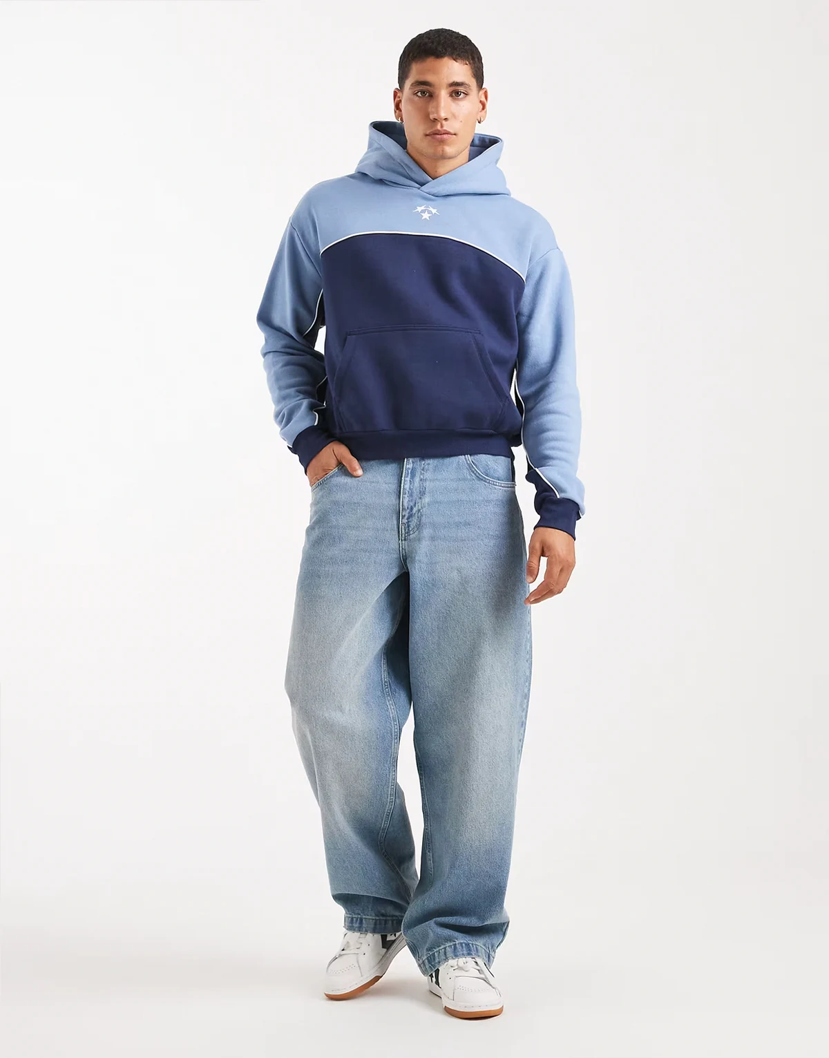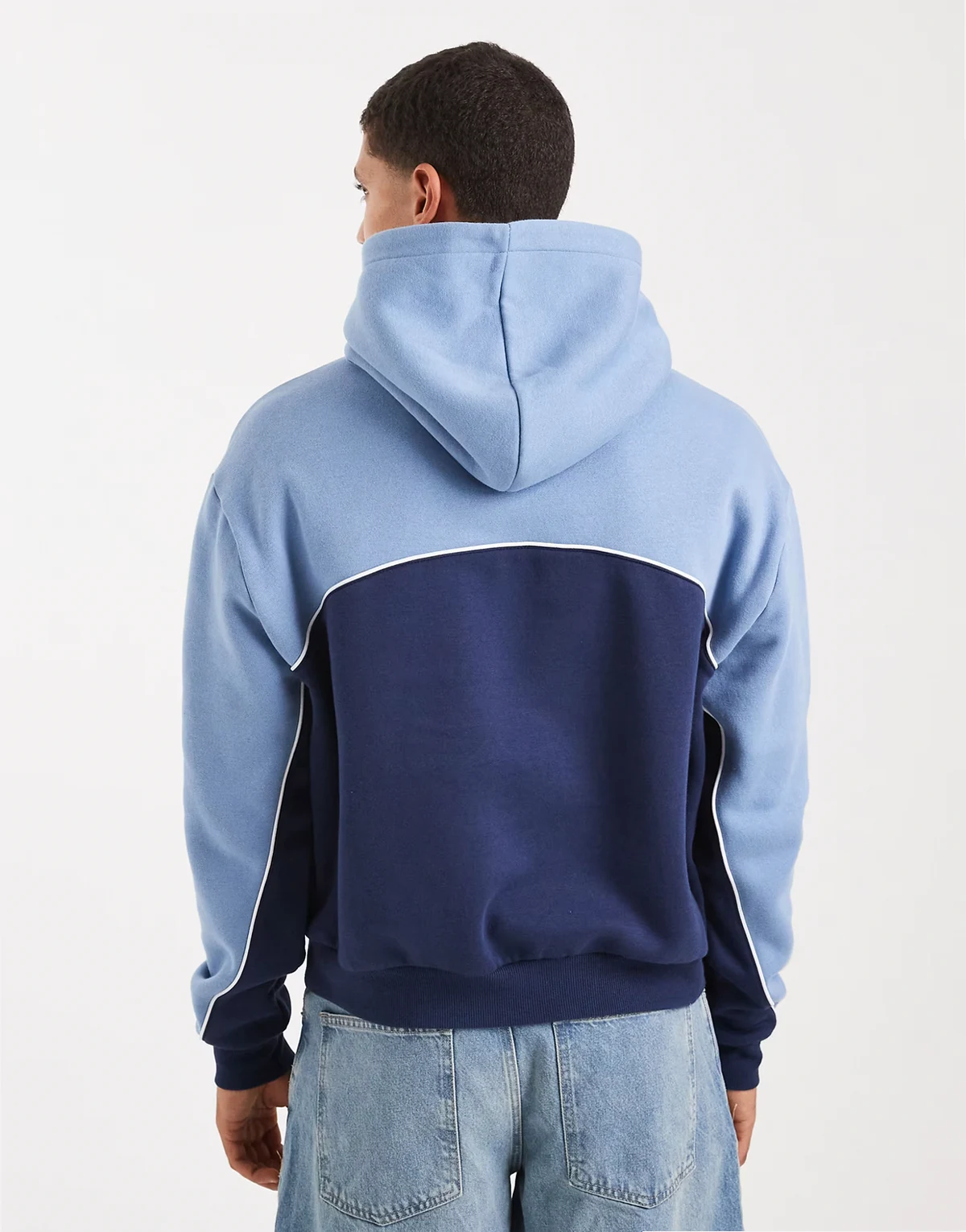 – Cropped-Fit-Kapuzenpullover in Blau mit Grafikpanel