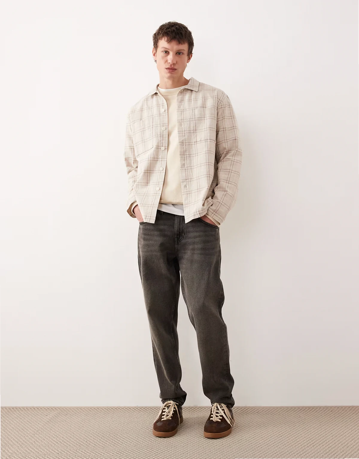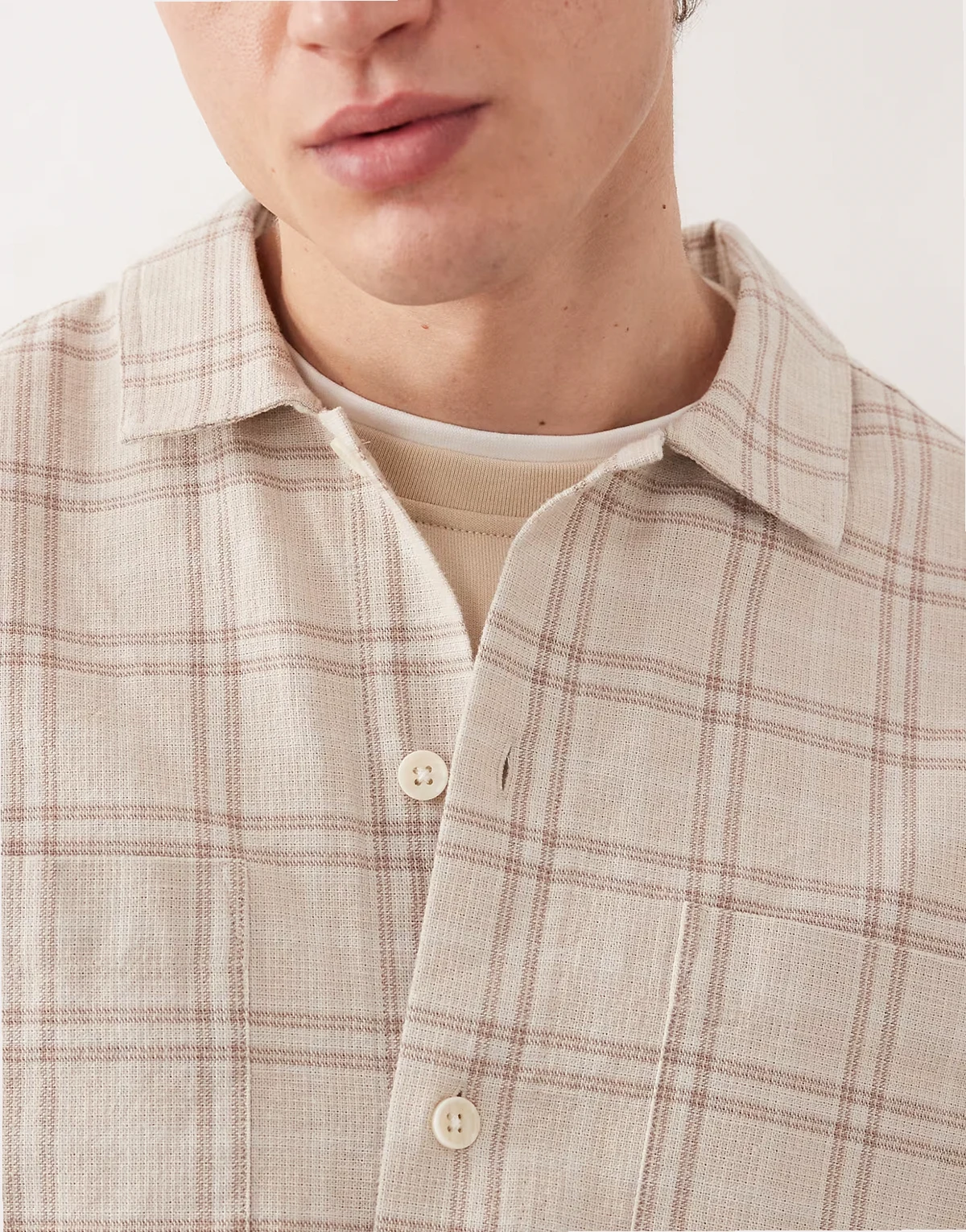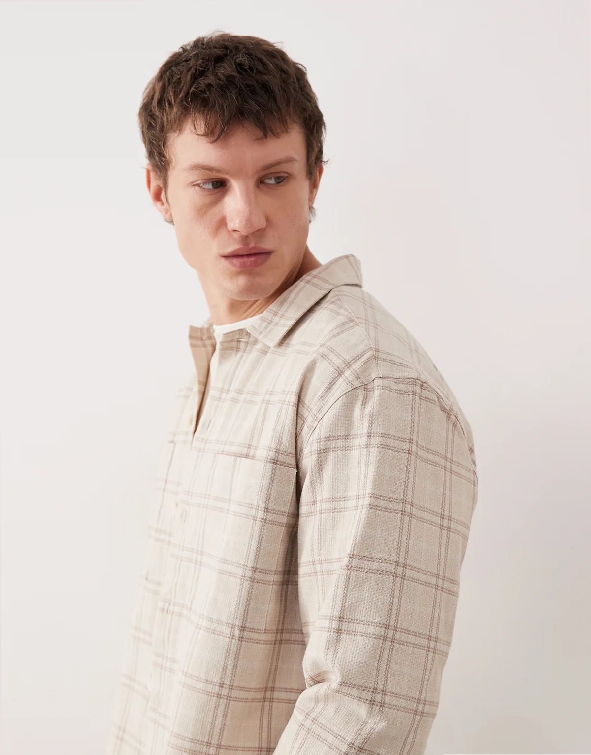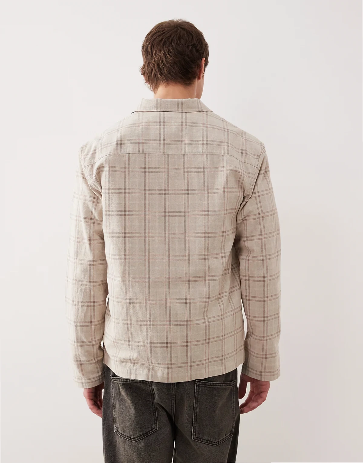 – Strukturierte Hemdjacke in Beige kariert